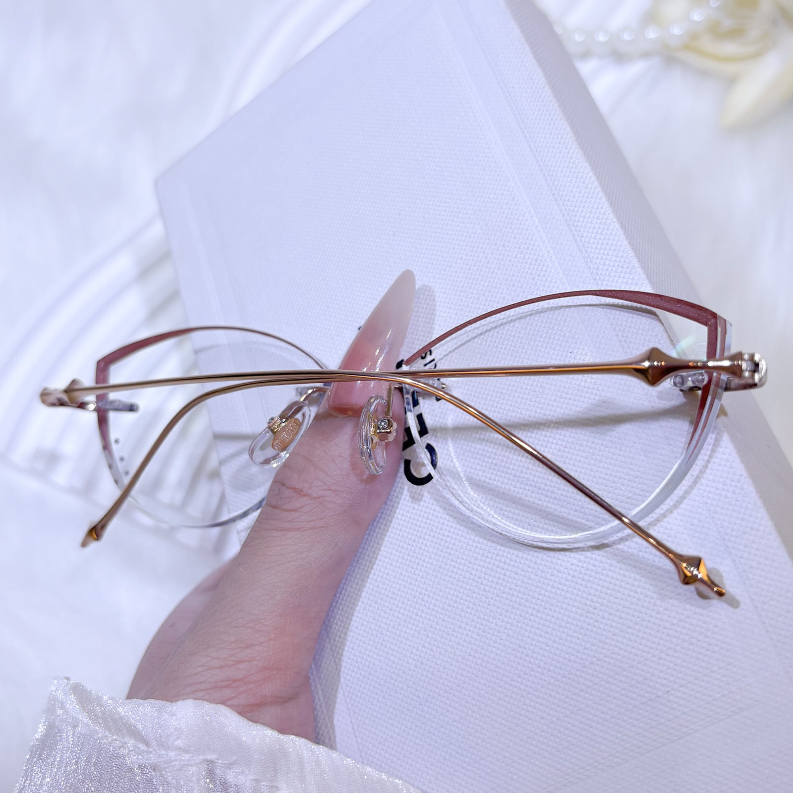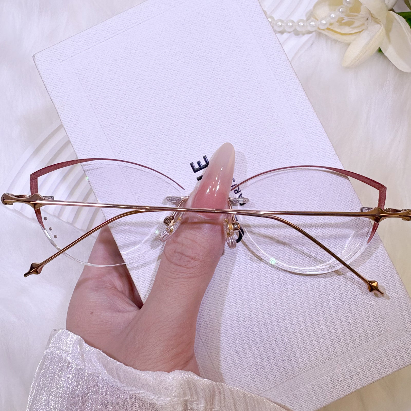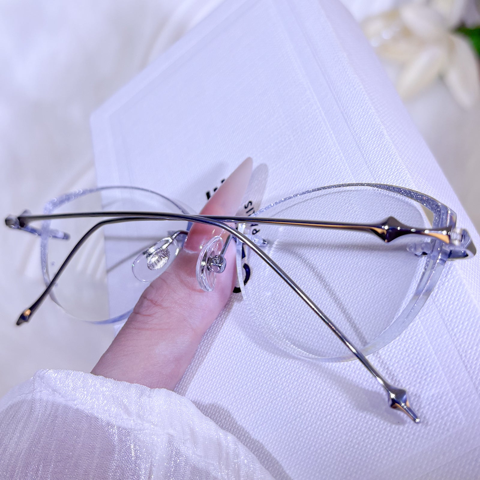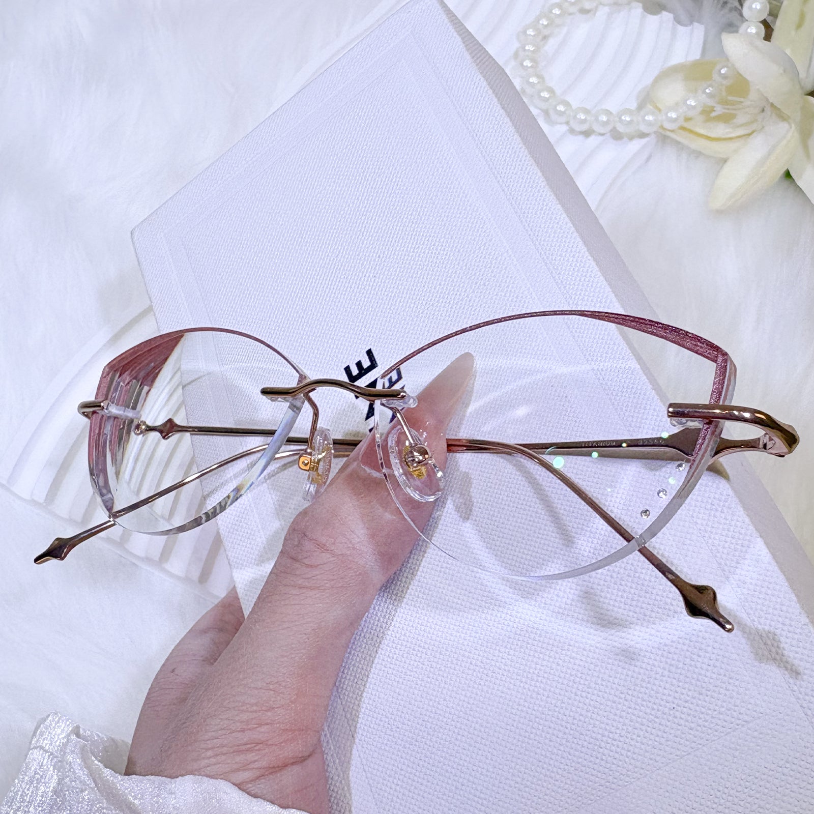 | Exclusive Design | These petite rimless cat-eye glasses are the epitome of fashion—delicate, elegant, and effortlessly stylish. The uniquely crafted titanium temples add a sophisticated flair, making them a chic accessory for any refined wardrobe.
