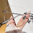 أوليفيا هي نظارات عريضة بدون إطار تتميز بأذرع ذهبية أنيقة مصنوعة من التيتانيوم عالي الجودة. يوفر التصميم البسيط بدون إطار مظهرًا خفيف الوزن وأنيقًا، بينما تضيف اللمسات الذهبية الفاخرة لمسة من الرقي، مما يجعله مثاليًا لأي مناسبة.