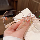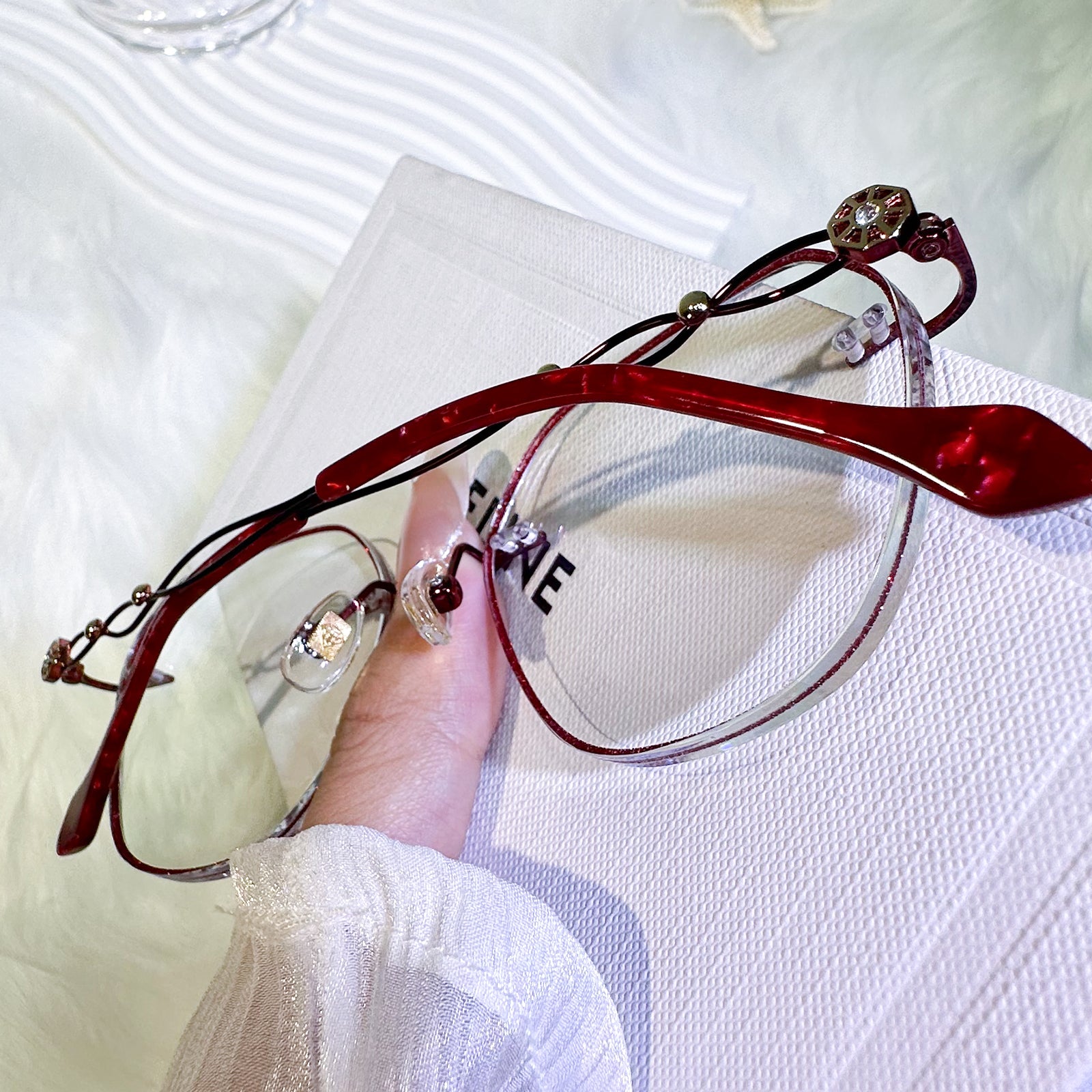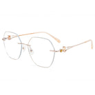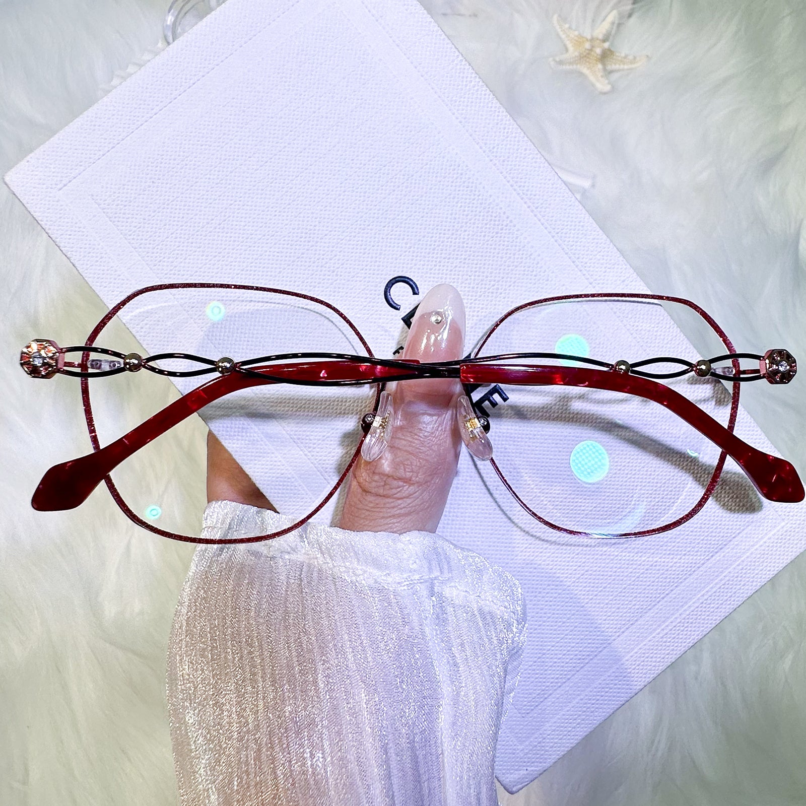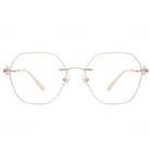 اريا هي نظارة هندسية واسعة باللون الذهبي مع هيكل معدني عالي الجودة. هذه الإطارات المزينة بزخارف وزخارف ماسية متلألئة ترفع من أناقتك وتأسرك بجاذبيتها المتألقة. قم بالإدلاء ببيان مع نظارات Aria.