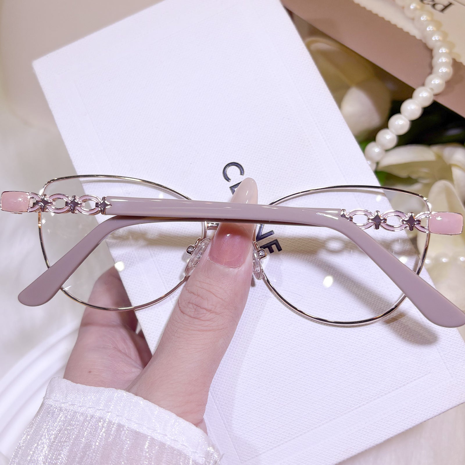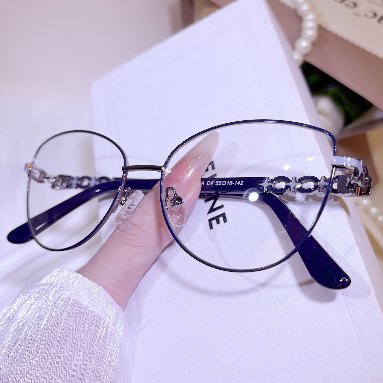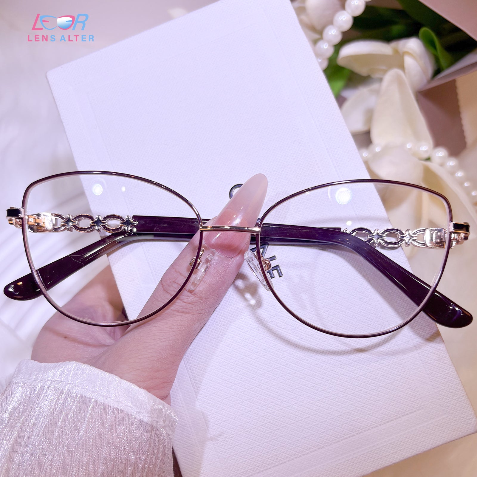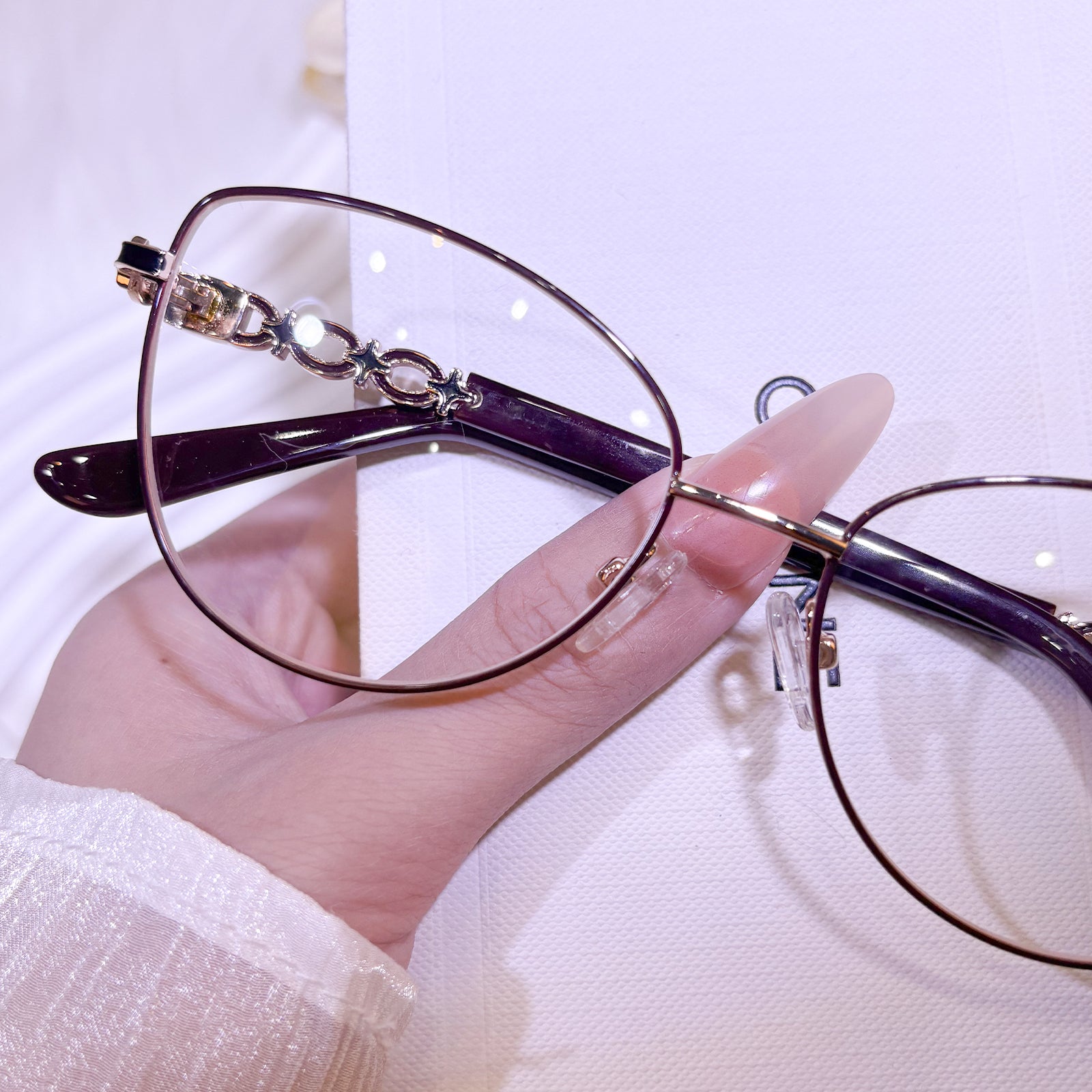For the woman whose style is an artful composition. This metal cat-eye frame, defined by its graceful uplift, is offered in an artfully curated palette: profound Black, atmospheric Plum, and saturated Coffee. Each color is a versatile accessory to her mood and aesthetic, proving that true sophistication lies in the details.