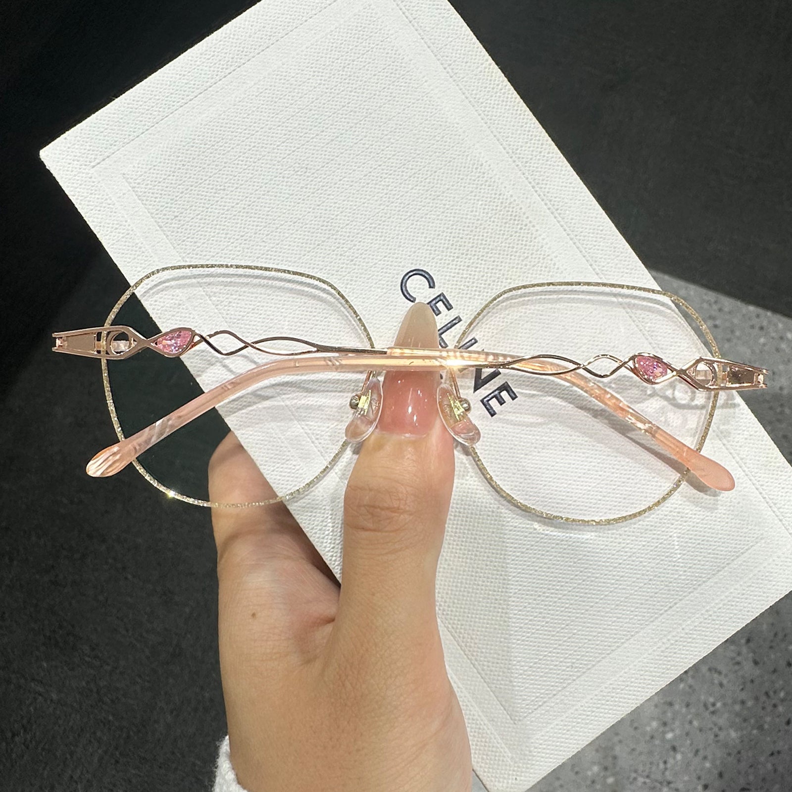 ارفع مستوى نظرك مع النظارات الساحرة المرصعة بالألماس. تعكس الأحجار الكريمة المتلألئة الموجودة على أذرع الصدغ المتشابكة برشاقة المرونة، مما يجعل هذه النظارات رفيقك الآسر.