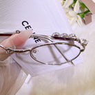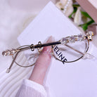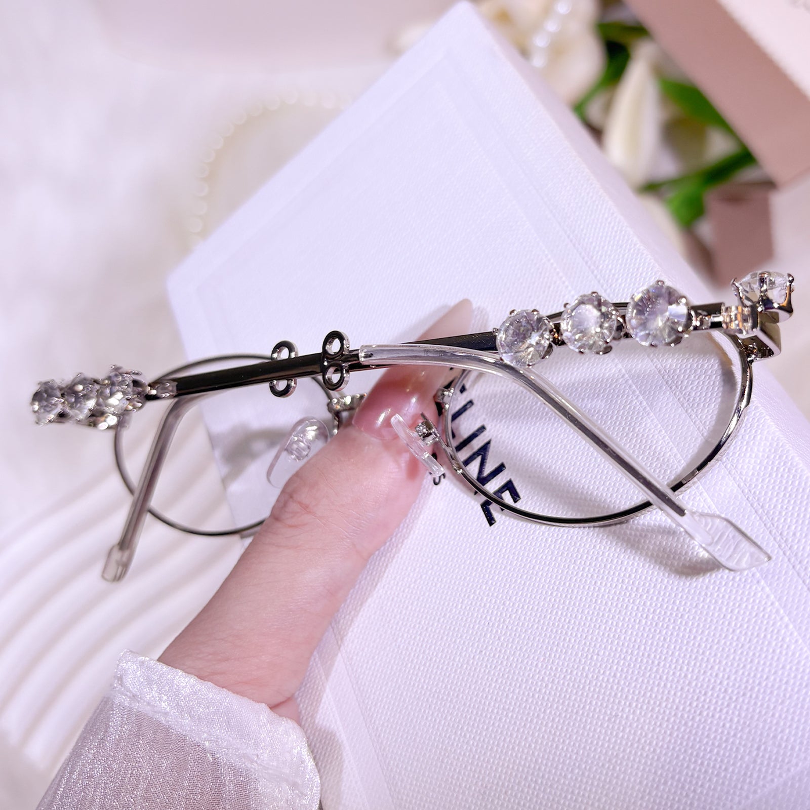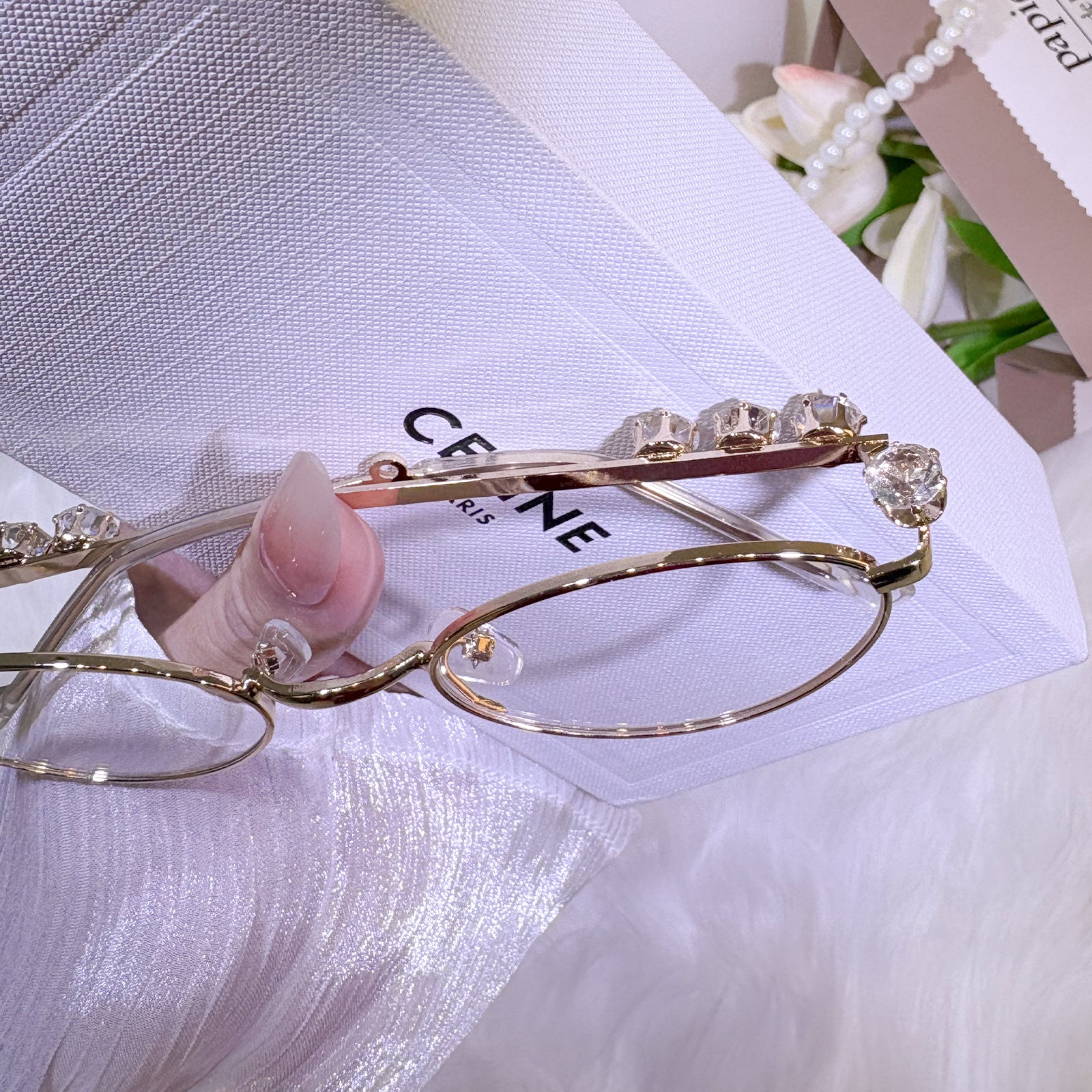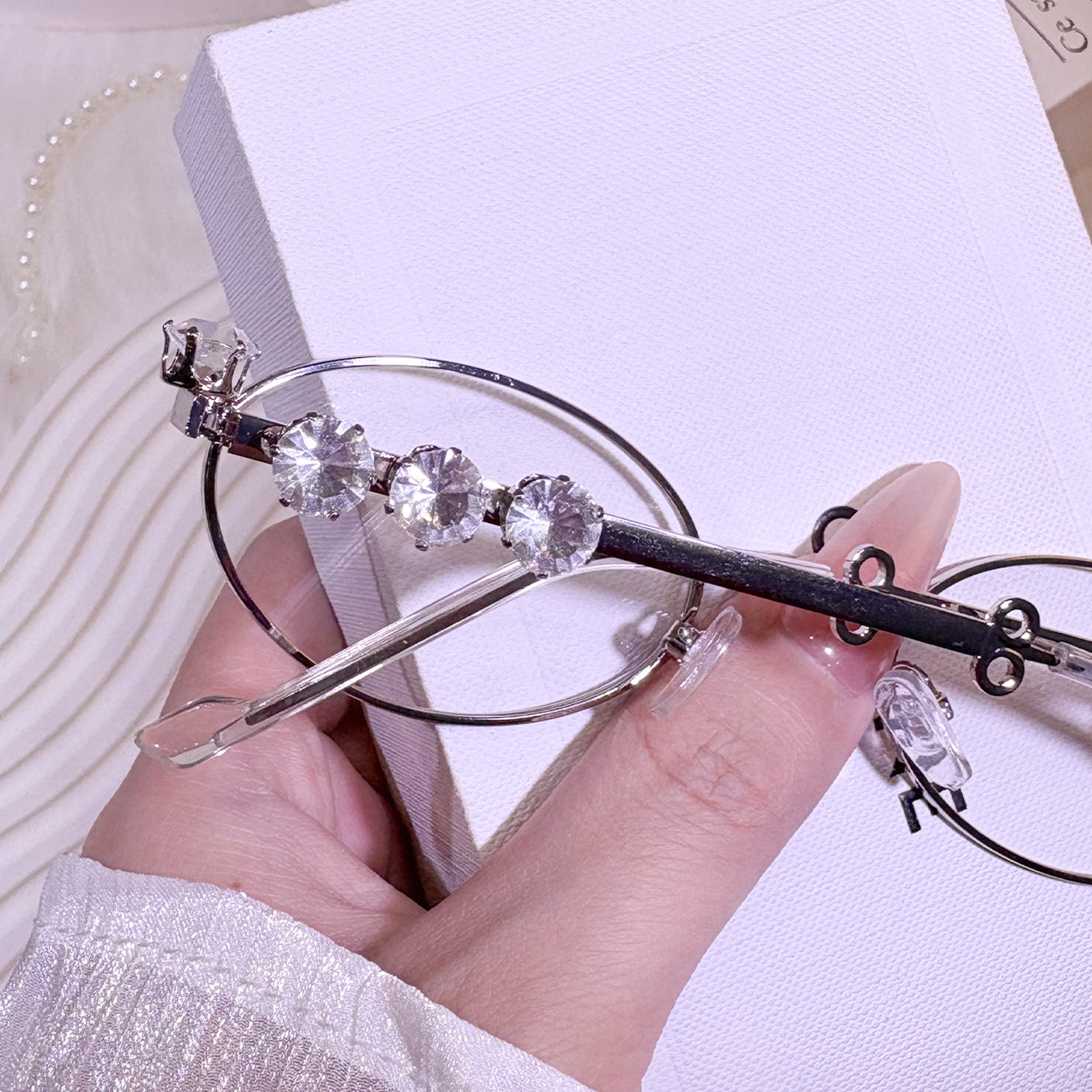 Step into the spotlight with these Y2K-inspired oval metal frames, sparkling with dazzling rhinestones that capture vintage glam. Perfectly feminine and irresistibly chic, they add a radiant shine to any outfit. Bold, stylish, and undeniably eye-catching—these frames are made for those who love to shine.