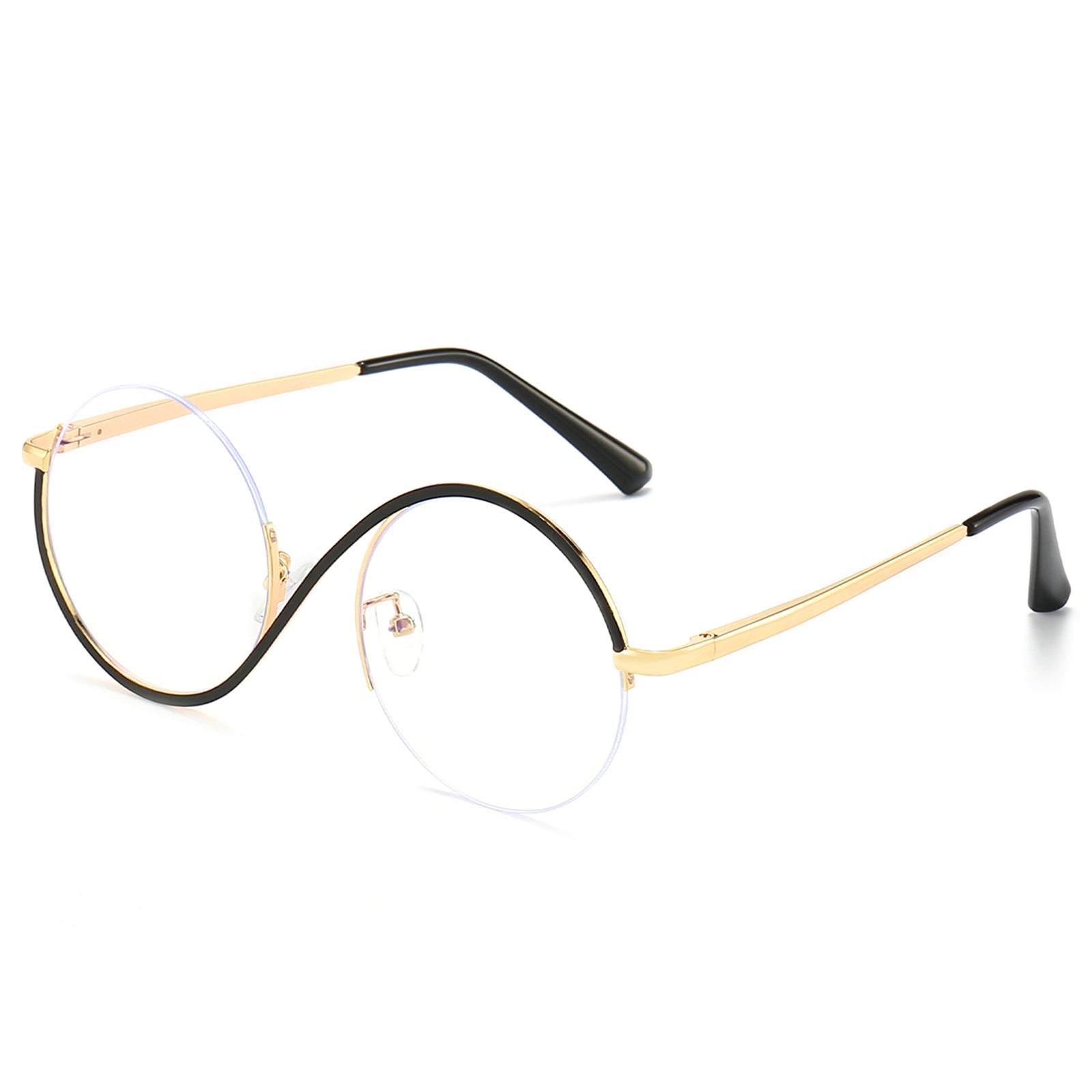 إطار نصف معدني مستدير، قطعة جريئة لأولئك الذين يجرؤون على أن يكونوا مختلفين. بفضل شكلها غير التقليدي، تضفي هذه النظارات إحساسًا بالرقي الجريء. يضيف الإطار المعدني الأنيق، المصنوع بدقة واهتمام بالتفاصيل، لمسة من الحداثة إلى أي مظهر.
