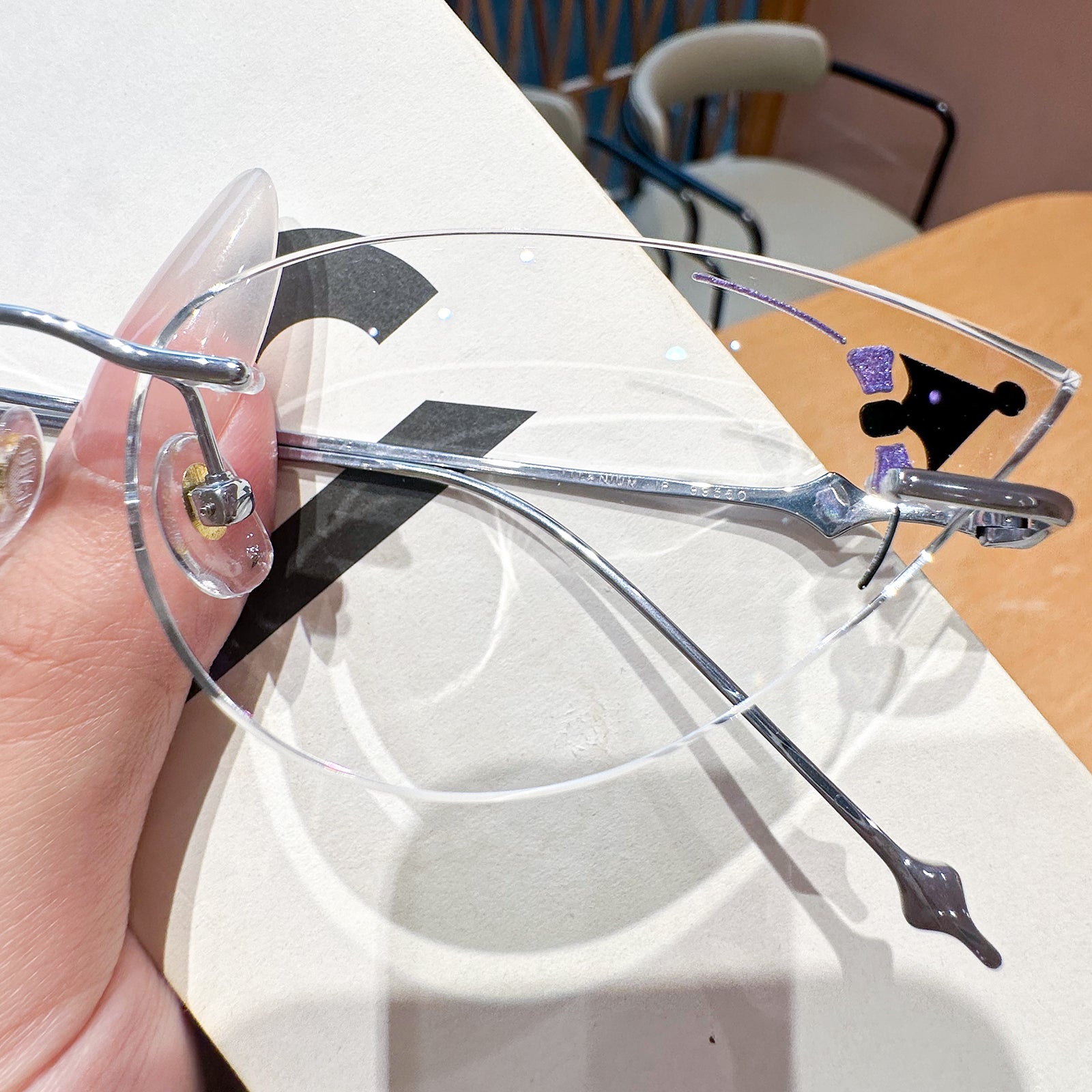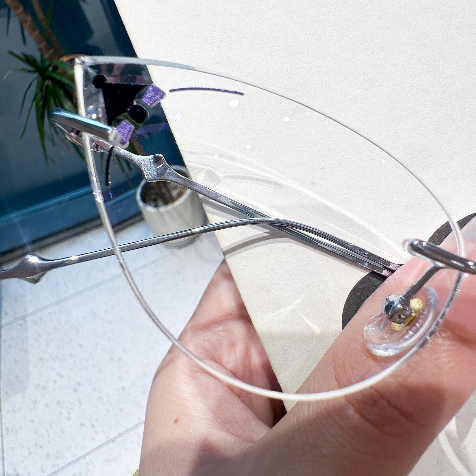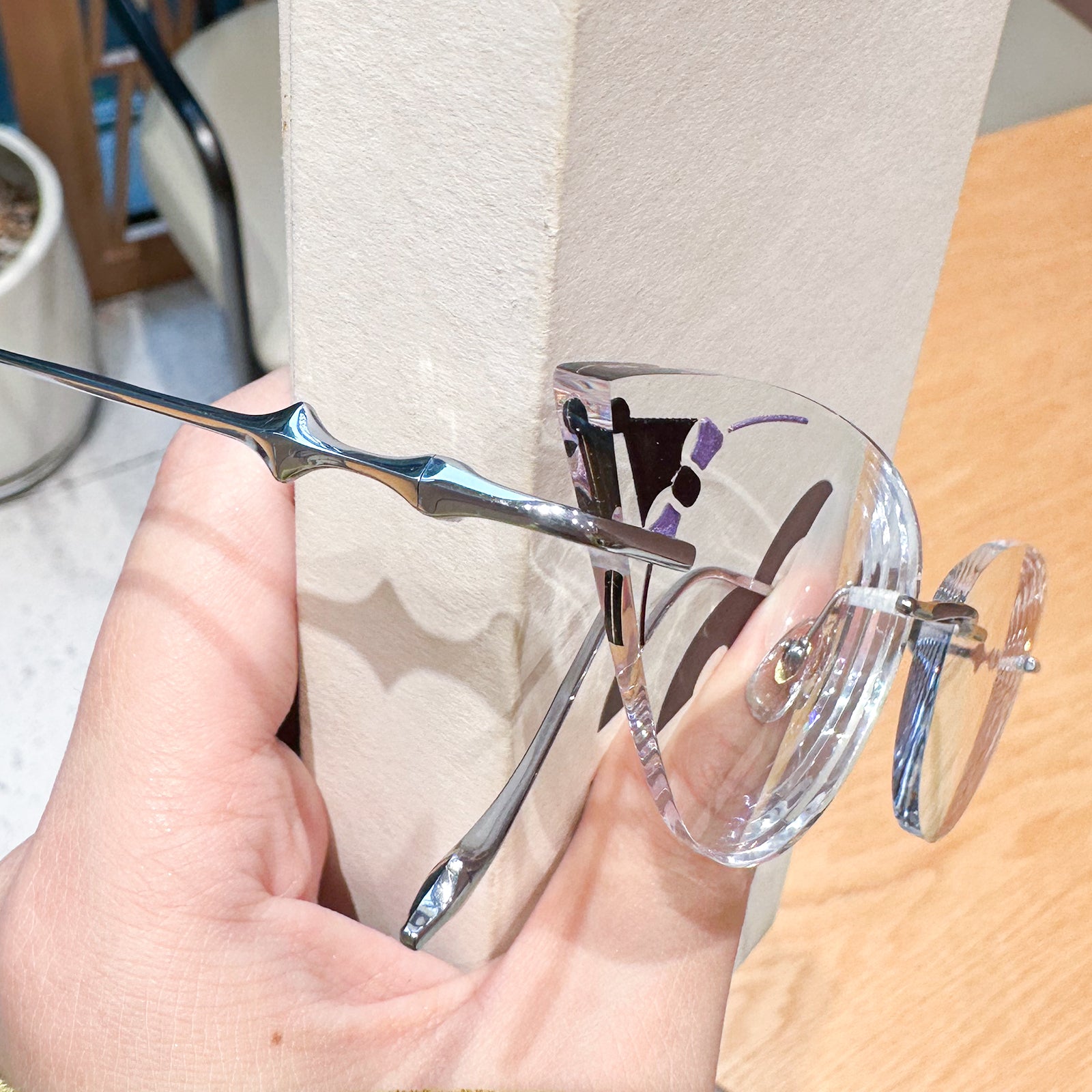 نظارات عين القطة بدون إطار مزينة بزخارف رائعة على شكل أذن وفيونكة ترتقي بمظهرك إلى المستوى التالي. يدمج هذا التصميم الجريء بين السحر المرح والرقي الحديث بسلاسة، مما يجعل هذه النظارات الإكسسوار المثالي للمرأة الواثقة من نفسها والمستعدة للتميز وسط أي حشد من الناس.