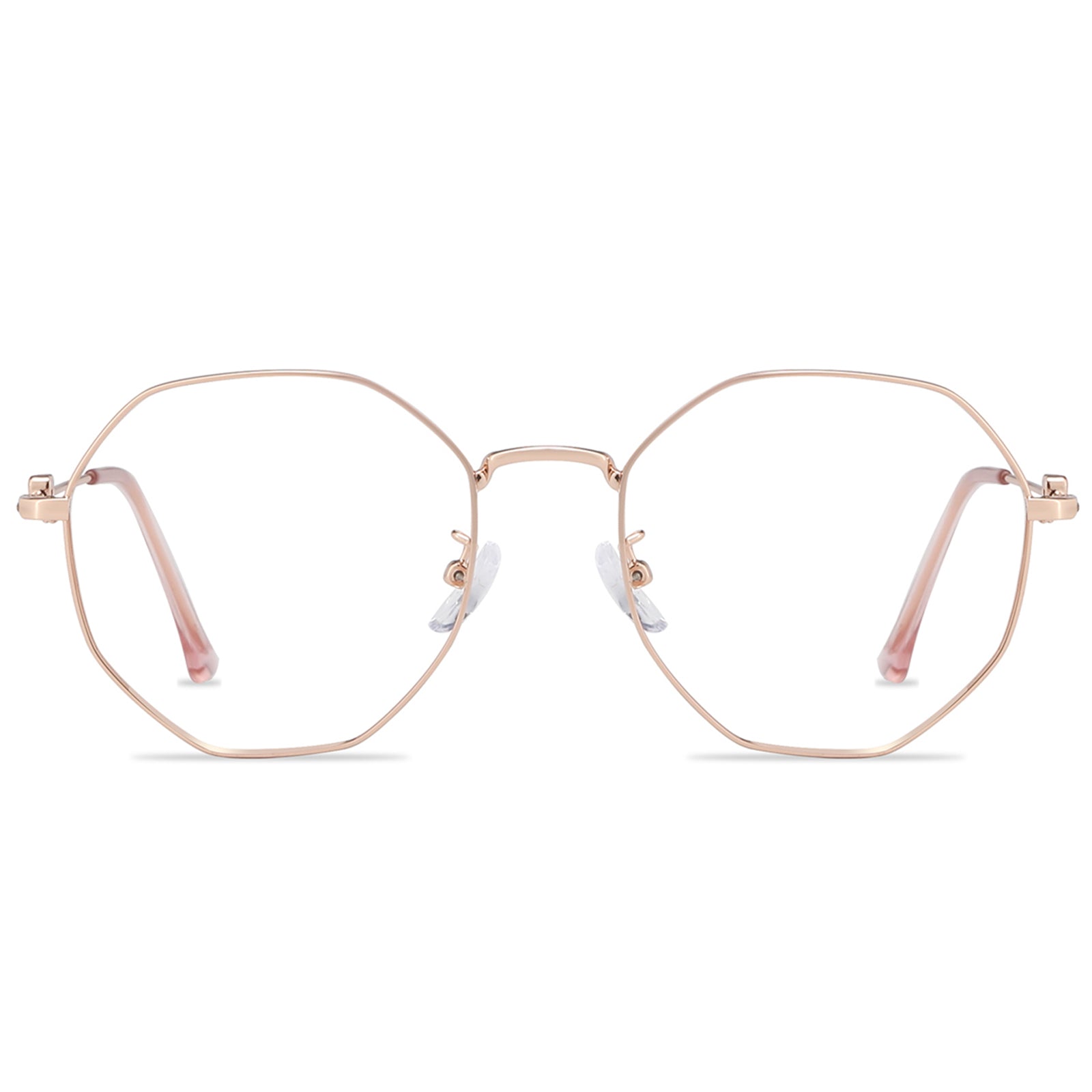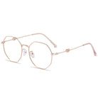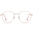 مجموعة نظارات رائعة تتميز بإطارات معدنية دقيقة وعدسات متعددة الأضلاع مصممة بشكل إبداعي. حدد أسلوبك الفريد مع هذه النظارات المميزة التي تمزج بين الرقي والابتكار دون عناء.