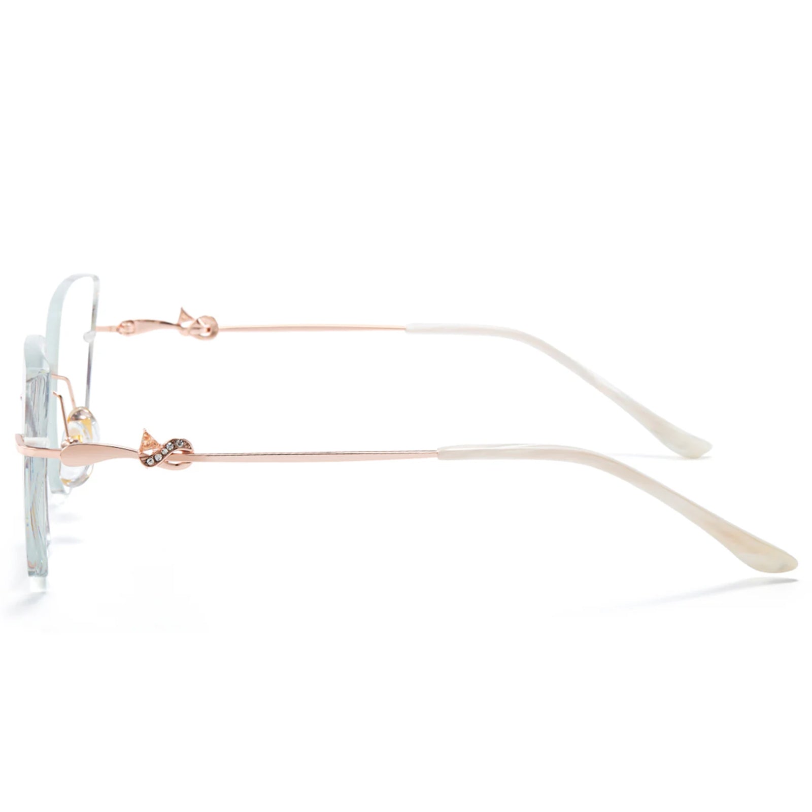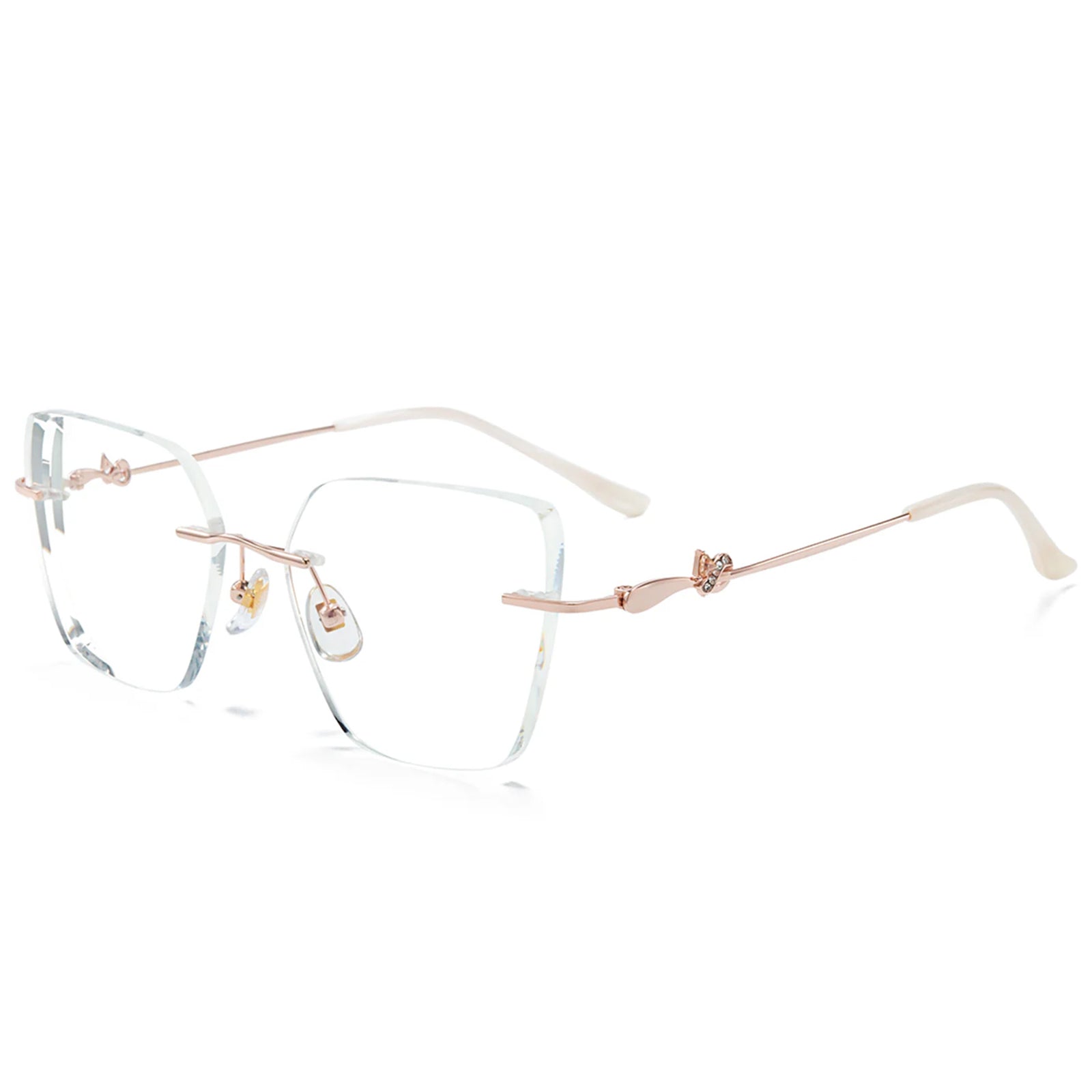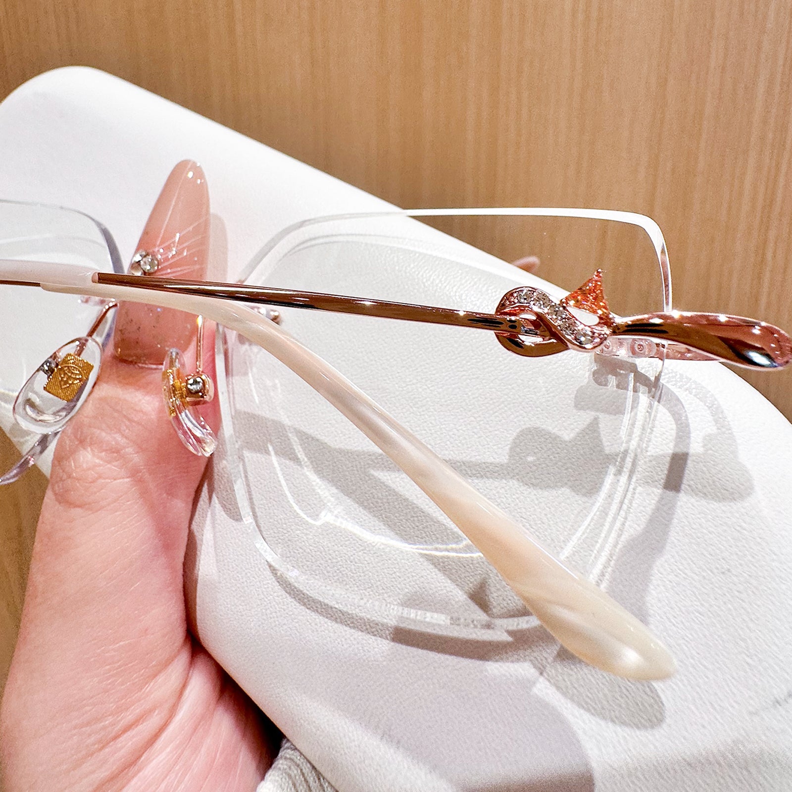 استمتعي بالسحر الخفي مع هذه النظارات المتطورة بدون إطار، المصممة للمرأة التي تحب لمسة من النزوة. تضيف زخارف الأسماك الرقيقة الموجودة على الأذرع تفاصيل لطيفة ومرحة، مما يجعل هذه النظارات راقية ومحبوبة. مثالي للأناقة اليومية مع لمسة فريدة من نوعها