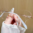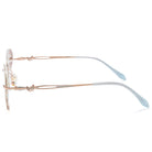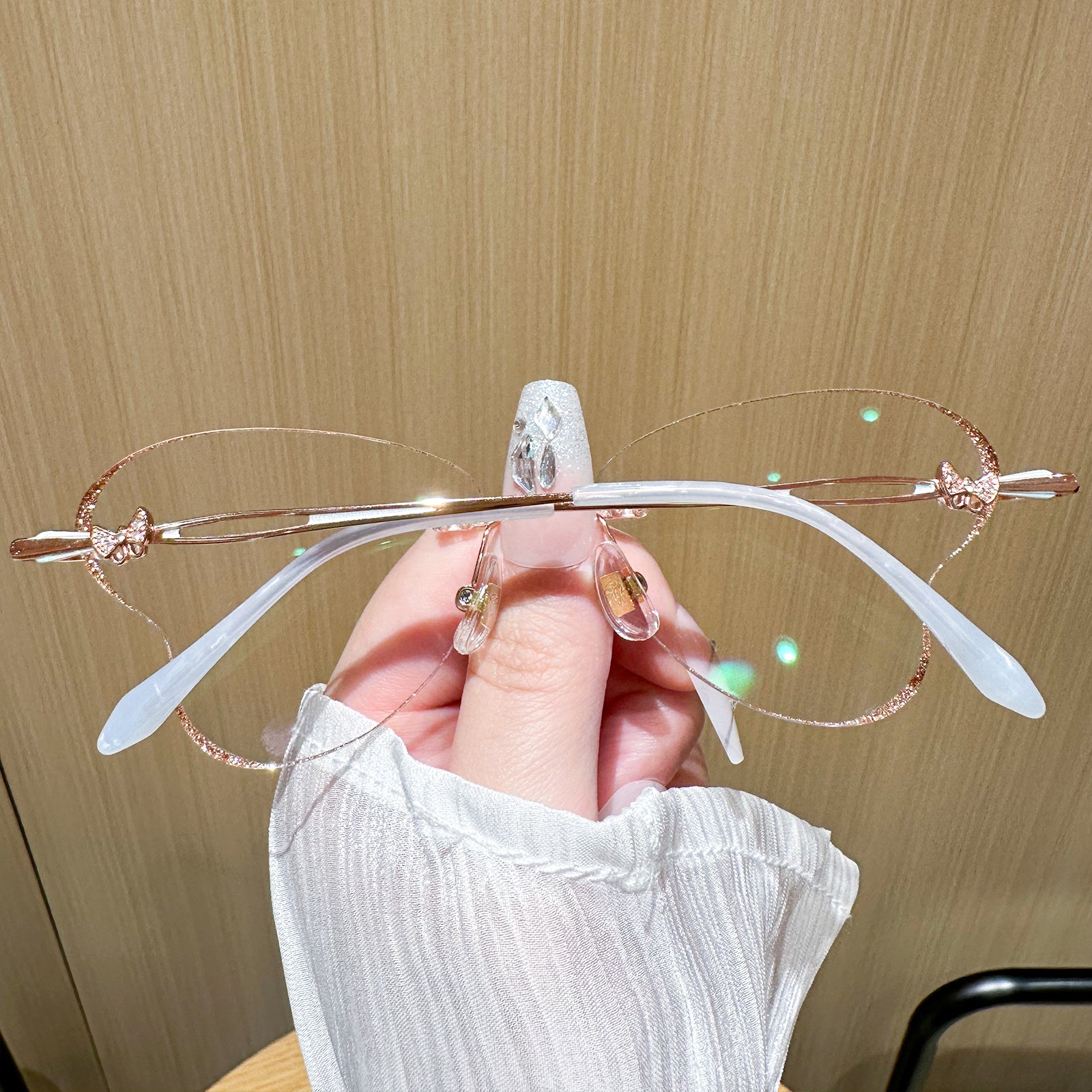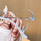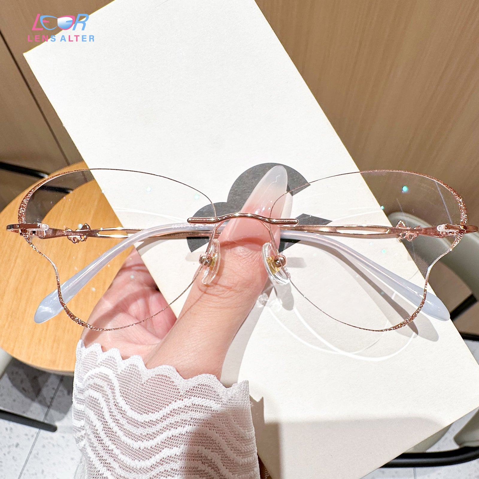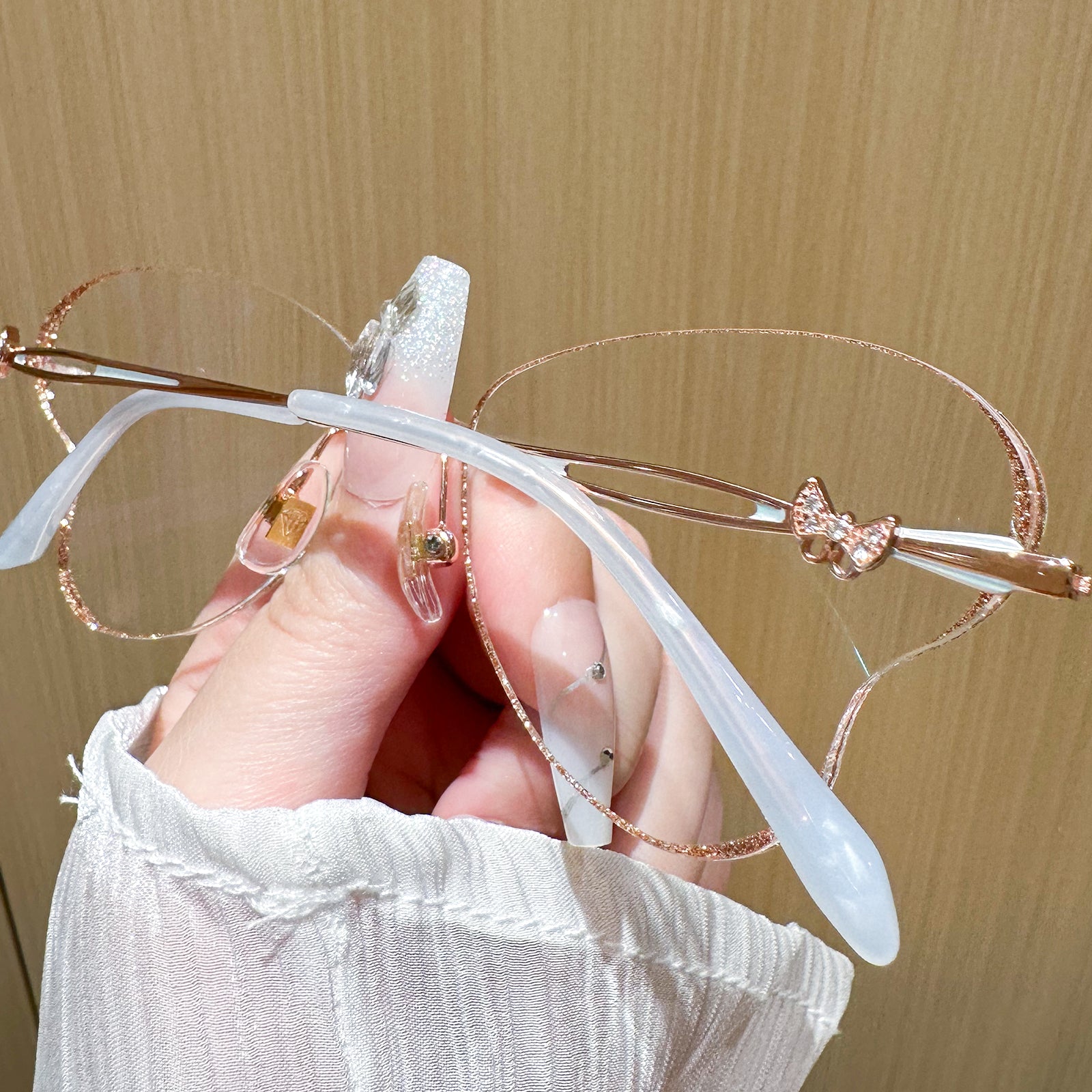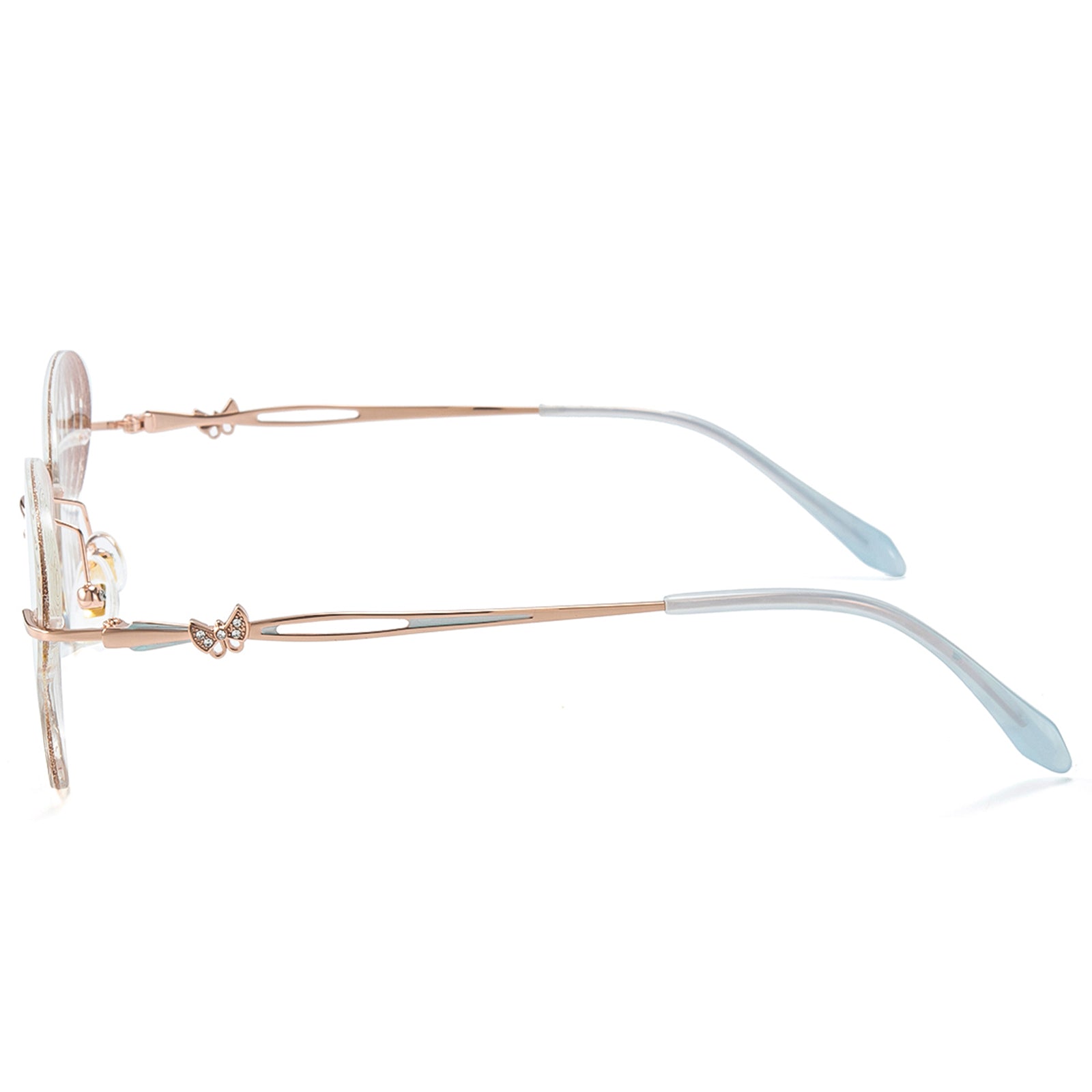 تم تزيين العدسات الفريدة على شكل فراشة بمسحوق ذهبي مبهر عند الذيل، مما يخلق تأثيرًا مذهلاً. تم تزيين الأذرع بشكل جميل بأنماط الفراشة المعقدة، مما يضيف لمسة إضافية من الأناقة. تحدث عن نظارات الفراشة الخاصة بنا.