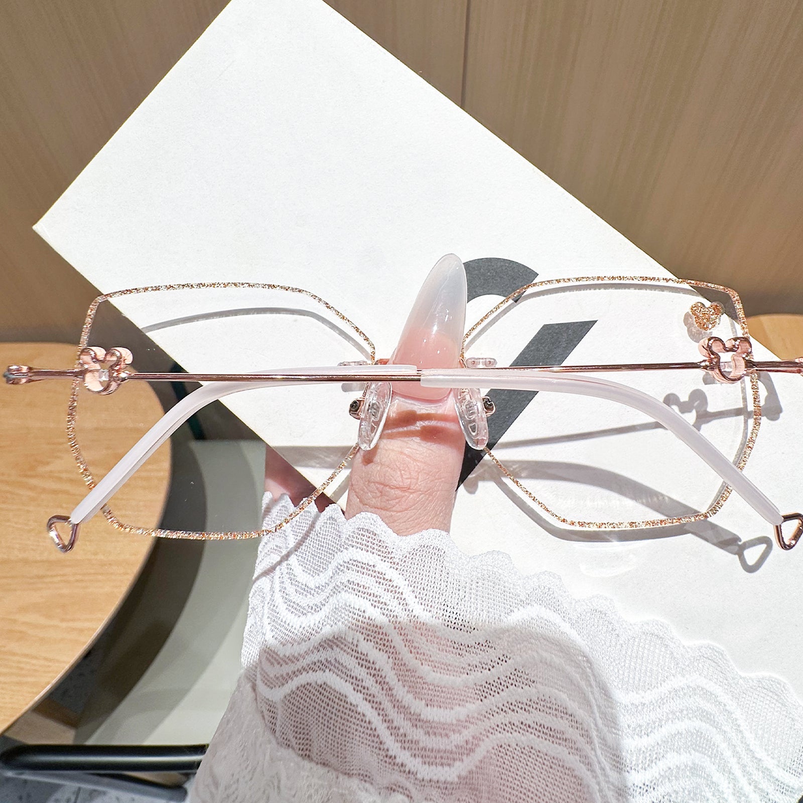 احتضن جانبك المرح مع نظارتنا بدون إطار المستوحاة من شخصية ميكي ماوس والمزينة بلمسات لامعة على العدسات لإضفاء لمسة من التألق. صُممت هذه الإطارات خصيصًا للمرأة الأنيقة، وتوفر مزيجًا فريدًا من الأناقة والغرابة. خفيفة الوزن ومريحة، وهي مثالية لإضافة لمسة من المرح والتألق إلى أي ملابس. تألقي براقة وأظهري انطباعًا مع كل ارتداء.