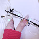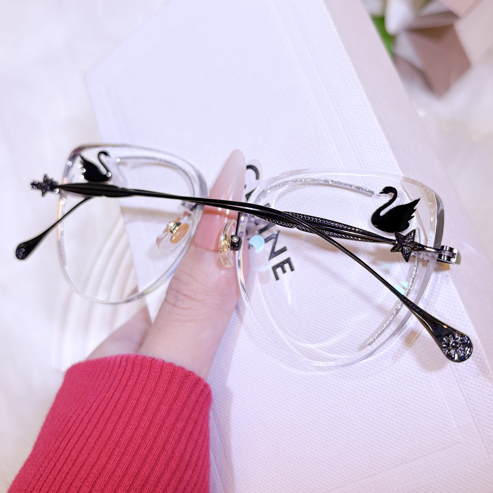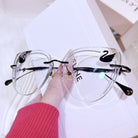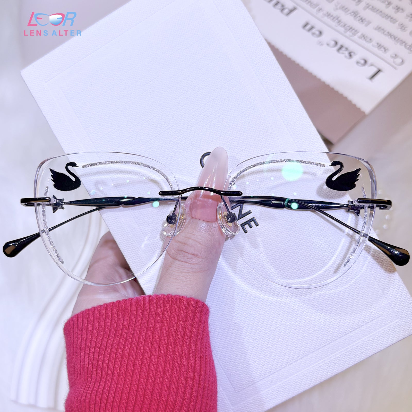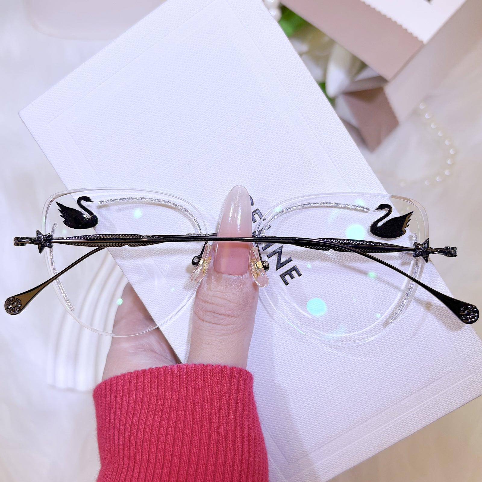 | Exclusive Design | These delicately minimalist glasses for women feature a weightless metal frame in soft blush pink, where the frameless design draws full attention to the graceful swan motif adorning each temple tip. The elegant swan appears in mid-flight, its form sculpted with poetic precision against the warm-toned metal, creating a look that balances ethereal beauty with structured refinement. For the modern woman who carries both strength and grace in her every gesture.
