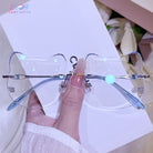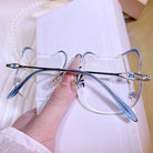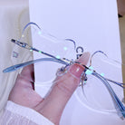 | Exclusive Design | Super cute whisker-inspired rimless glasses designed in an adorable cat silhouette. The lenses feature gentle playful curves, while the temple tips are accented with small blue beads for a charming touch. Made with lightweight titanium temples, they are incredibly comfortable for all-day wear — perfect for anyone who loves a soft, sweet, and unique aesthetic.