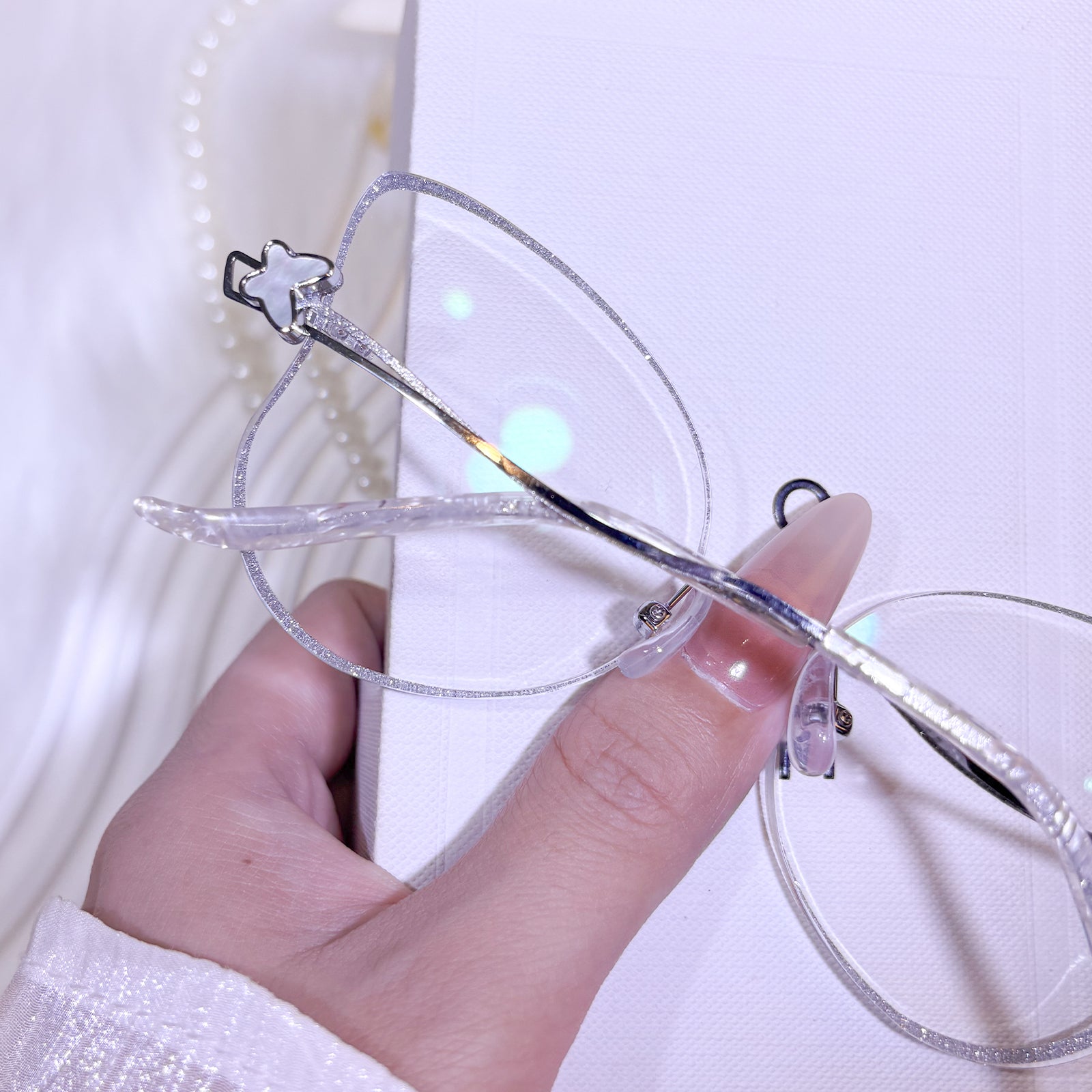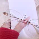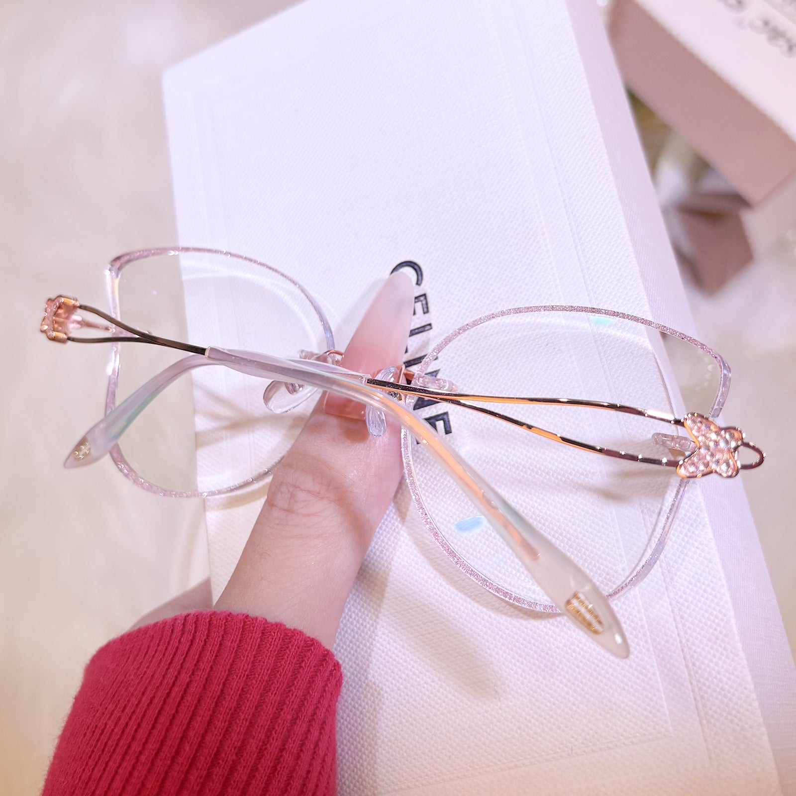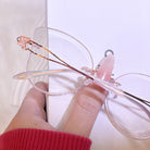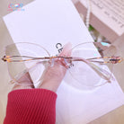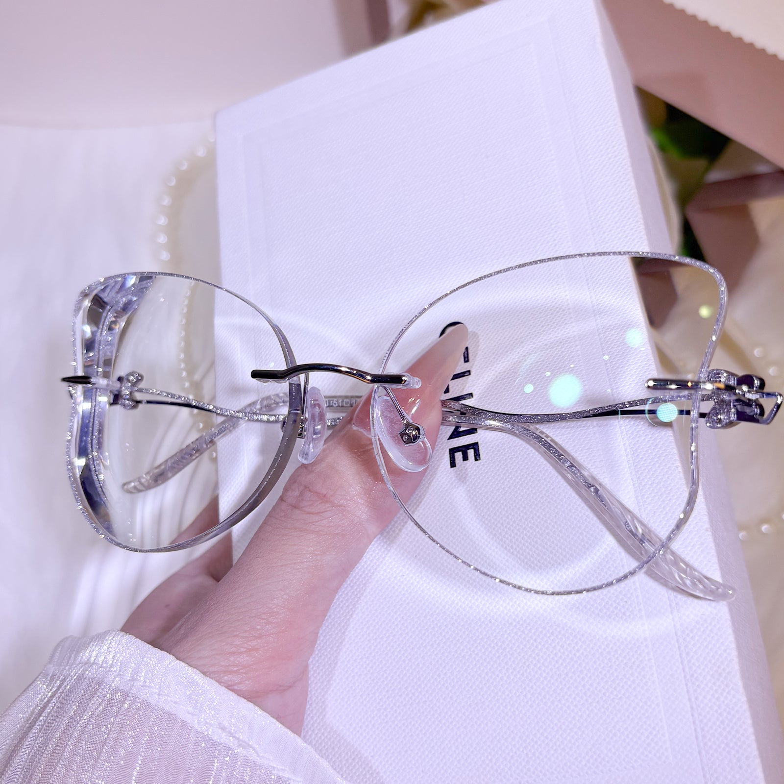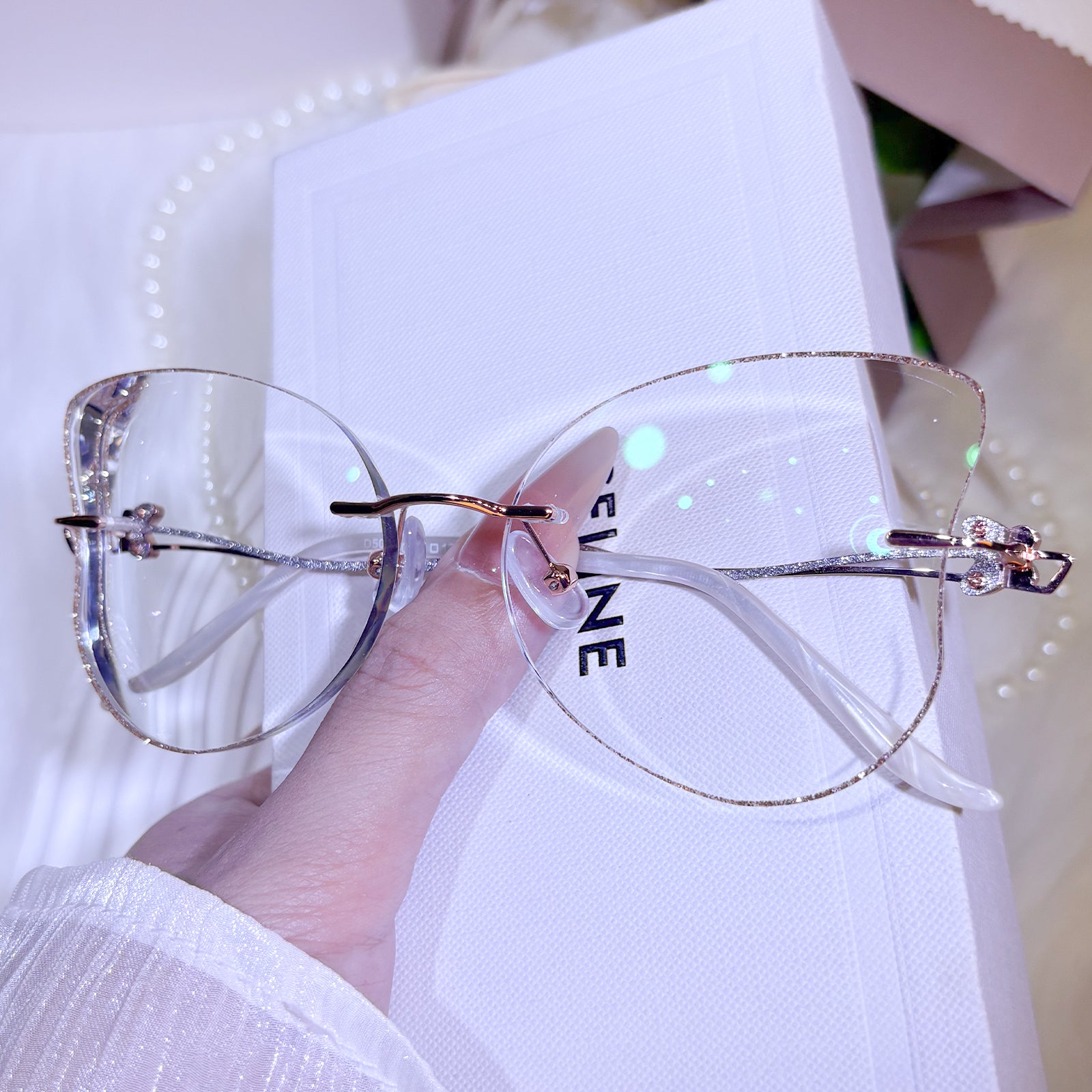 | Exclusive Design | This adorable chubby-butterfly rimless eyewear is designed to shimmer from every angle. The butterfly-shaped lenses are dusted with sparkling glitter that catches the light beautifully, creating an eye-catching, dreamy effect. Delicate butterfly accents on the temples enhance the overall elegance and detail, while the lightweight construction ensures comfortable everyday wear.