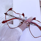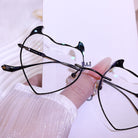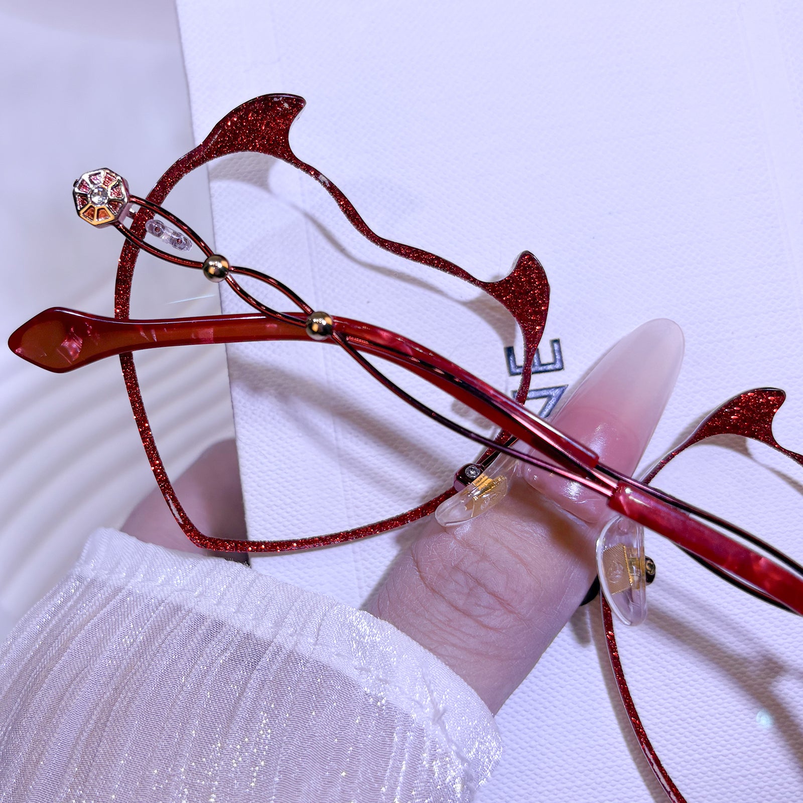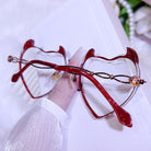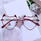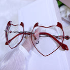 | Exclusive Design | This adorable heart-shaped “little devil” rimless eyewear brings playful charm with a bold twist. The lenses are outlined with sparkling glitter, catching the light beautifully and adding a dreamy, eye-catching glow. Lightweight and effortlessly stylish, these frames blend sweetness with just the right hint of attitude—perfect for anyone who wants to show off a cute yet mischievous aesthetic.