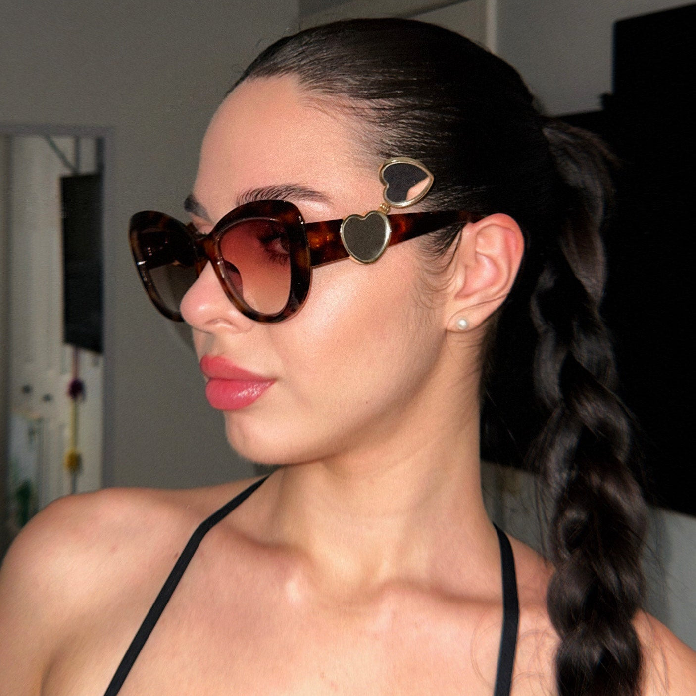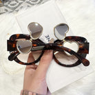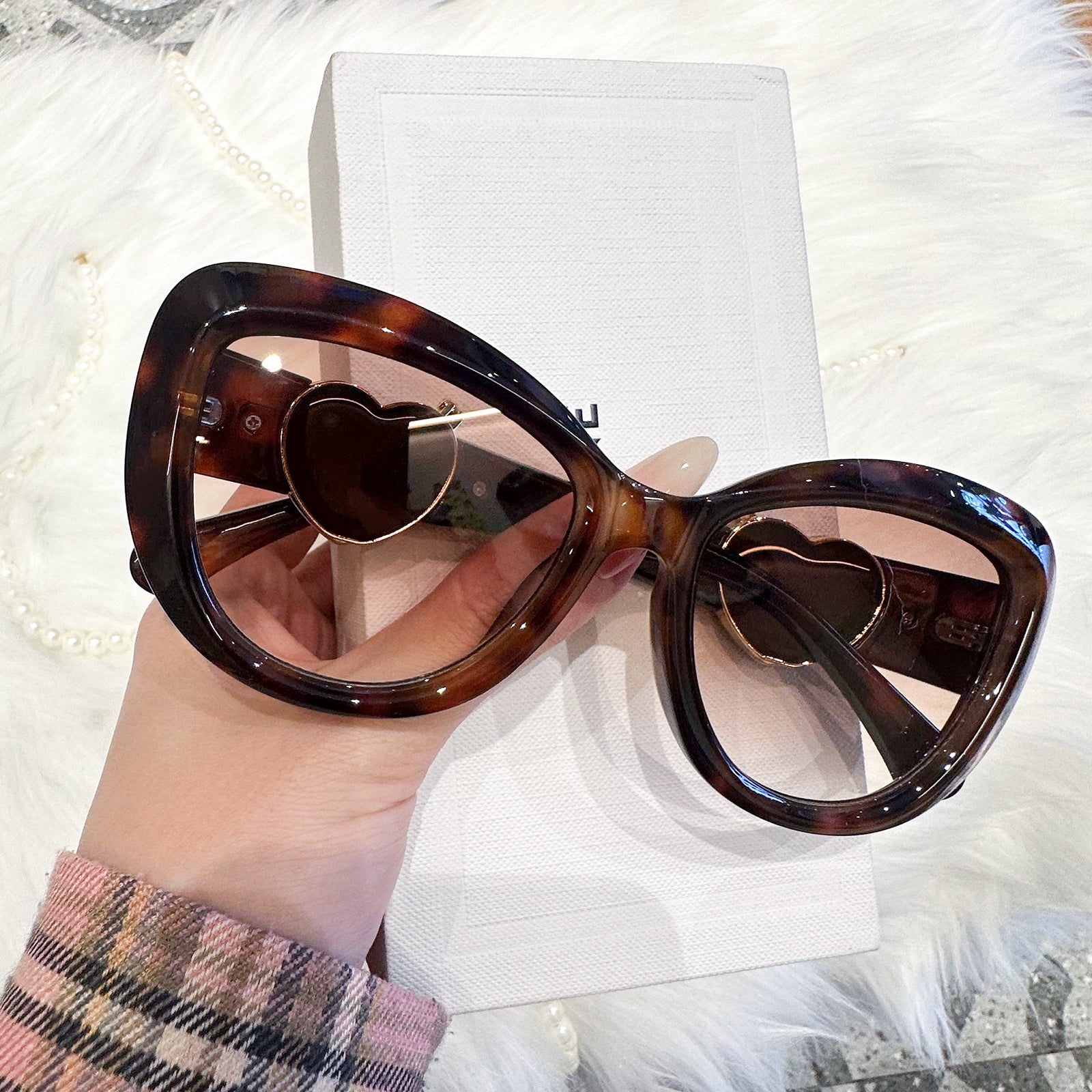 This oversized leopard-print frame is a bold fashion statement, blending retro flair with playful charm. The highlight lies in the temple design—each side features a heart-shaped mini mirror, adding a unique and creative twist. Eye-catching yet functional, this pair is perfect for fashion-forward individuals who love to stand out with originality and sweetness in their everyday style.