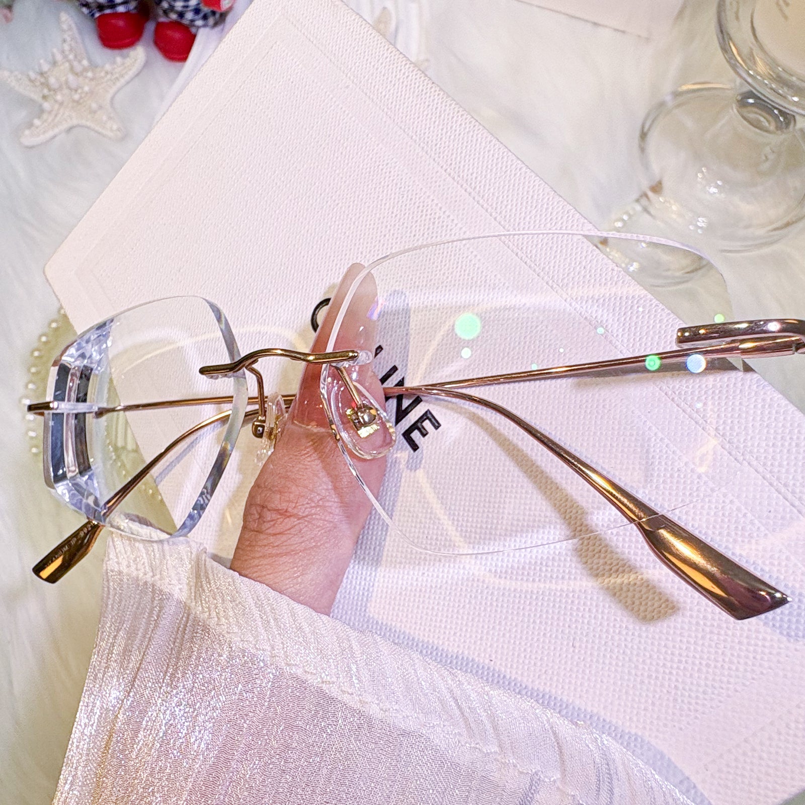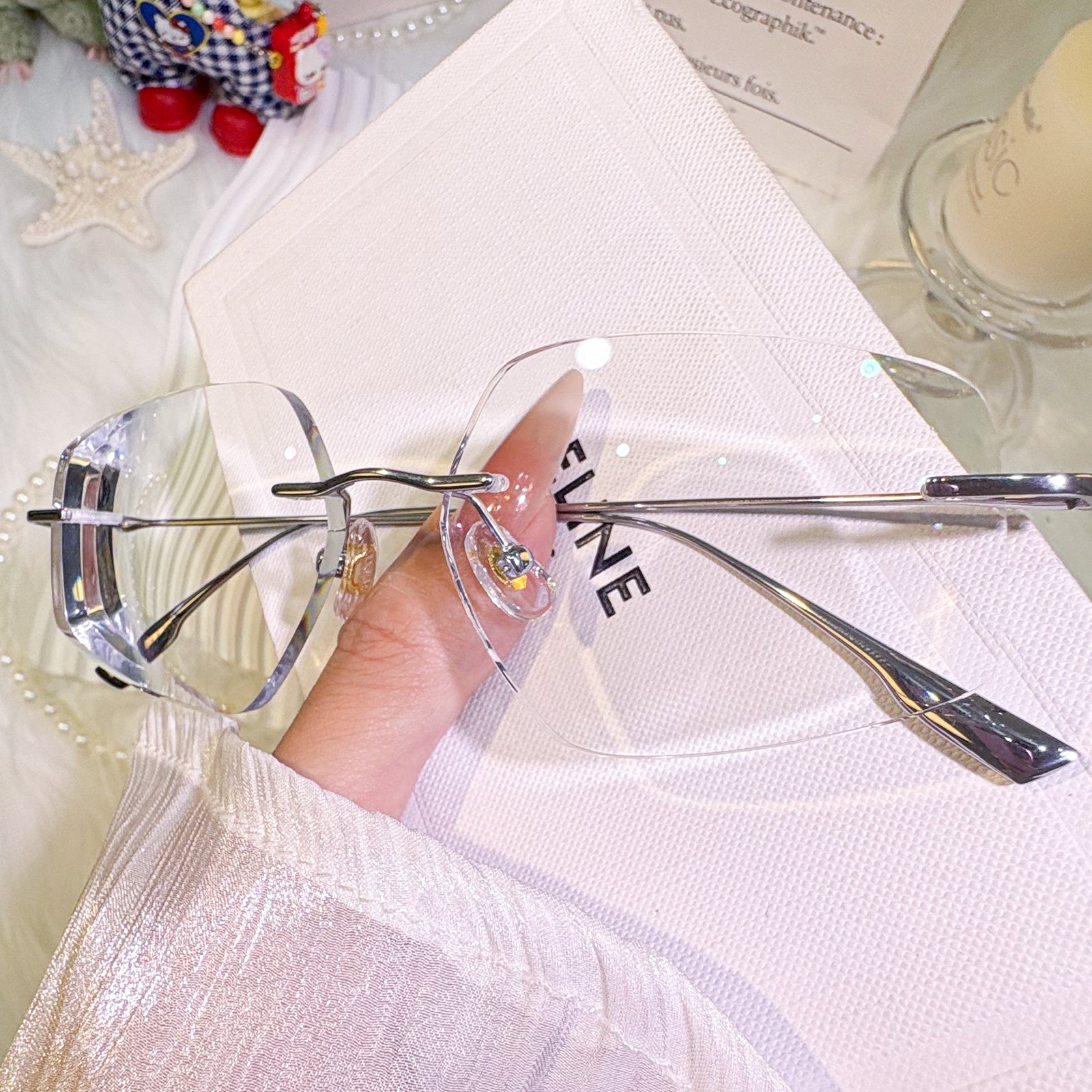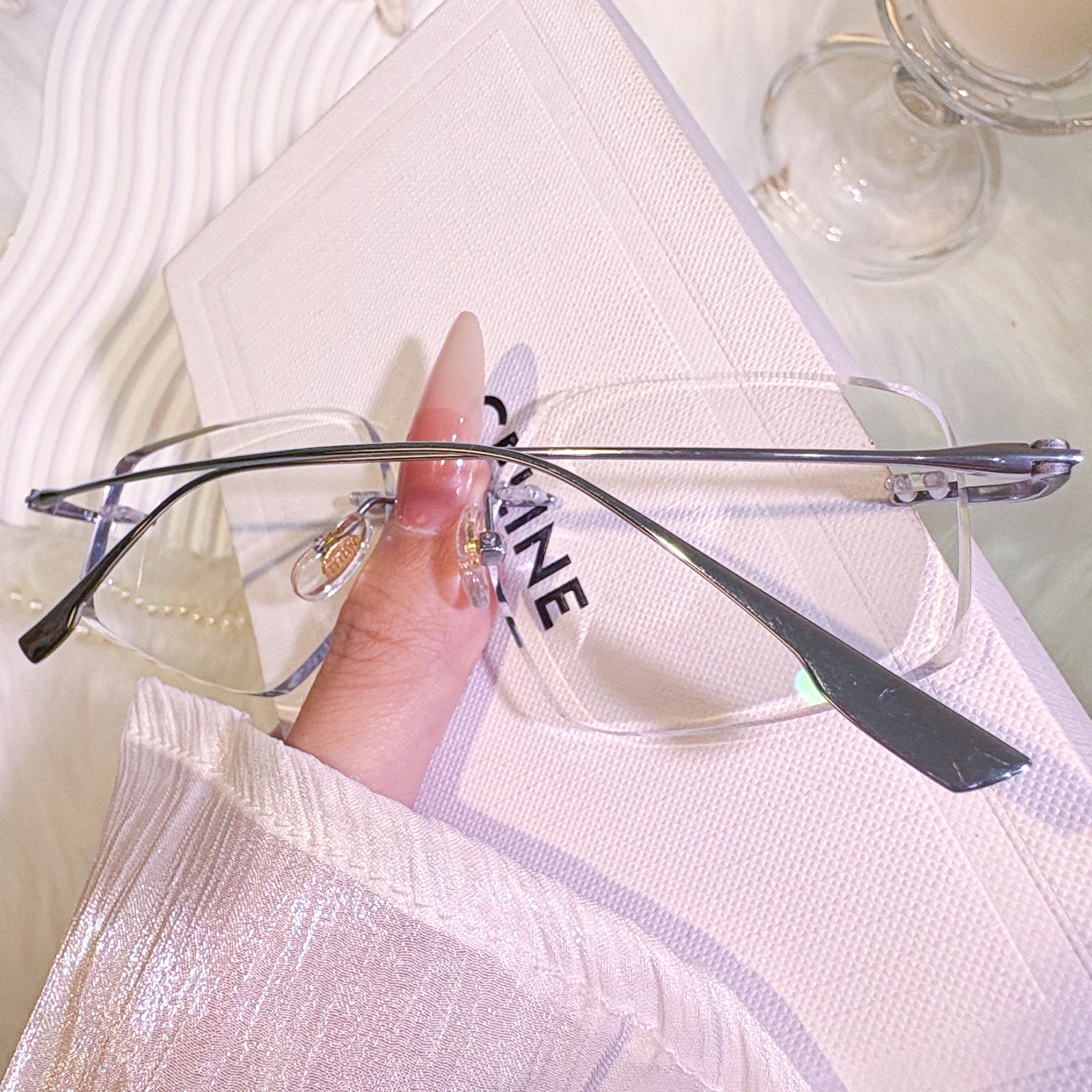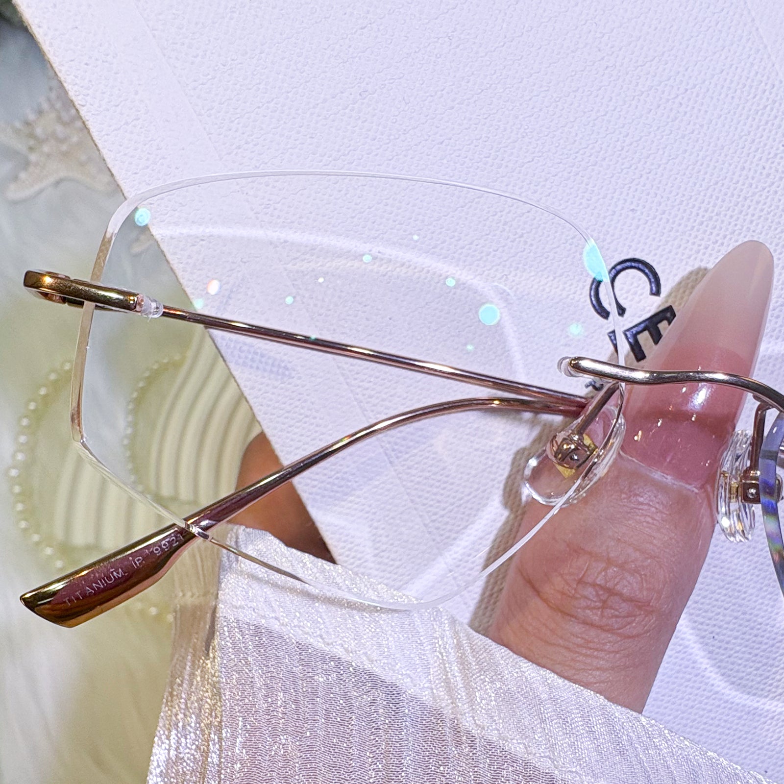 | Exlusive Design | These uniquely shaped rimless glasses are a bold expression of unconventional elegance. The titanium temples offer a sleek, minimalist silhouette that feels featherlight on the face. With their distinctive contours and timeless charm, this pair is perfect for those who appreciate both individuality and classic refinement.
