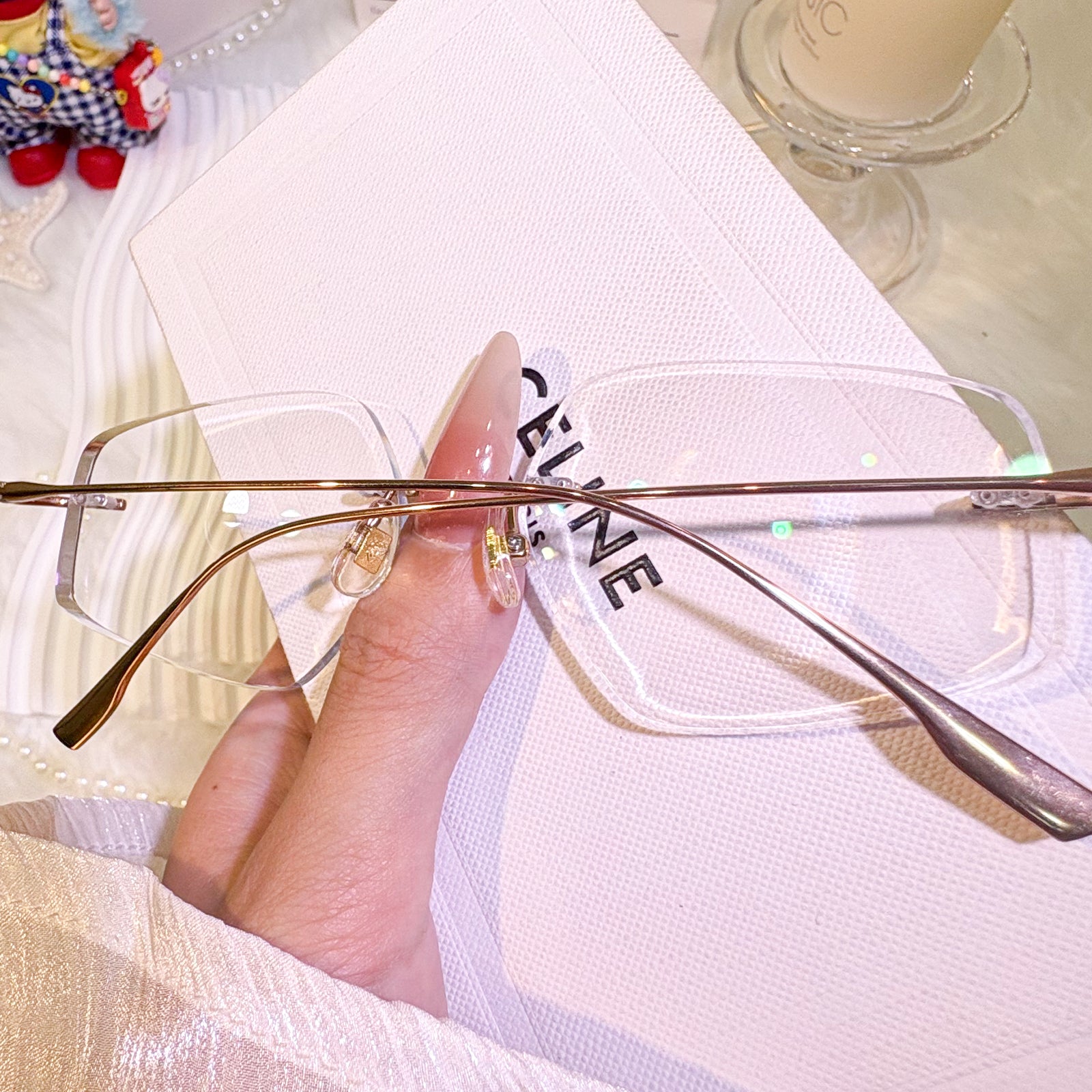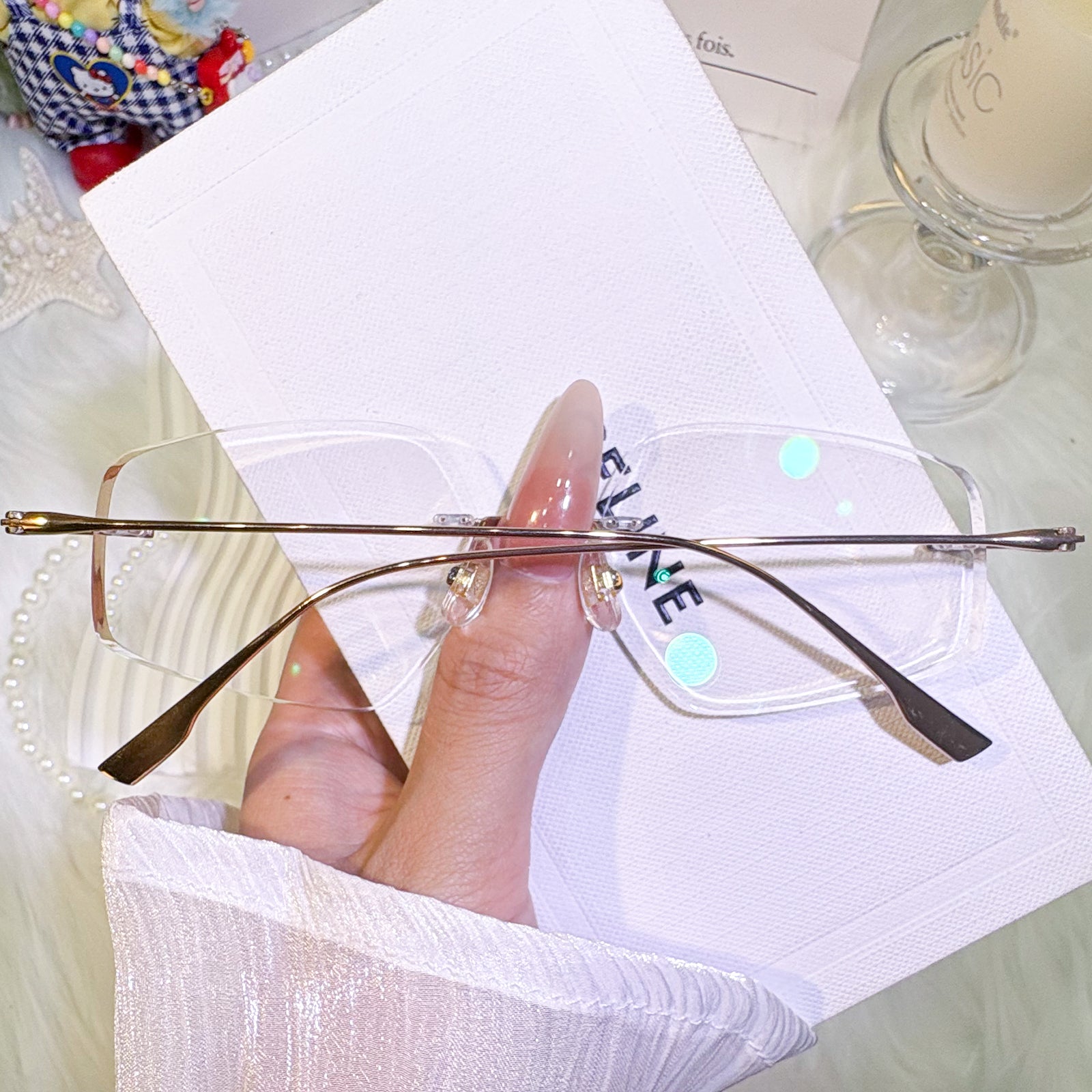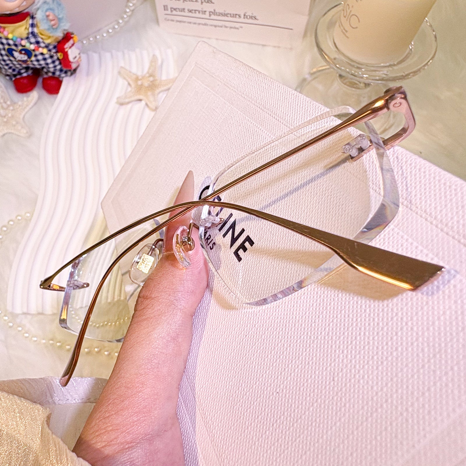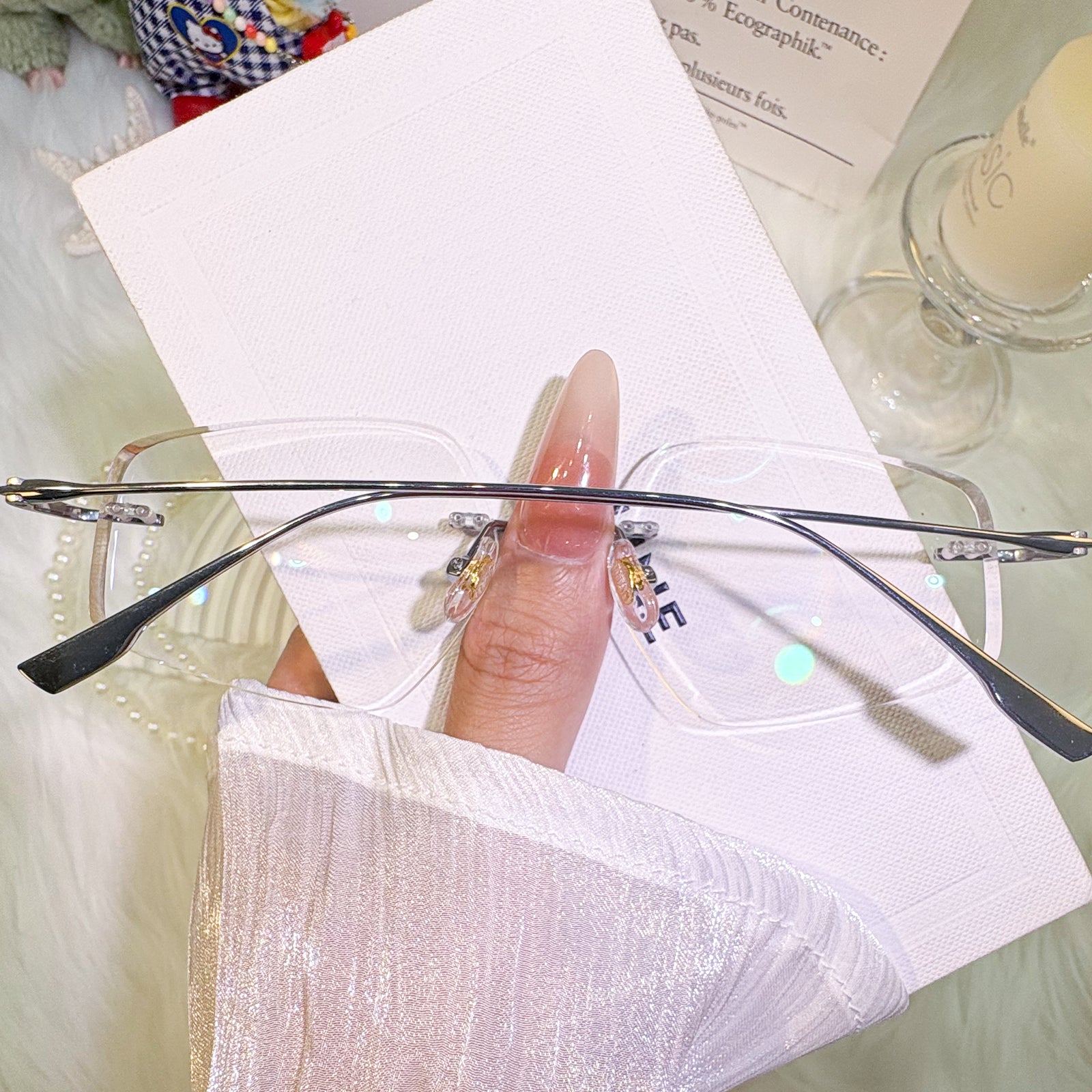 | Exlusive Design | These uniquely shaped rimless glasses are a bold expression of unconventional elegance. The titanium temples offer a sleek, minimalist silhouette that feels featherlight on the face. With their distinctive contours and timeless charm, this pair is perfect for those who appreciate both individuality and classic refinement.