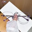 Schillernde Brillen mit Objektiven mit exquisiten lila goldenen Kanten und Tempeln, die mit großen, atemberaubenden Diamanten geschmückt sind. Die Tempel zeigen einen kristallklaren lila Farbton und verleihen einen Hauch von Brillanz und moderner Eleganz. Perfekt für diejenigen, die gerne glänzen, kombinieren luxuriöse Details mit einem schicken, zeitgemäßen Design.