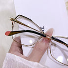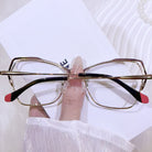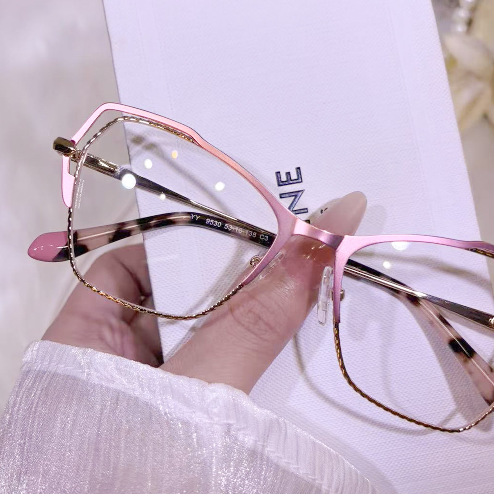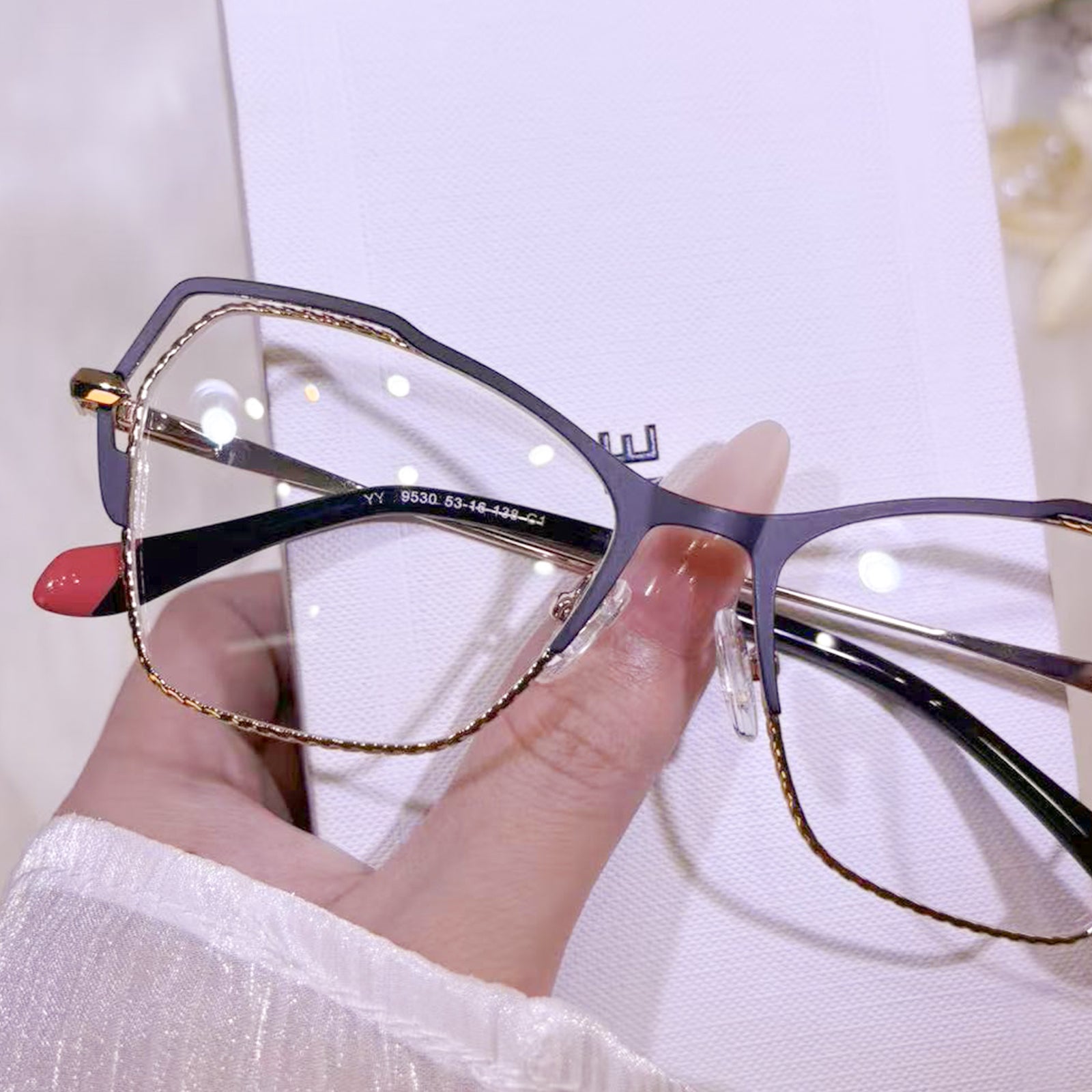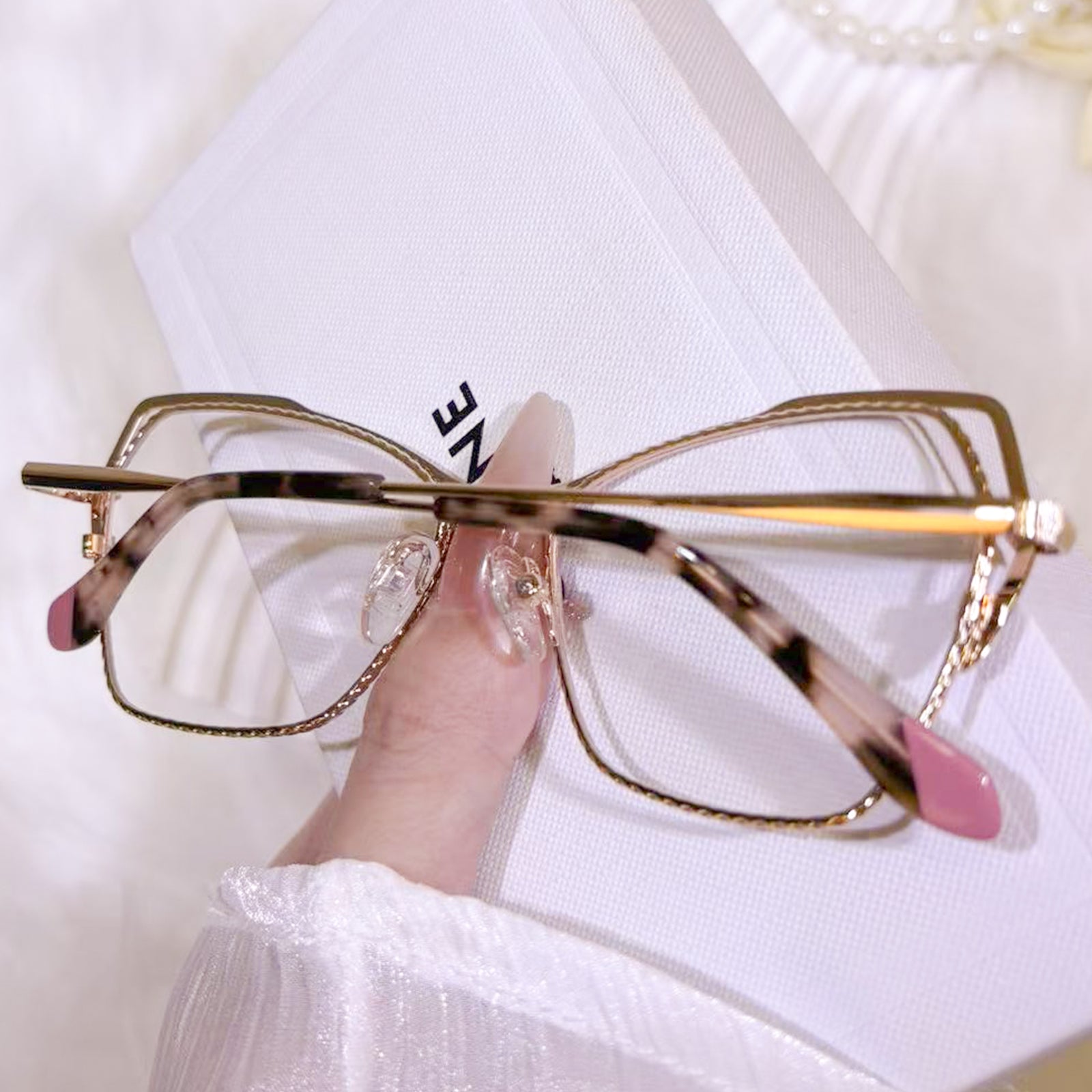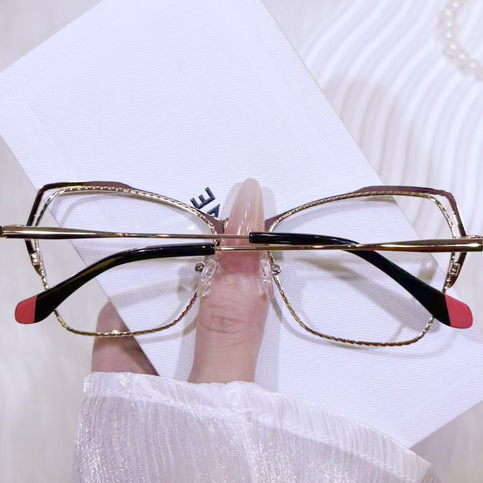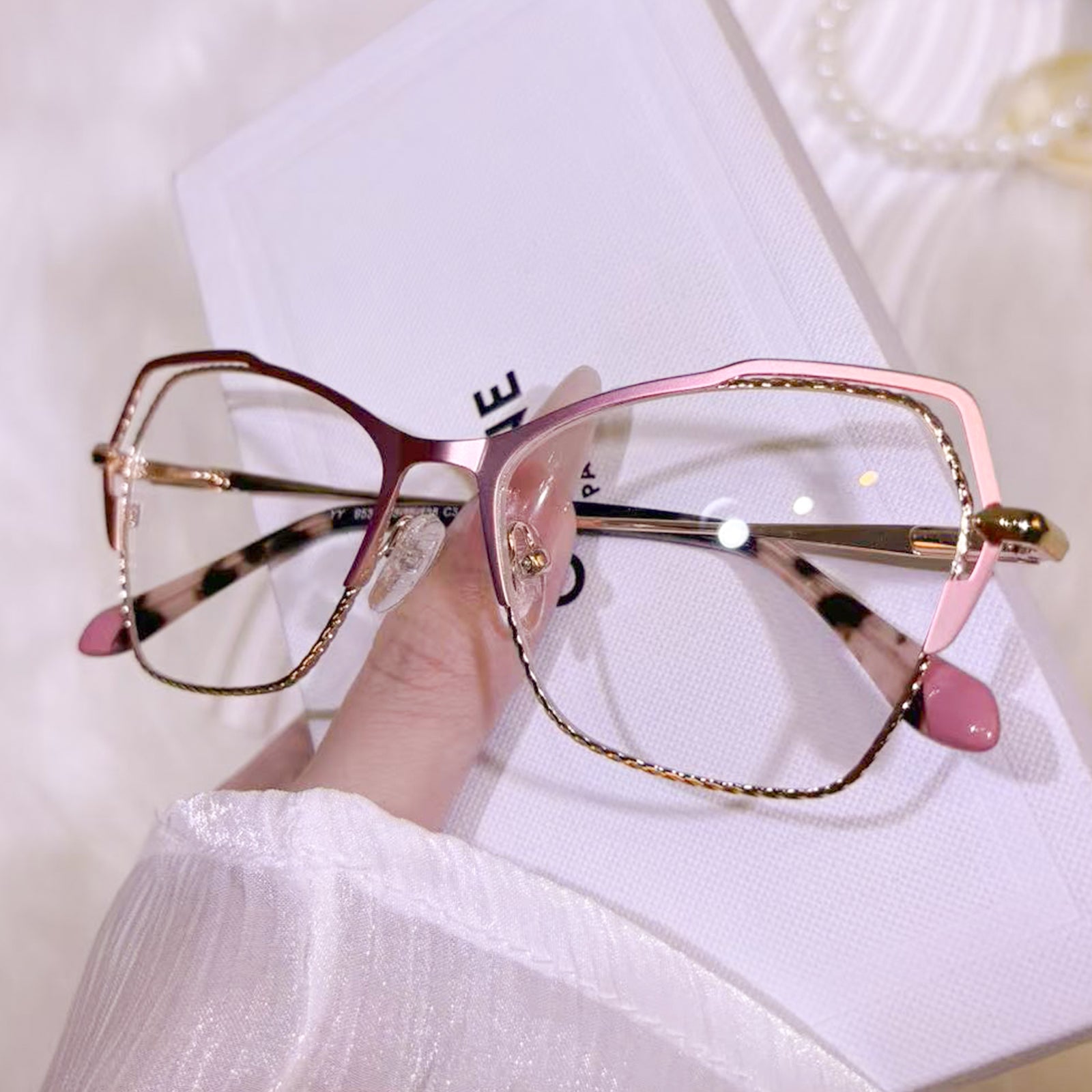 These women’s geometric metal glasses feature an ultra-smooth, lustrous finish that exudes luxury, with a refined silhouette and dazzling details for an effortlessly glamorous look.