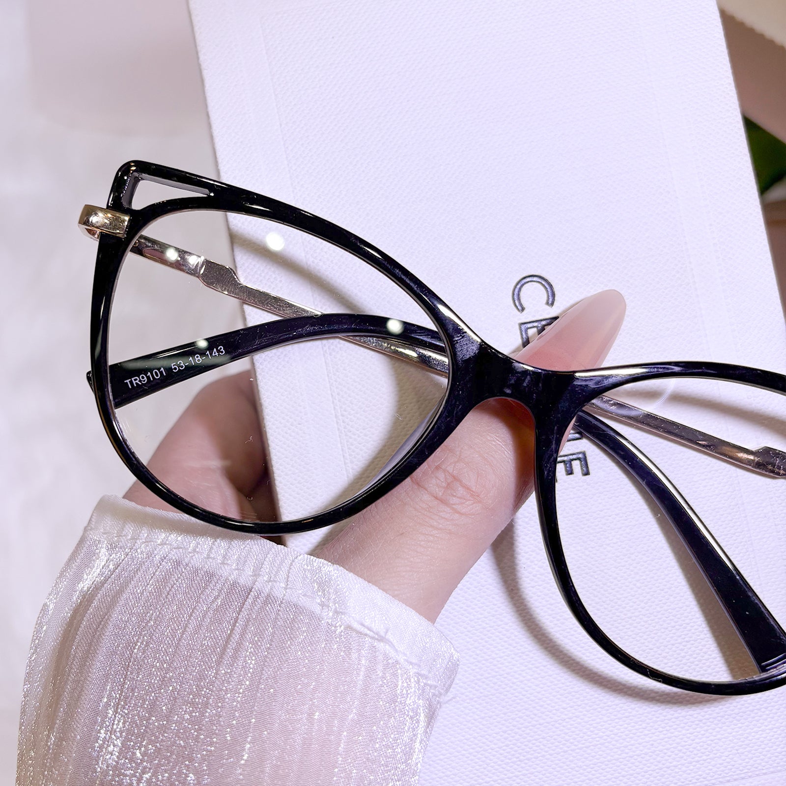 This women’s cat-eye frame crafted from TR material is both playful and charming. Its lightweight design ensures comfort, while the cat-eye silhouette adds a touch of fun and cuteness, making it perfect for those who love a youthful and stylish look.