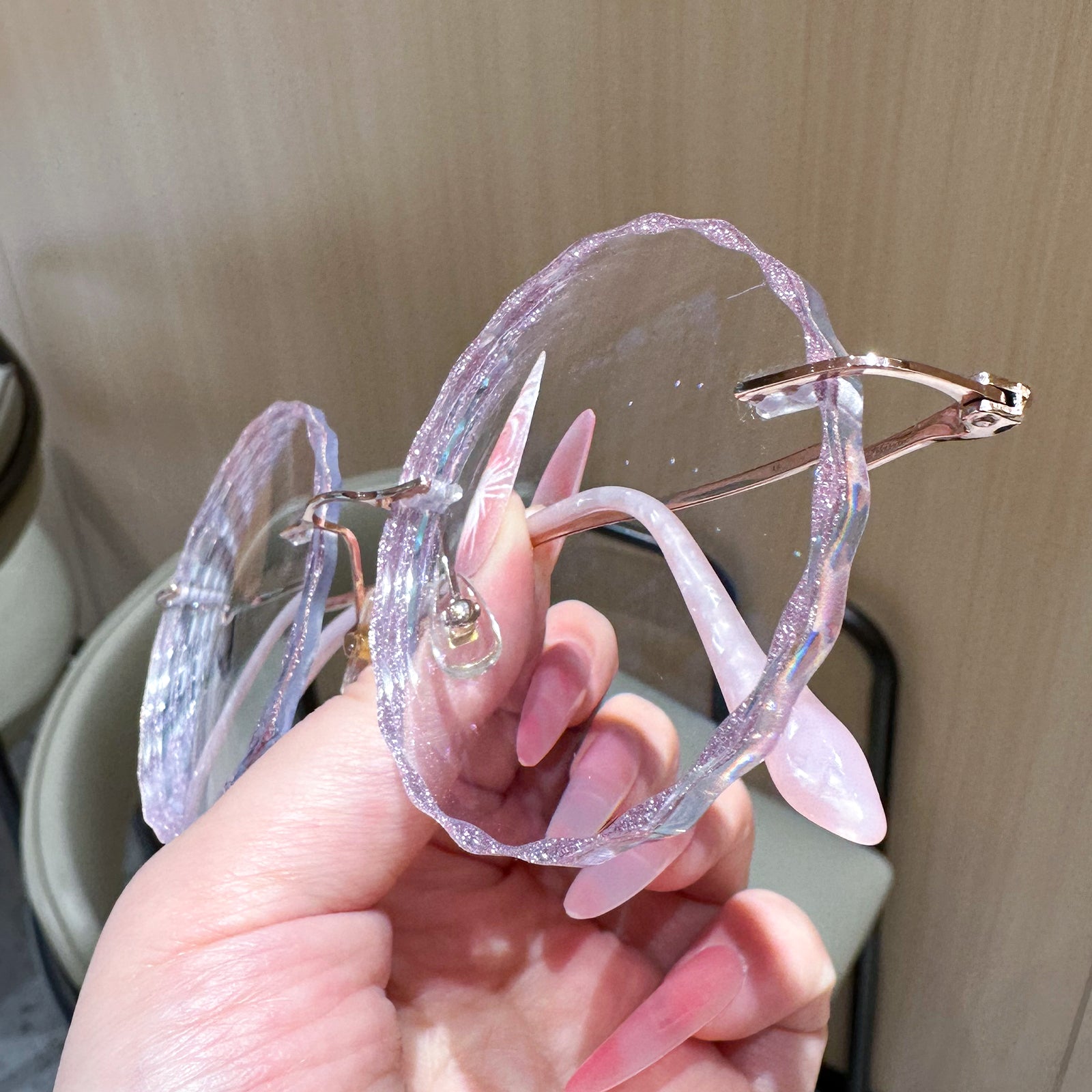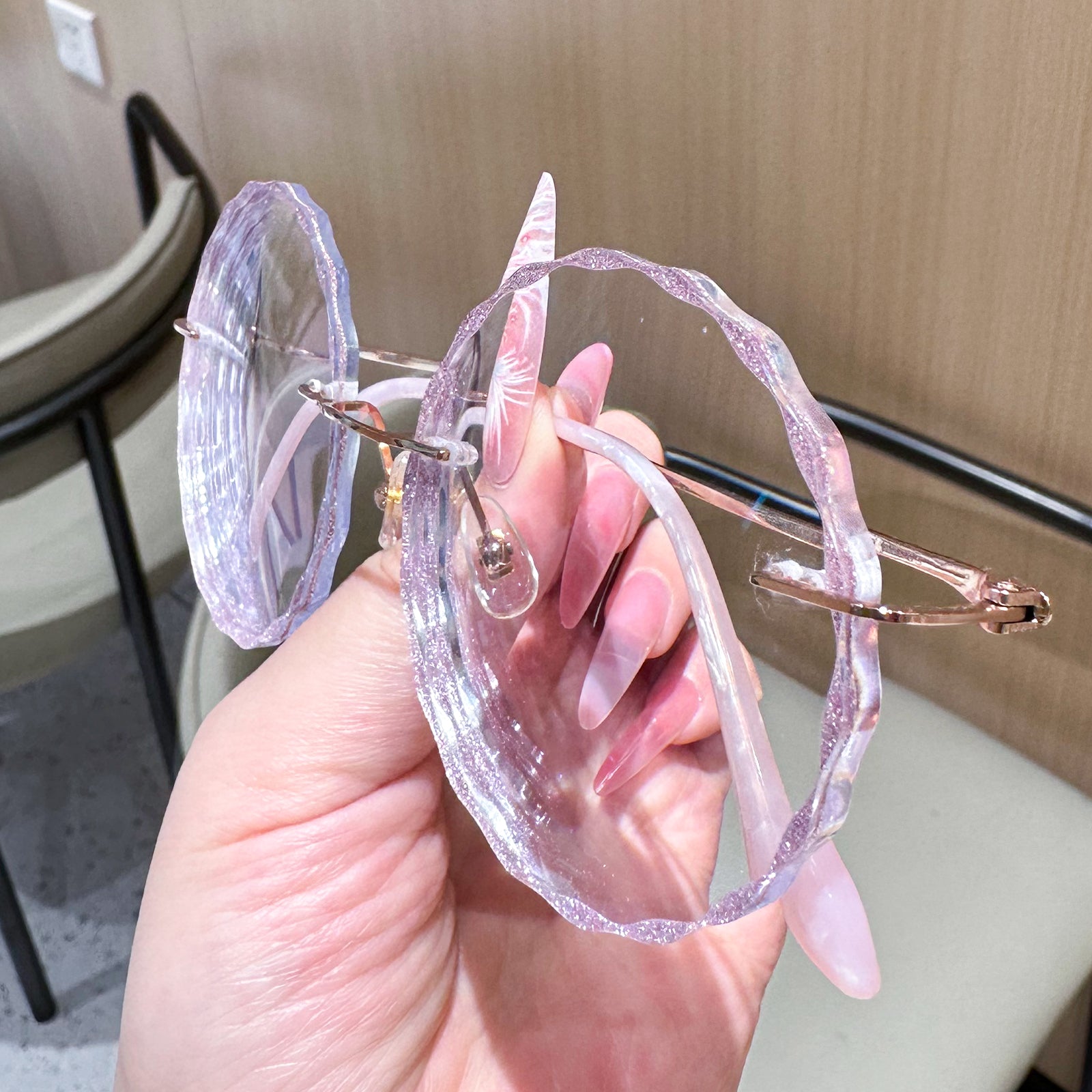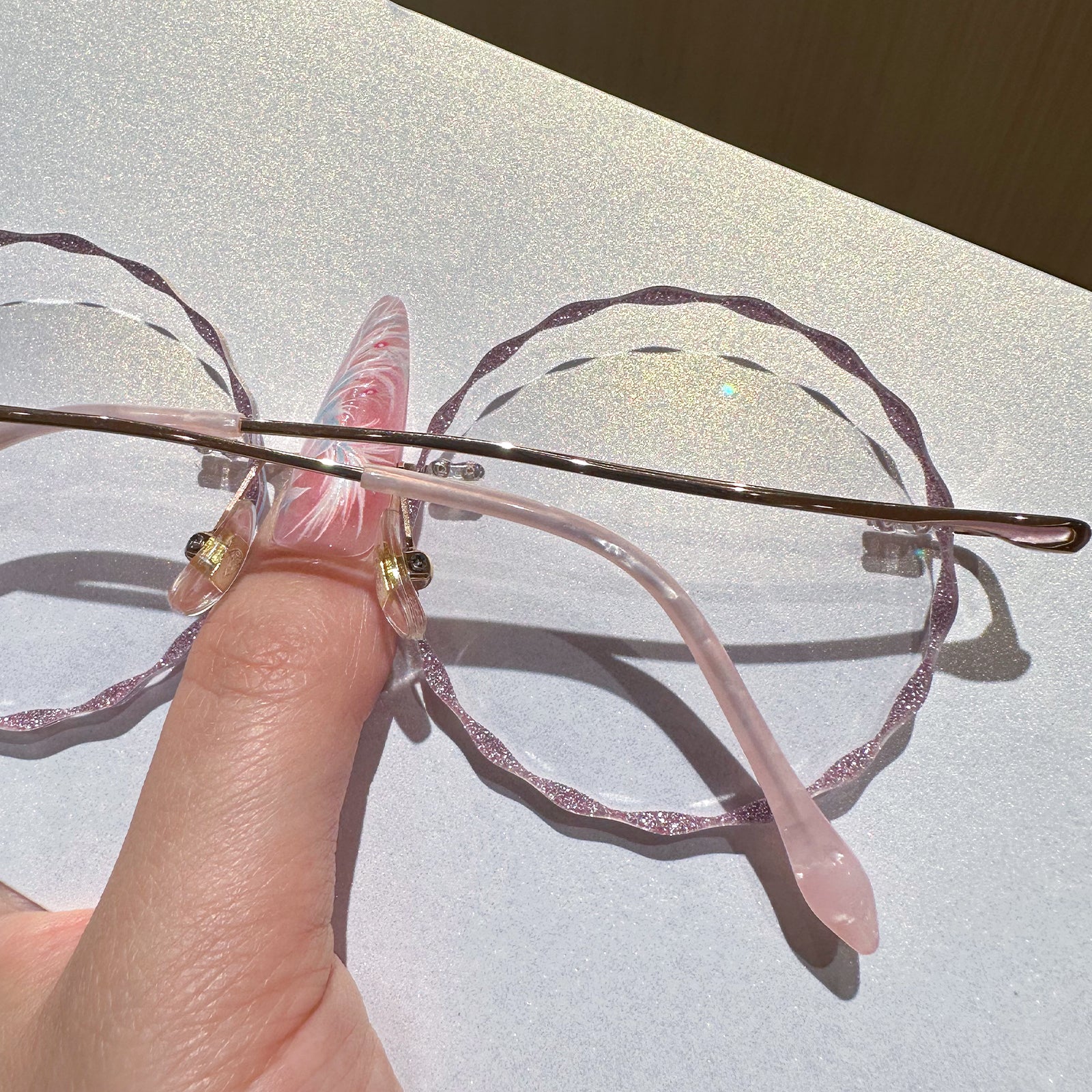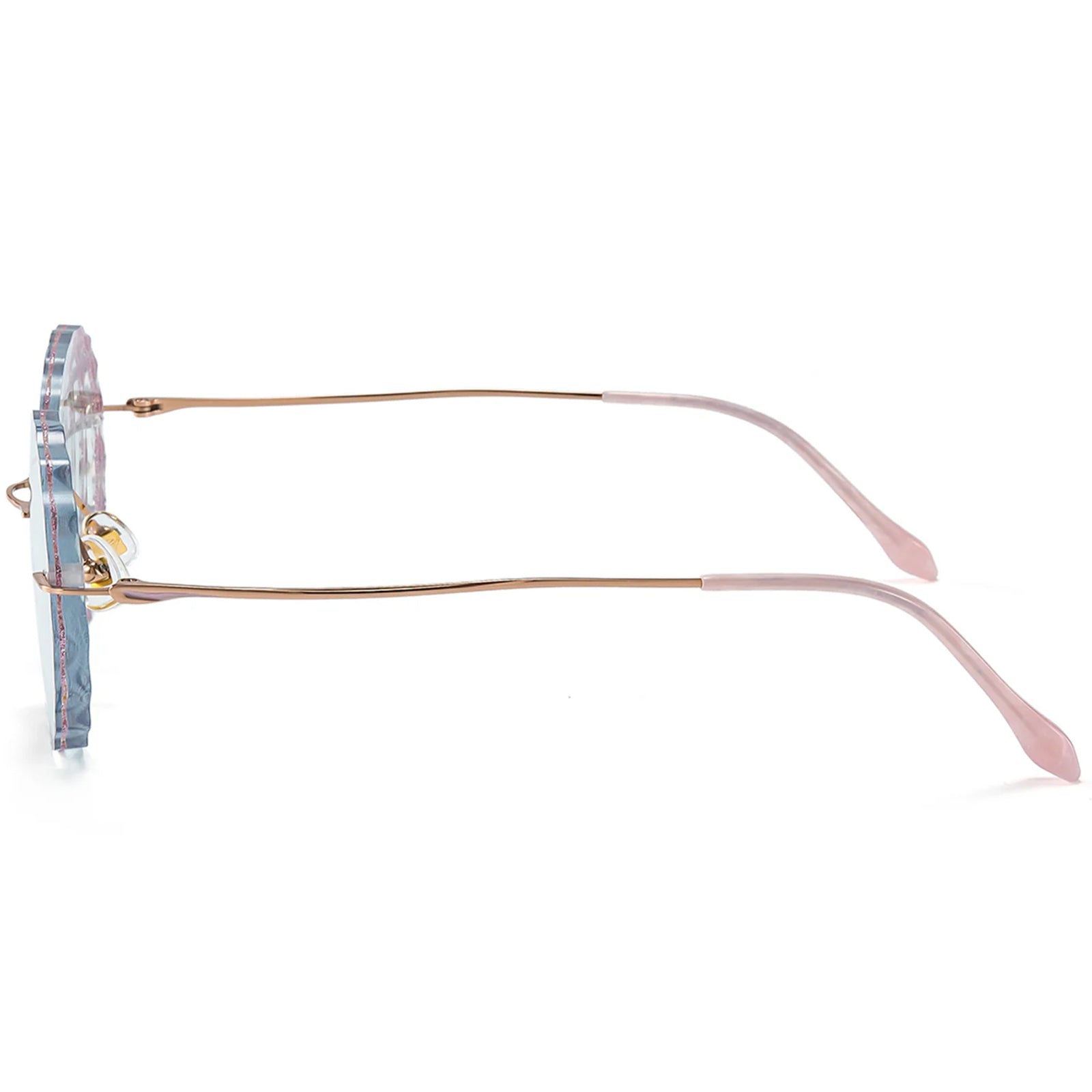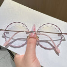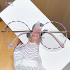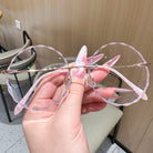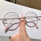 Diese rundlosen runden Brillen verfügen über einen zarten rosa Metallrahmen und charmante spitzenförmige Linsen, die sich perfekt für junge Frauen eignen, die es lieben, ihre spielerische und weibliche Seite auszudrücken. Leicht und stilvoll und Nora verleiht jedem Outfit eine einzigartige Note, die Sie mühelos hervorhebt.