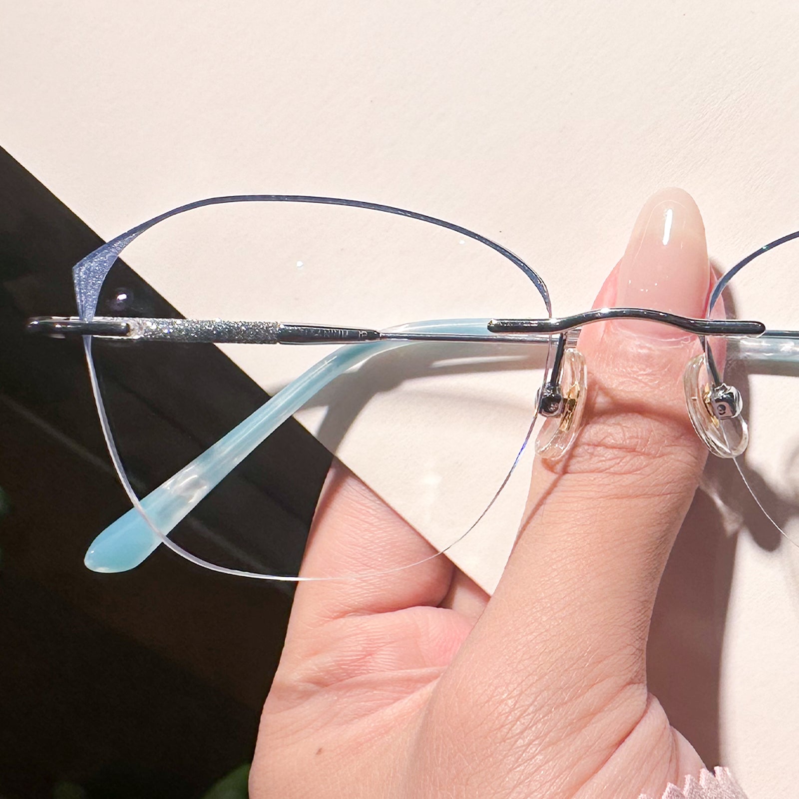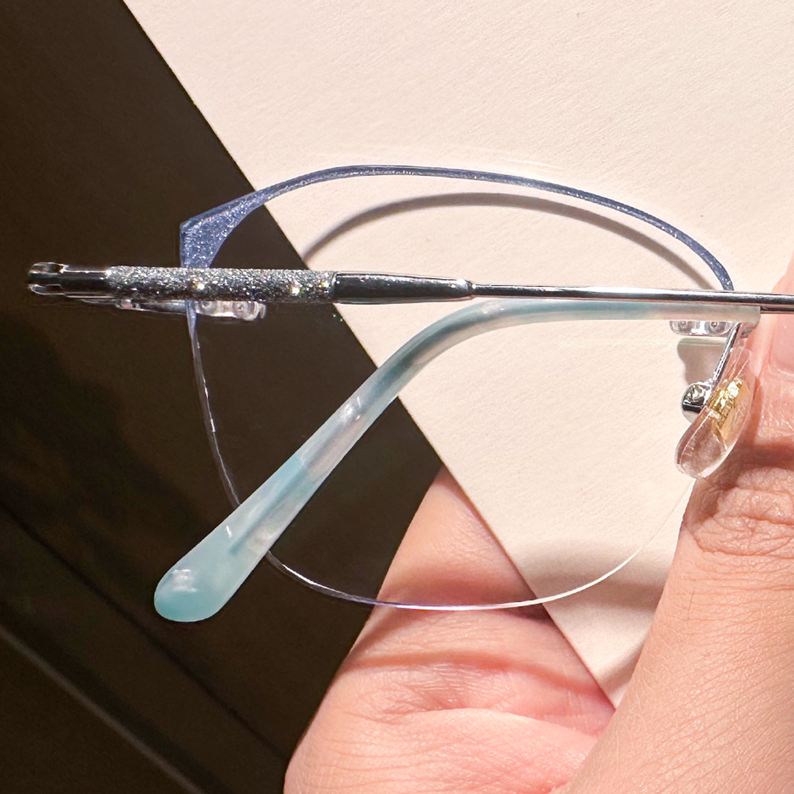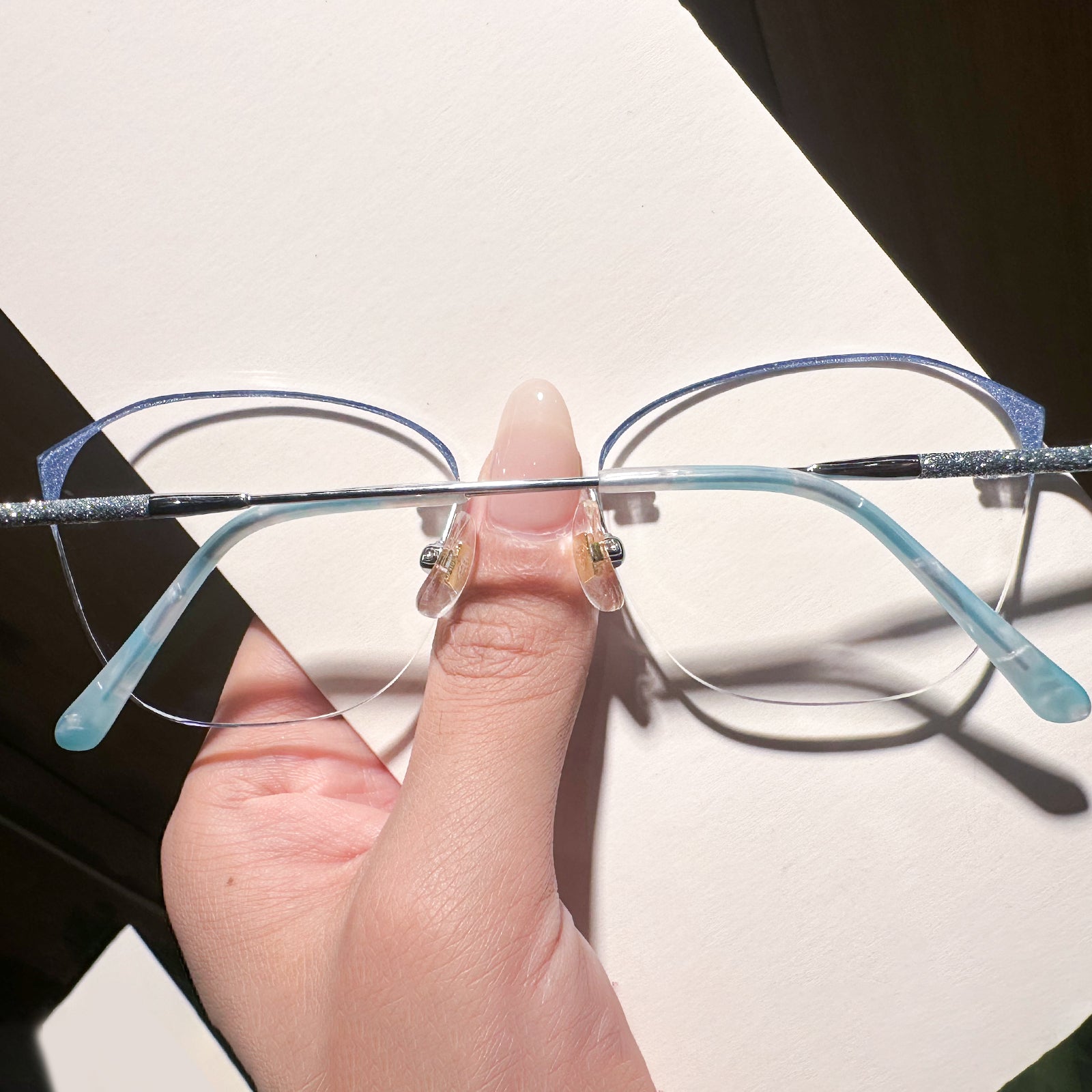 Lebendige blaue Brillen, in denen die Tempel mit schillernden Glitzer geschmückt sind, um einen zusätzlichen Hauch von Funkeln zu erhalten. Diese Frames perfekt kombinieren trendy Stil mit jugendlicher Energie und sind so konzipiert, dass Sie zum Leuchten und mühelos abheben. Erhöhen Sie Ihren Look mit diesen auffälligen und modischen Brillen.