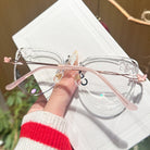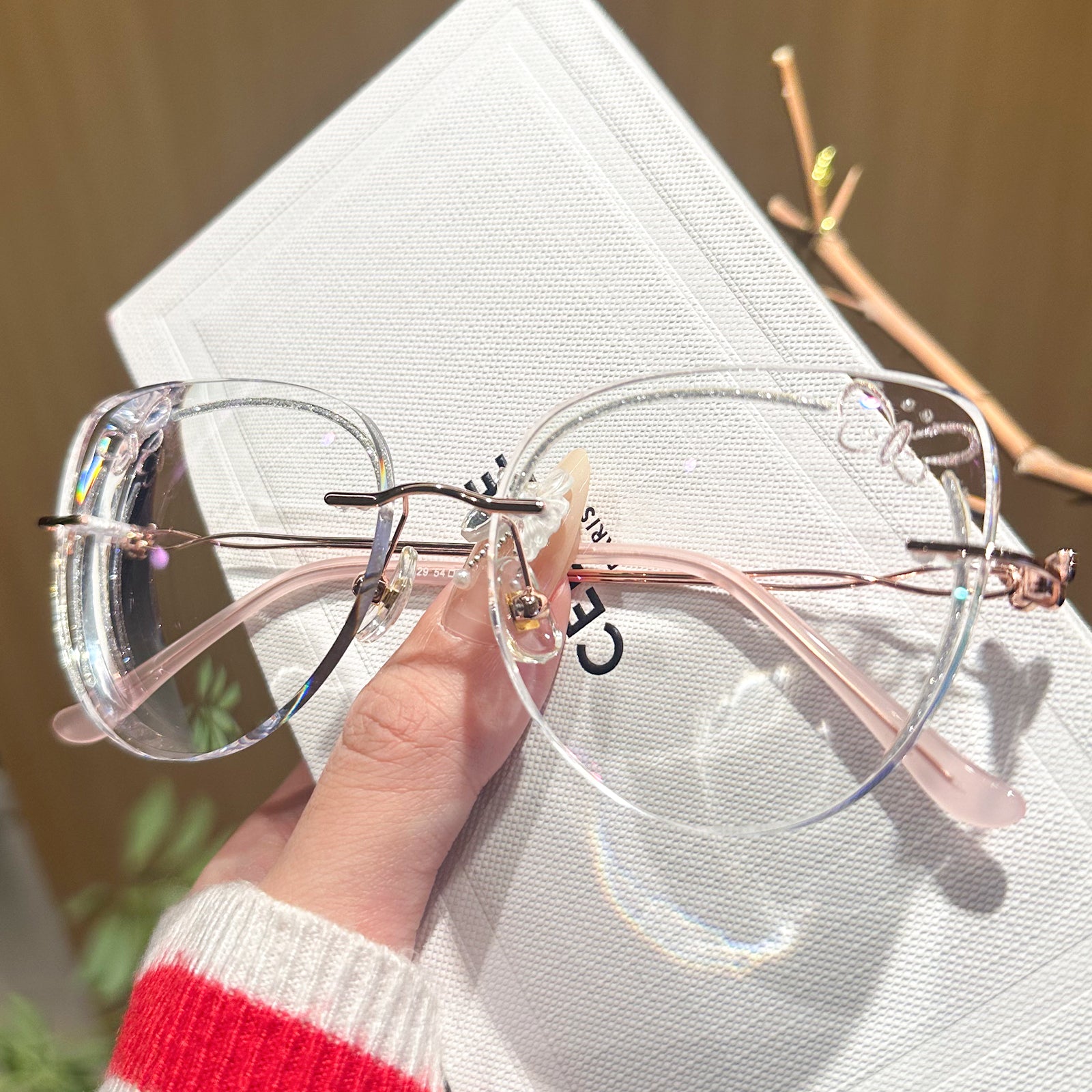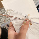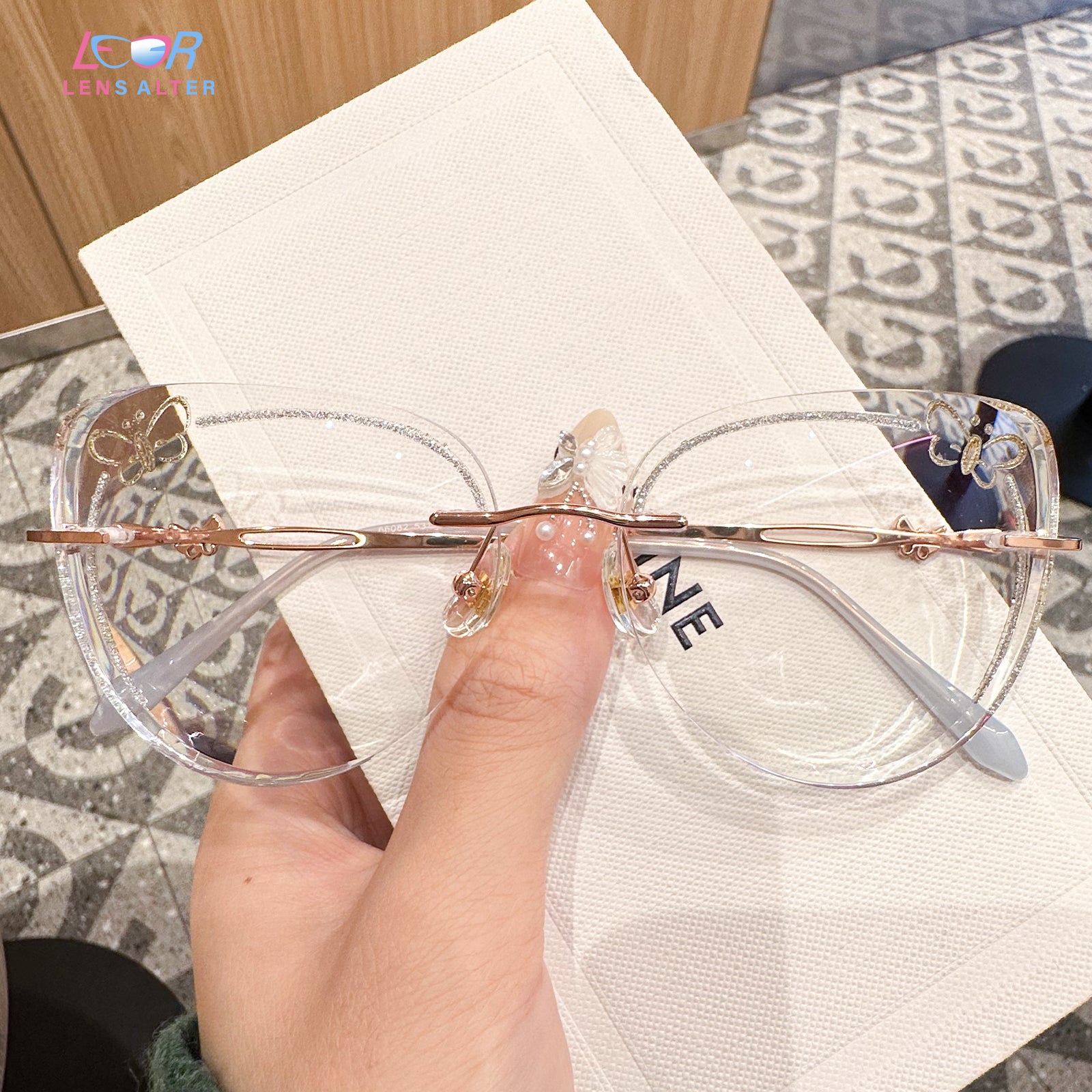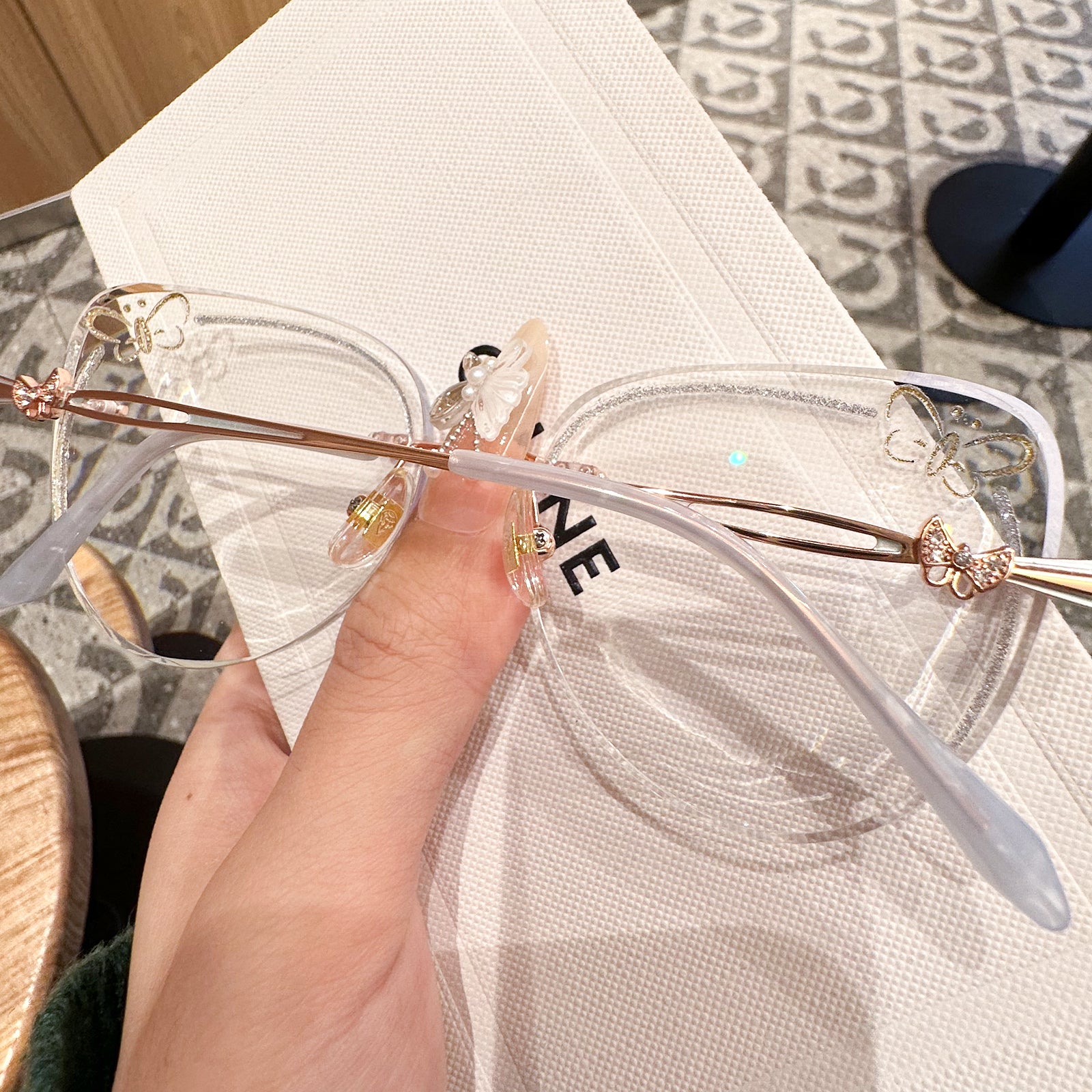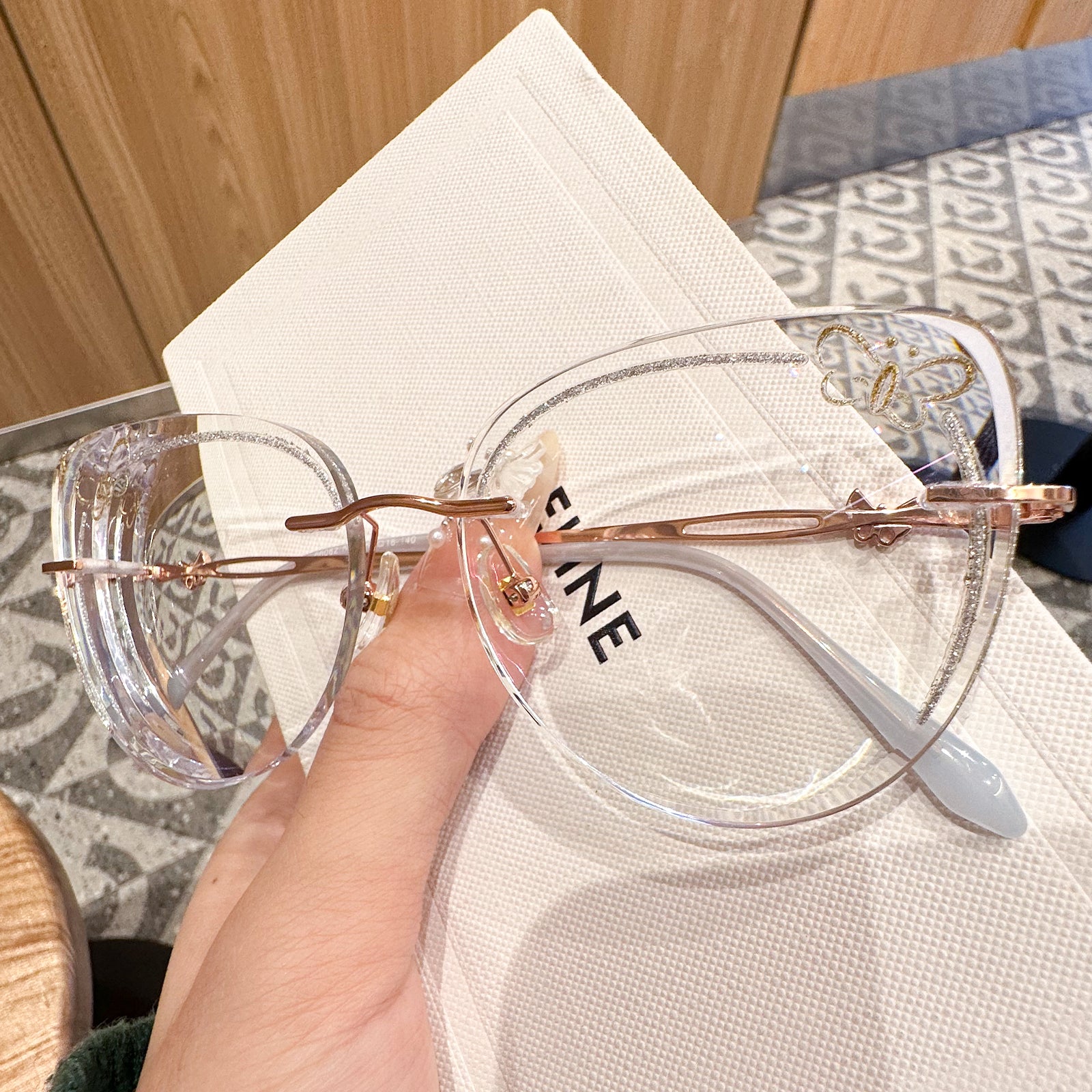 Dazzling butterfly rimless glasses feature butterfly motifs on both the lenses and temples, and are adorned with shimmering glitter details on the lenses, this design brings a touch of whimsy and elegance to your look. Perfect for making a bold and stylish statement.