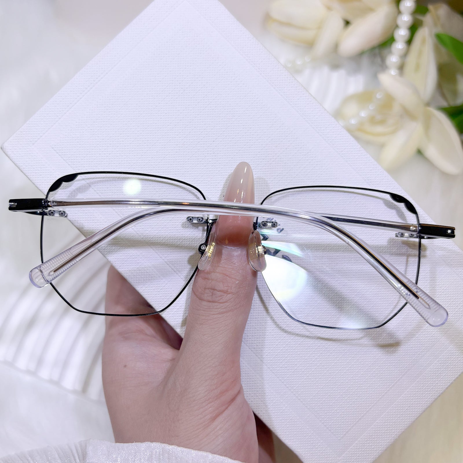 | Exclusive Design | These black rimless glasses feature sleek black line accents on the lenses, adding a subtle touch of edge. The translucent black temples are ultra-lightweight, offering both comfort and modern minimalist style.