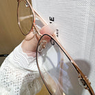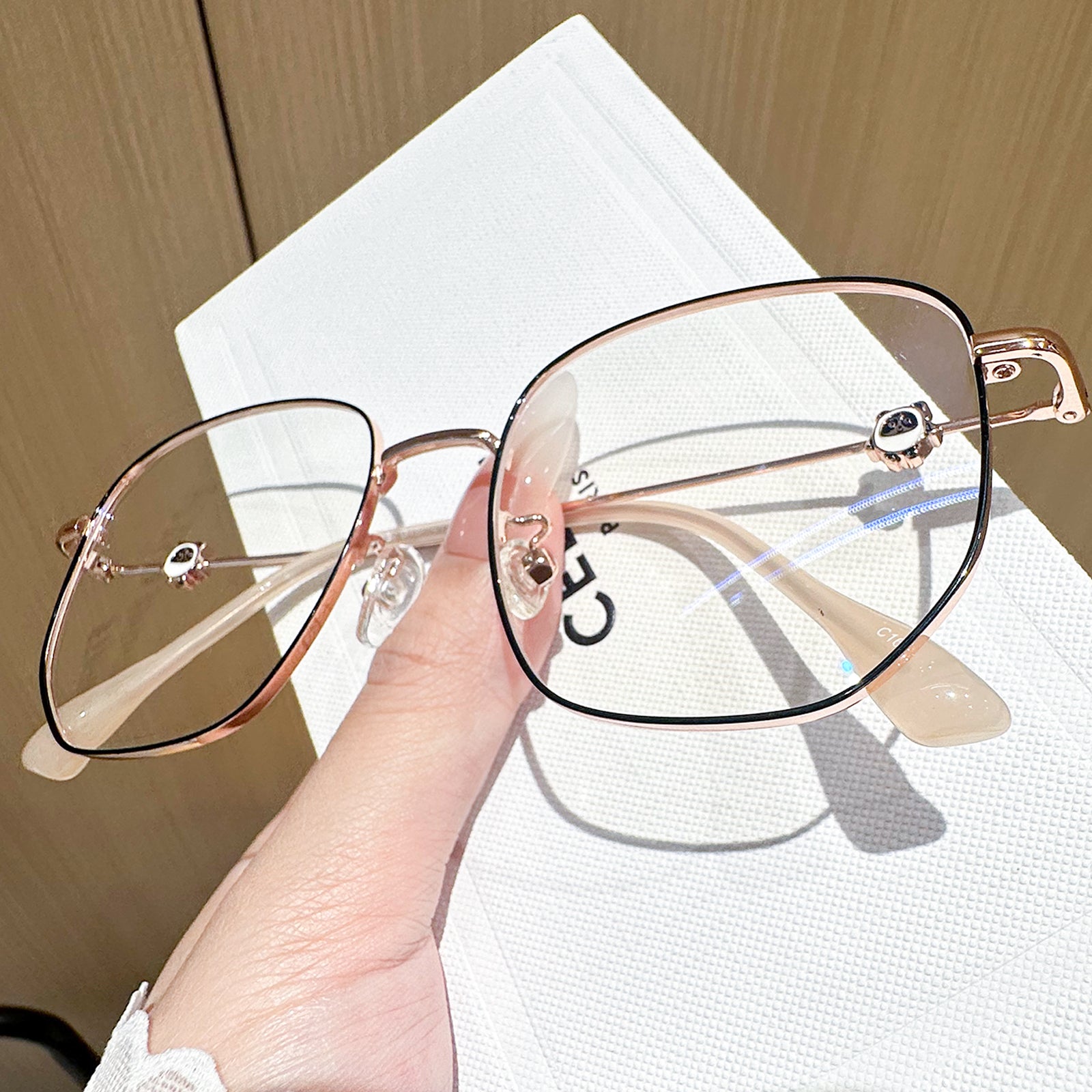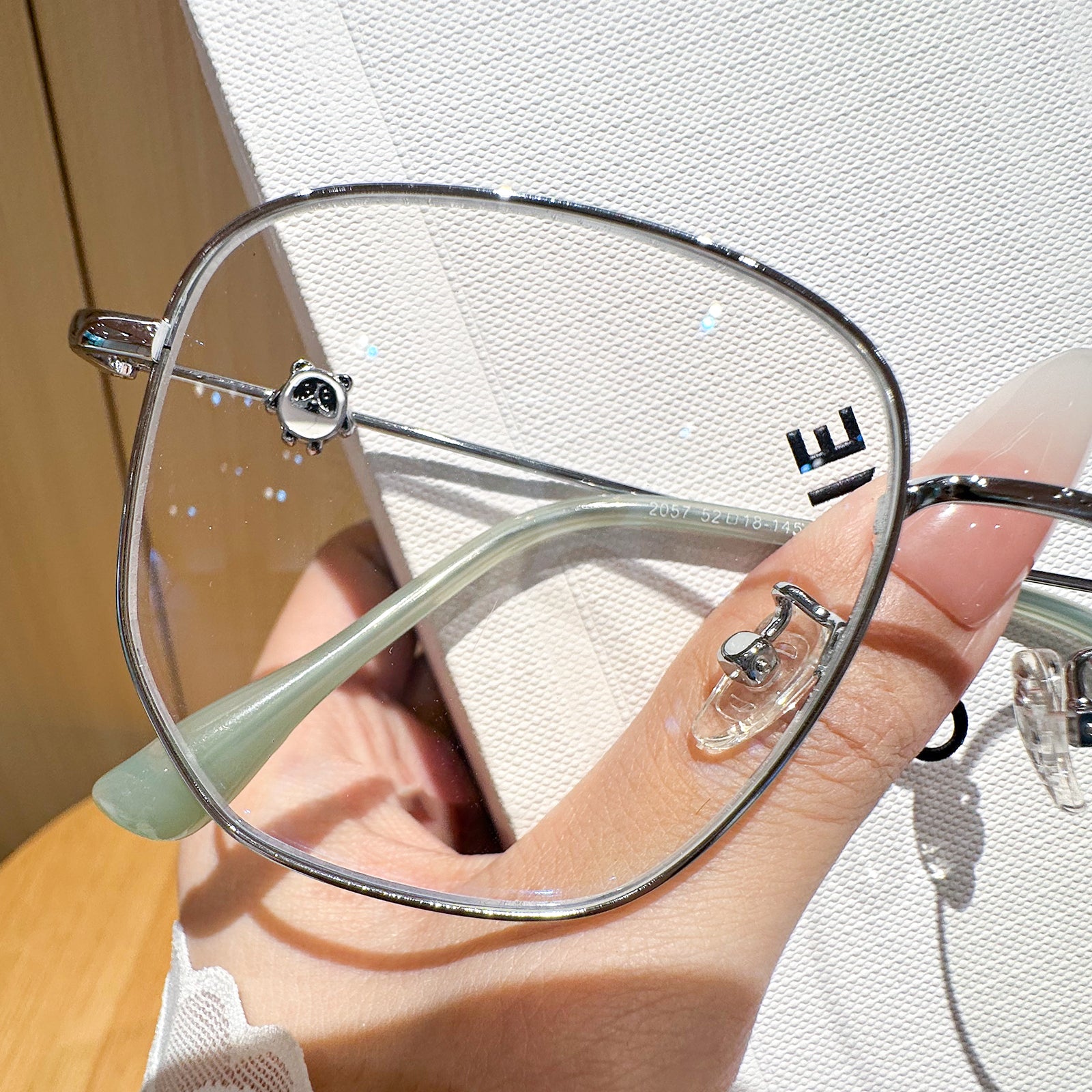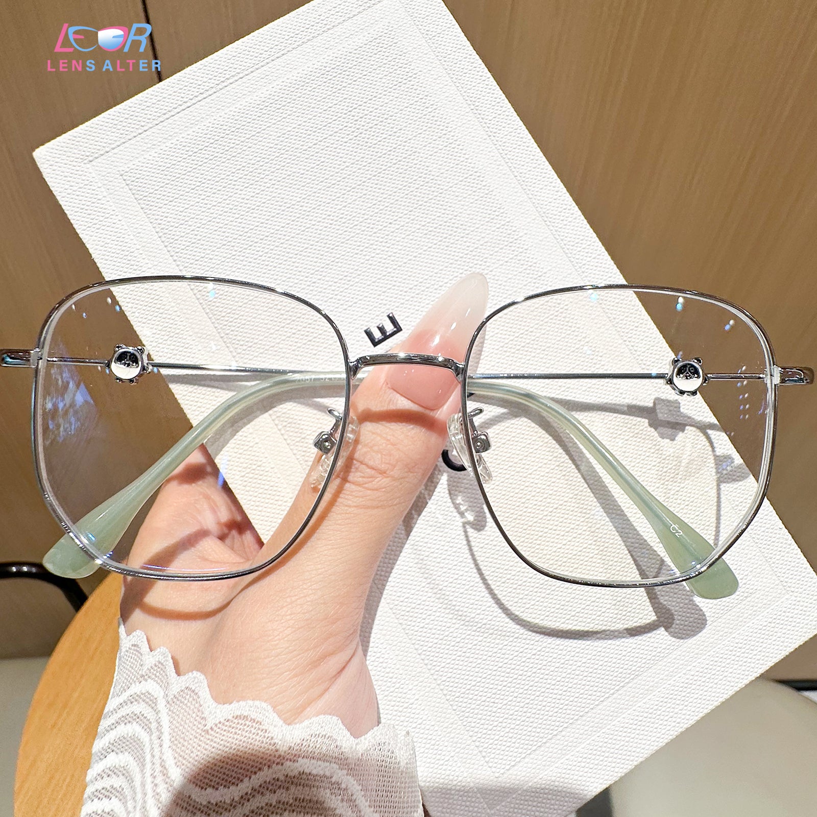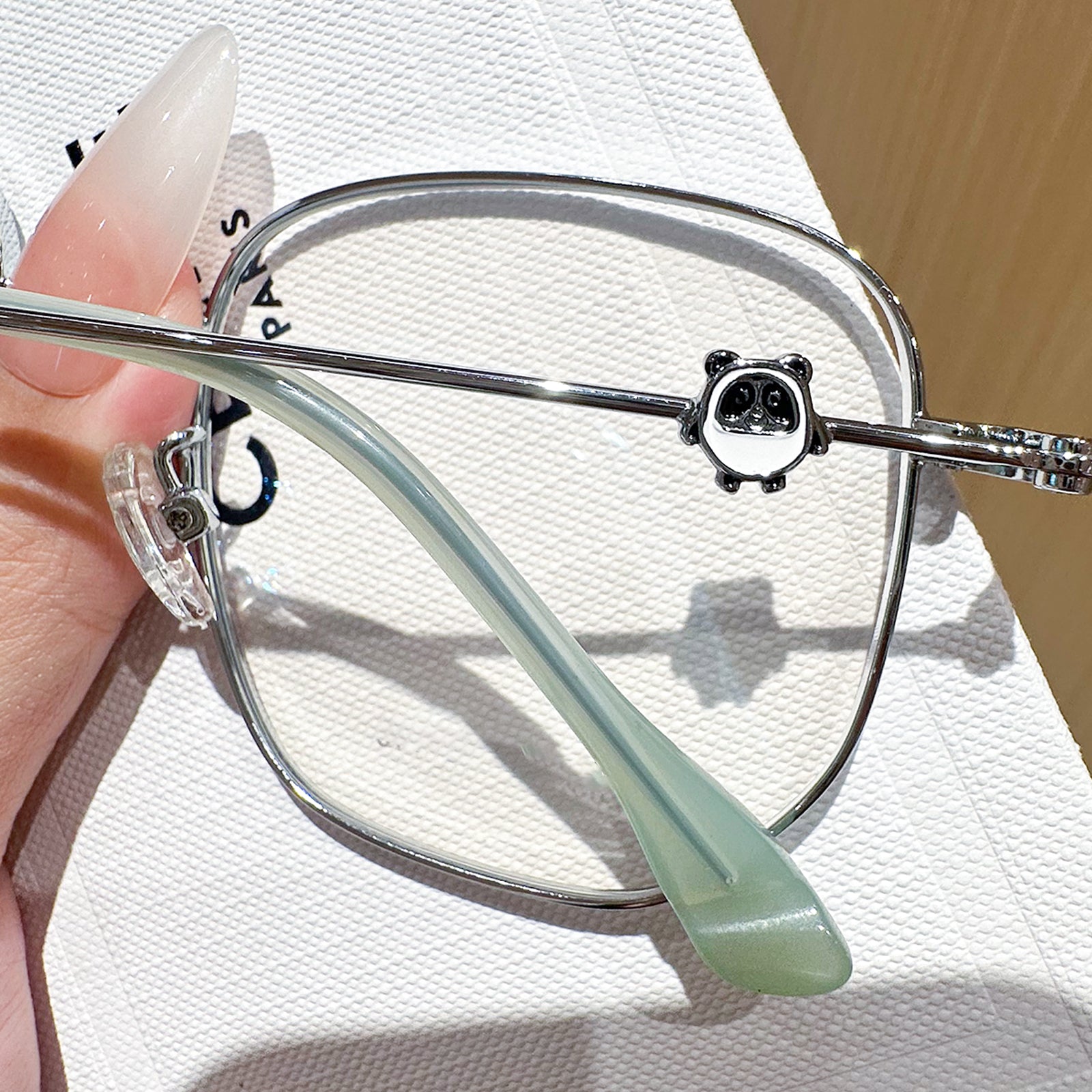 Agregue un toque lúdico a su estilo con estas gafas de metal cuadradas, con deliciosas decoraciones de panda en las sienes. Combinando perfectamente la diversión y la sofisticación, estas gafas son un accesorio único que muestra su amor por la fantasía mientras mantiene un aspecto elegante.
