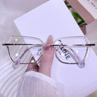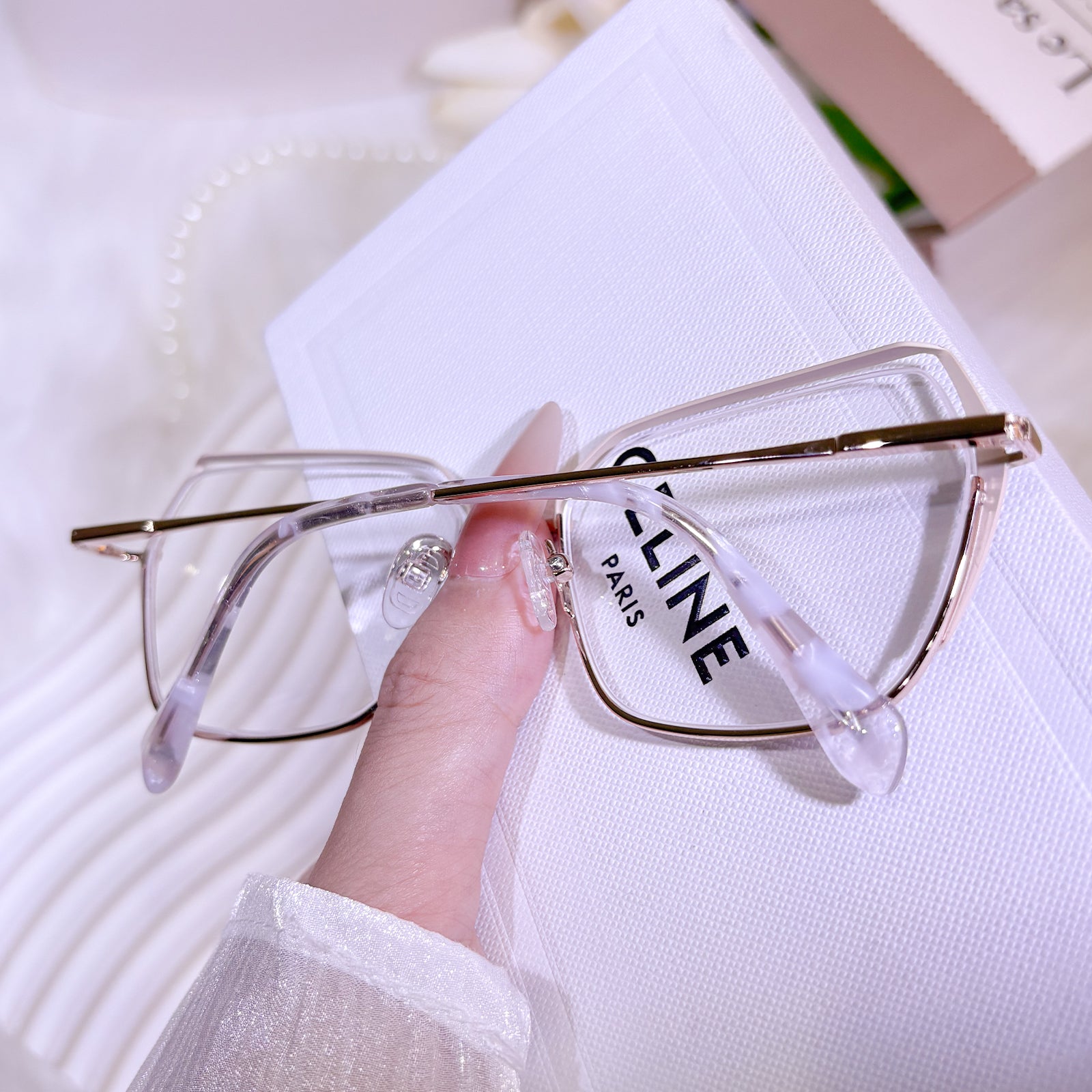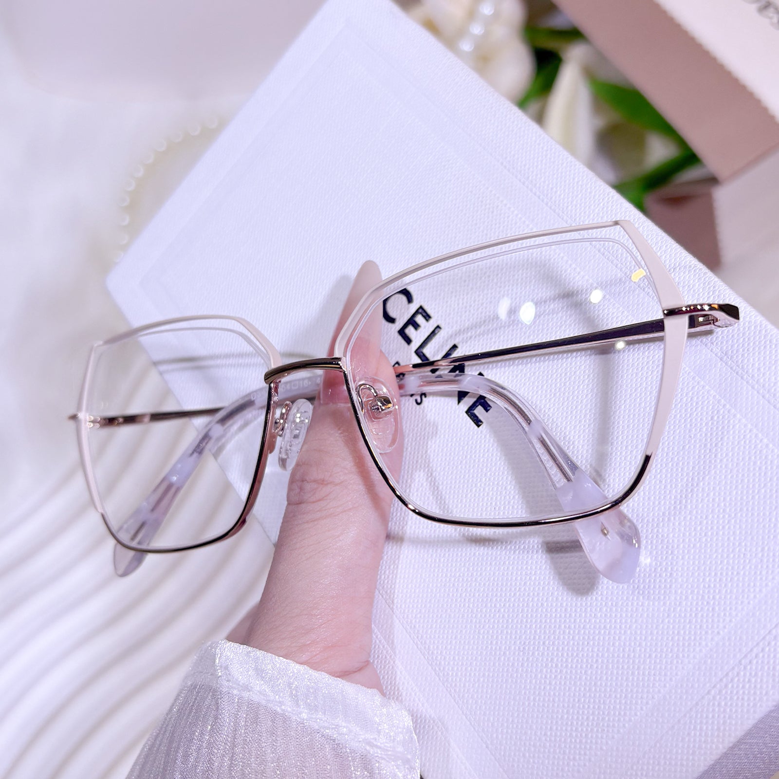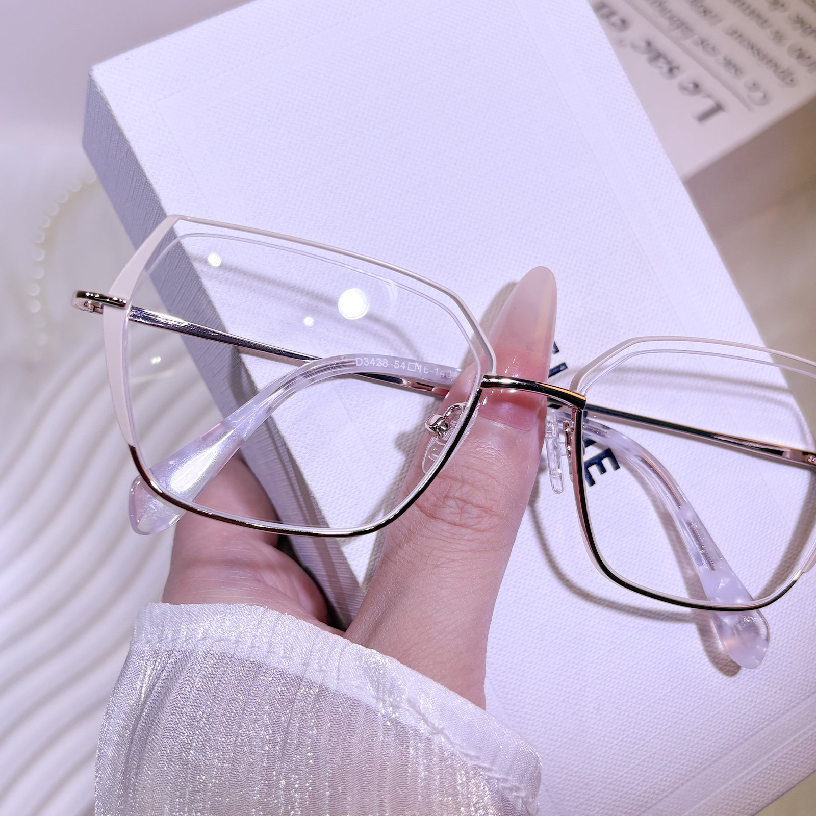 These beige geometric metal frame glasses blend minimalist design with refined elegance. The temples are smooth and luxurious, adding a subtle yet glamorous flair. Perfect for women who seek sophistication with a contemporary edge.