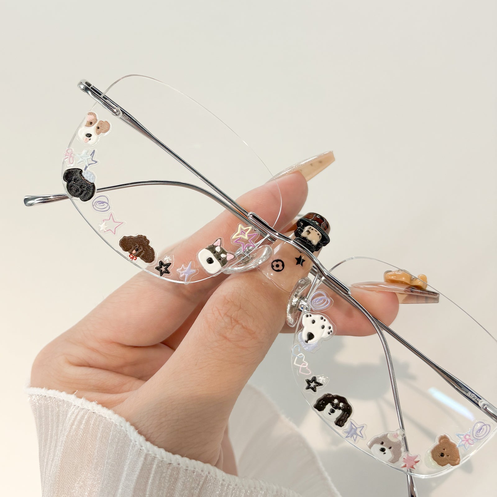 [Note: You need to DIY the stickers on the glasses yourself. The glasses shown in the pictures are just for demonstration—you won’t receive exactly the same design! ] Step into effortless sophistication with our rimless women’s glasses. Designed with ultra-lightweight temples, these glasses offer a sleek and minimalist look that's perfect for both business and everyday wear. Combining elegance with practicality, they provide a modern, professional touch to any outfit.