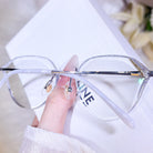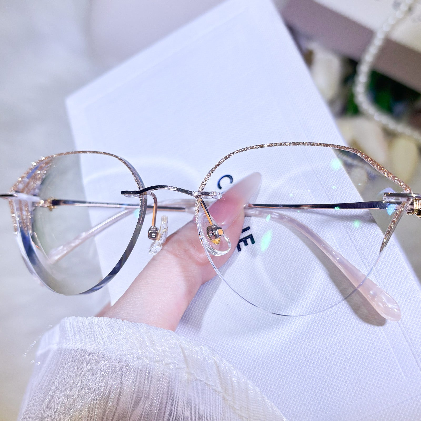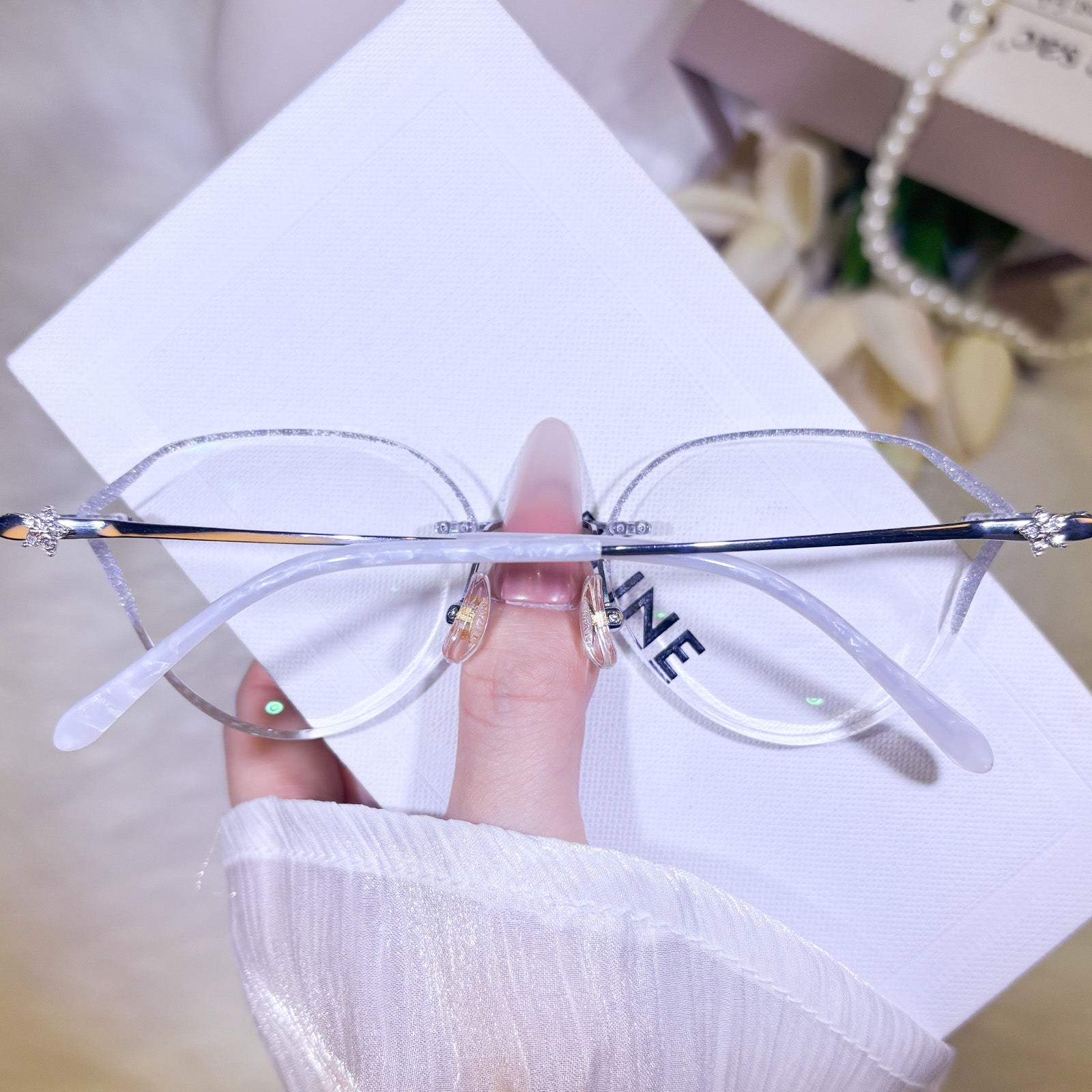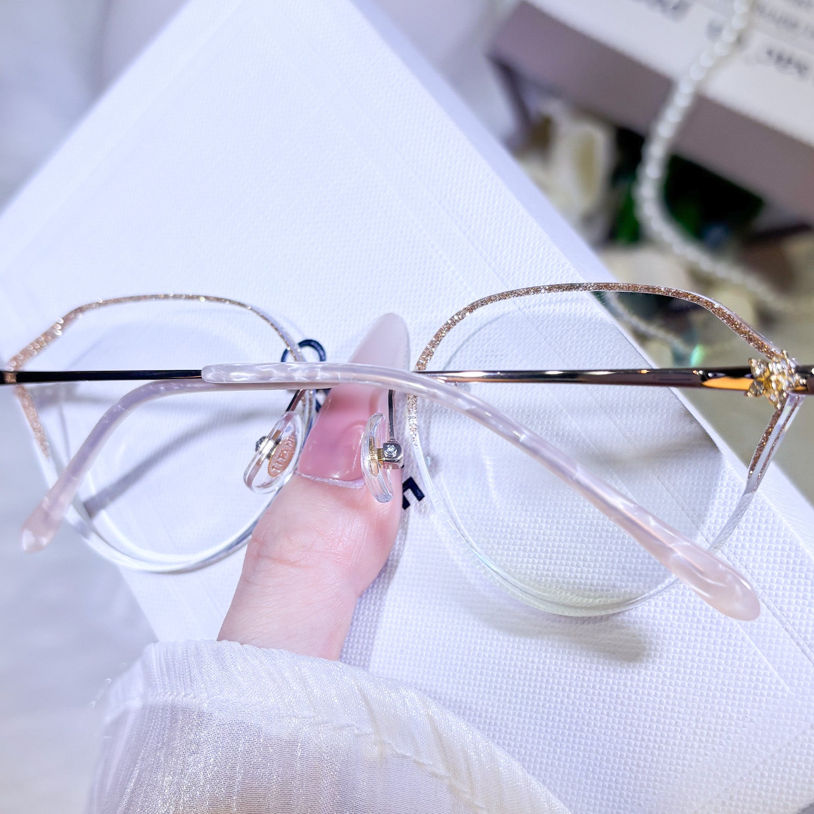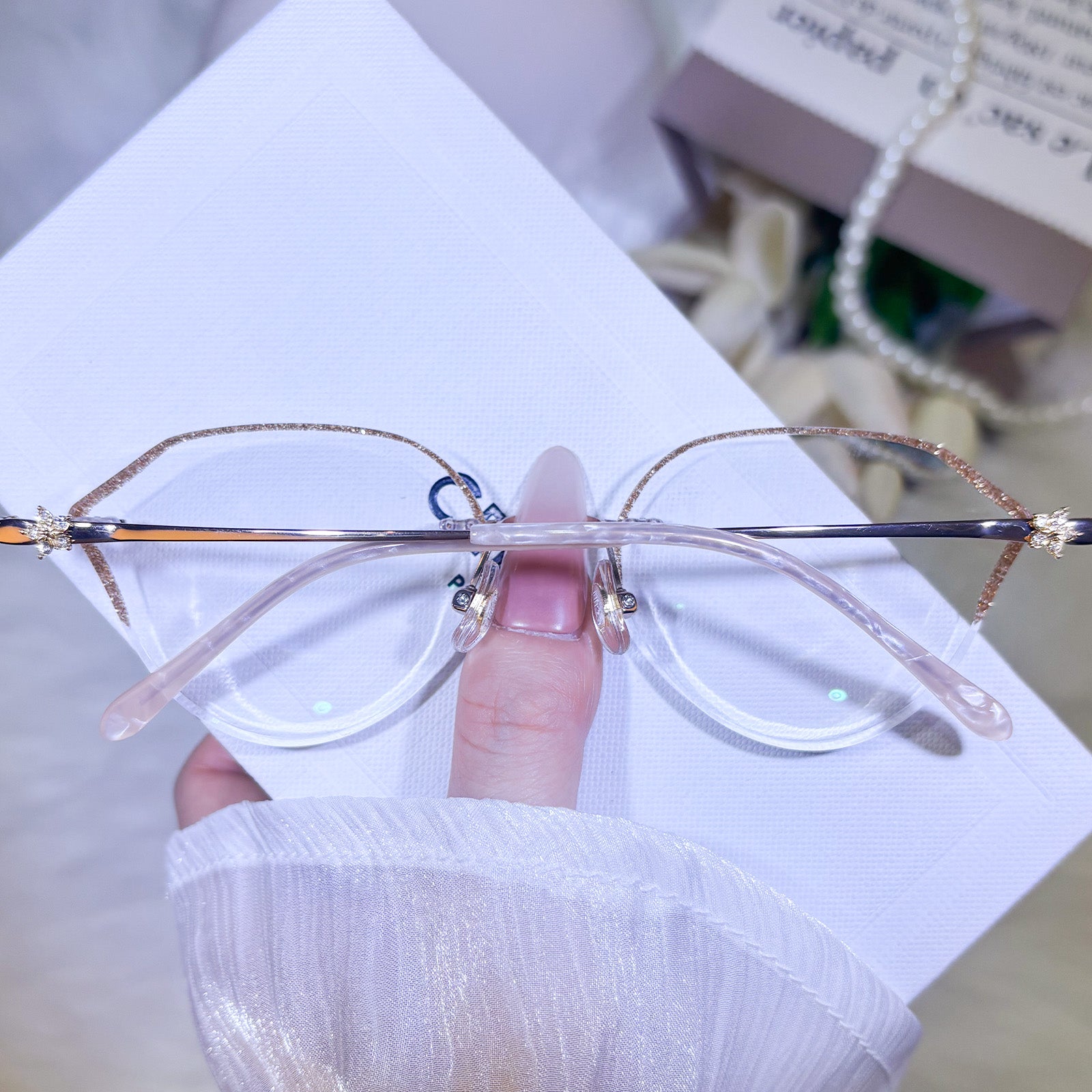| Exlusive Design | Playful and charming, this women’s rimless eyewear is designed to brighten up any look. Subtle glitter accents shimmer across the lenses, while the delicately decorated temples add an extra touch of elegance. Cute yet refined, it’s the perfect blend of fun and sophistication.