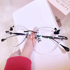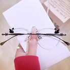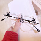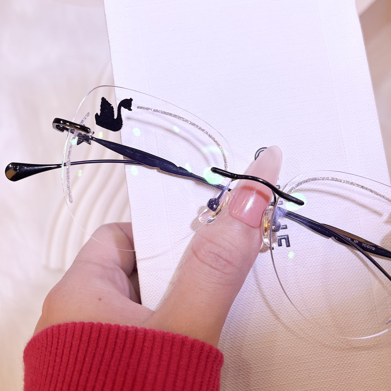 | Exclusive Design | Crafted from featherlight titanium, these rimless glasses for women blend architectural precision with delicate charm. Available in classic black, romantic rose-pink, and soft blush, each frame features a graceful swan motif elegantly engraved at the temple tips—symbolizing grace and strength. A seamless fusion of modern design and poetic subtlety for the discerning contemporary woman.