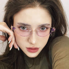 | Exclusive Design | A vision of delicate mystery, these purple metal glasses frame the world with ethereal charm. The witch-eye details at the lens corners seem to hold secrets of moonlit realms, while the lightweight frameless construction ensures effortless grace. For the modern enchantress who believes elegance is its own kind of spell.