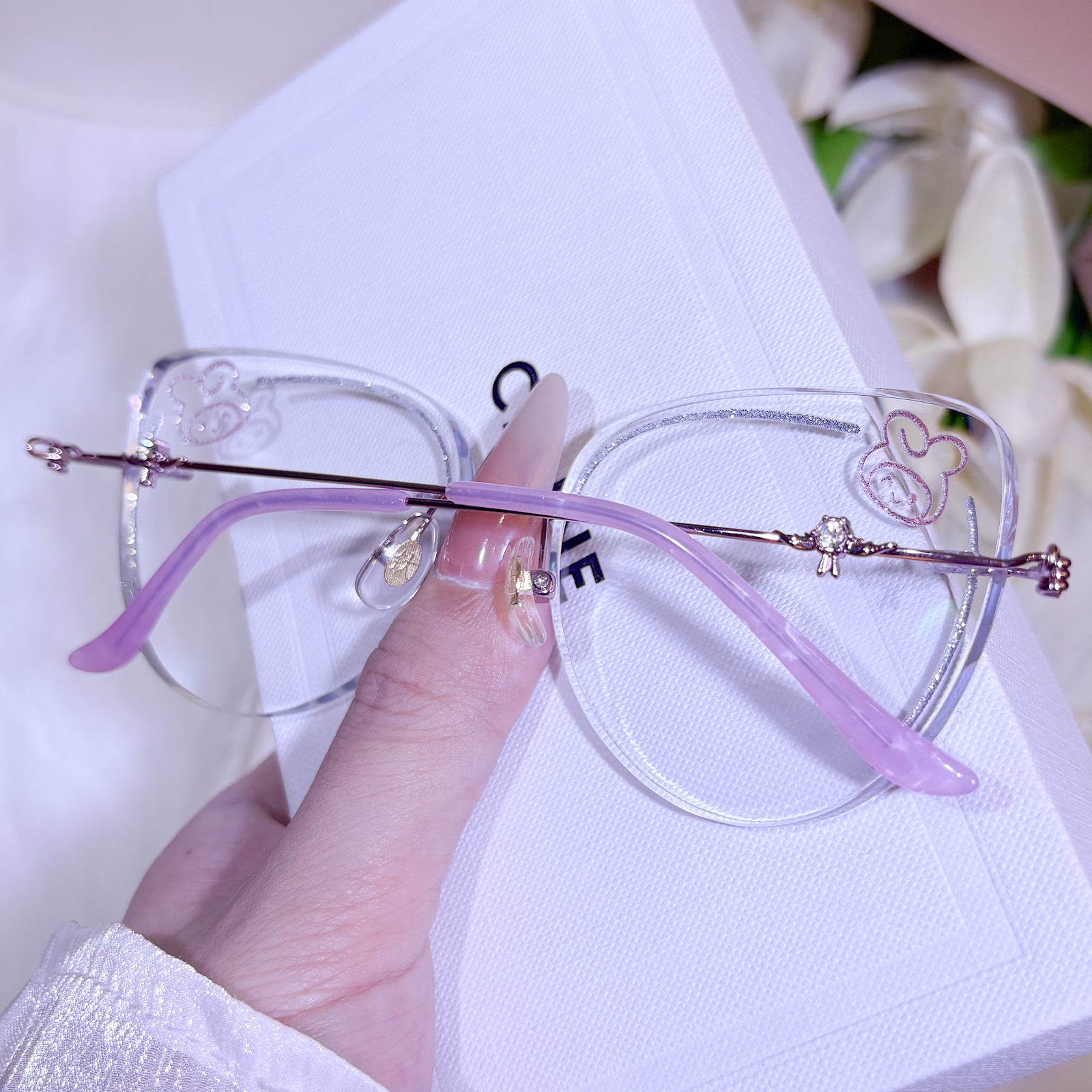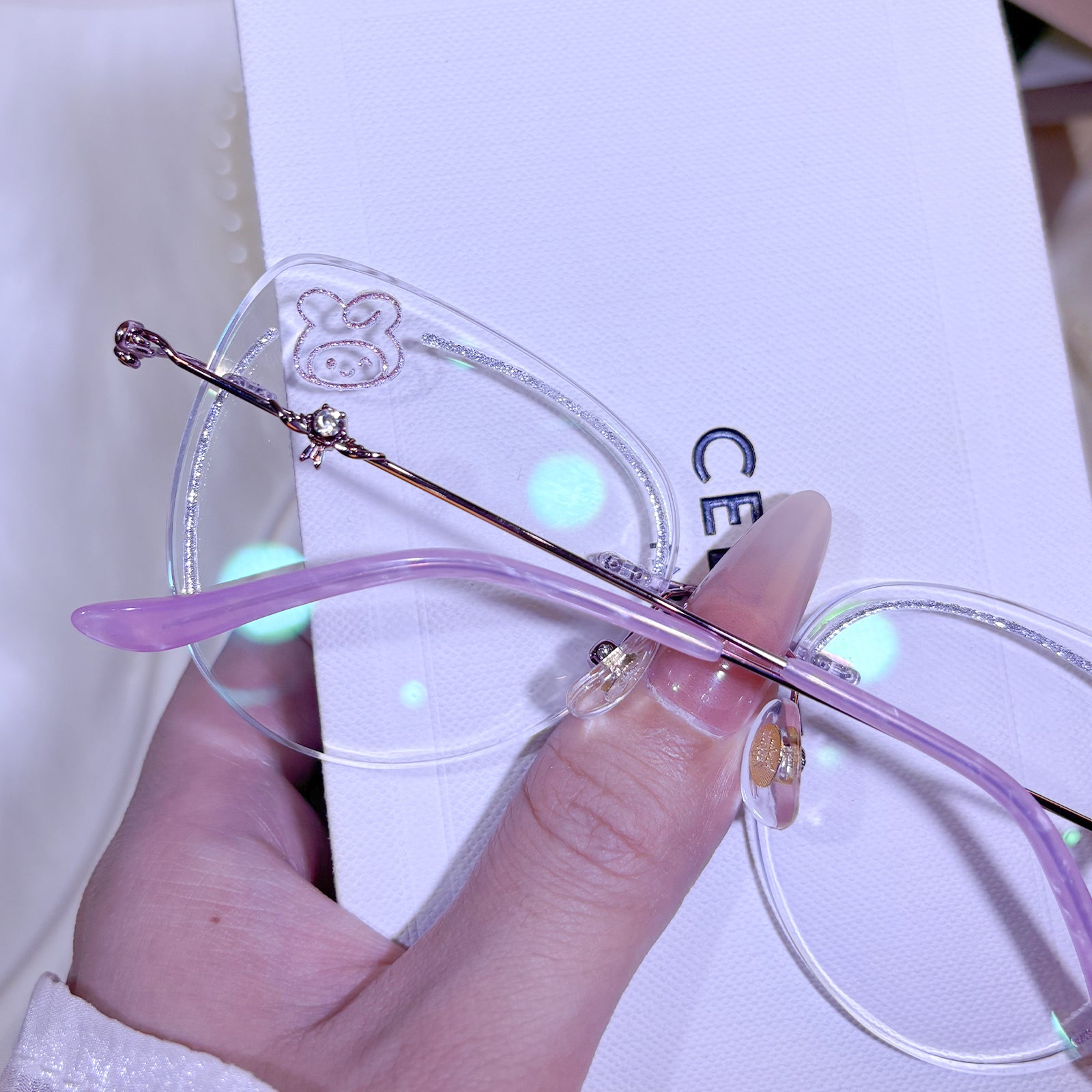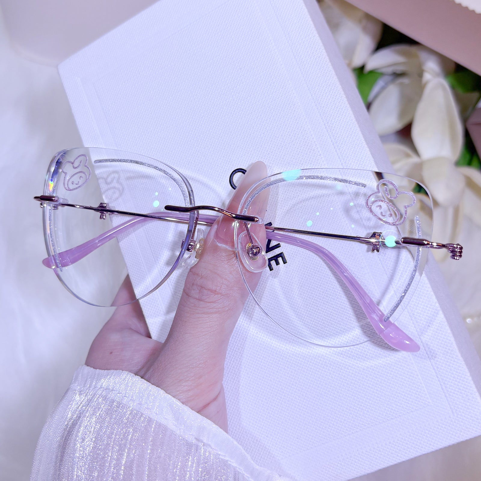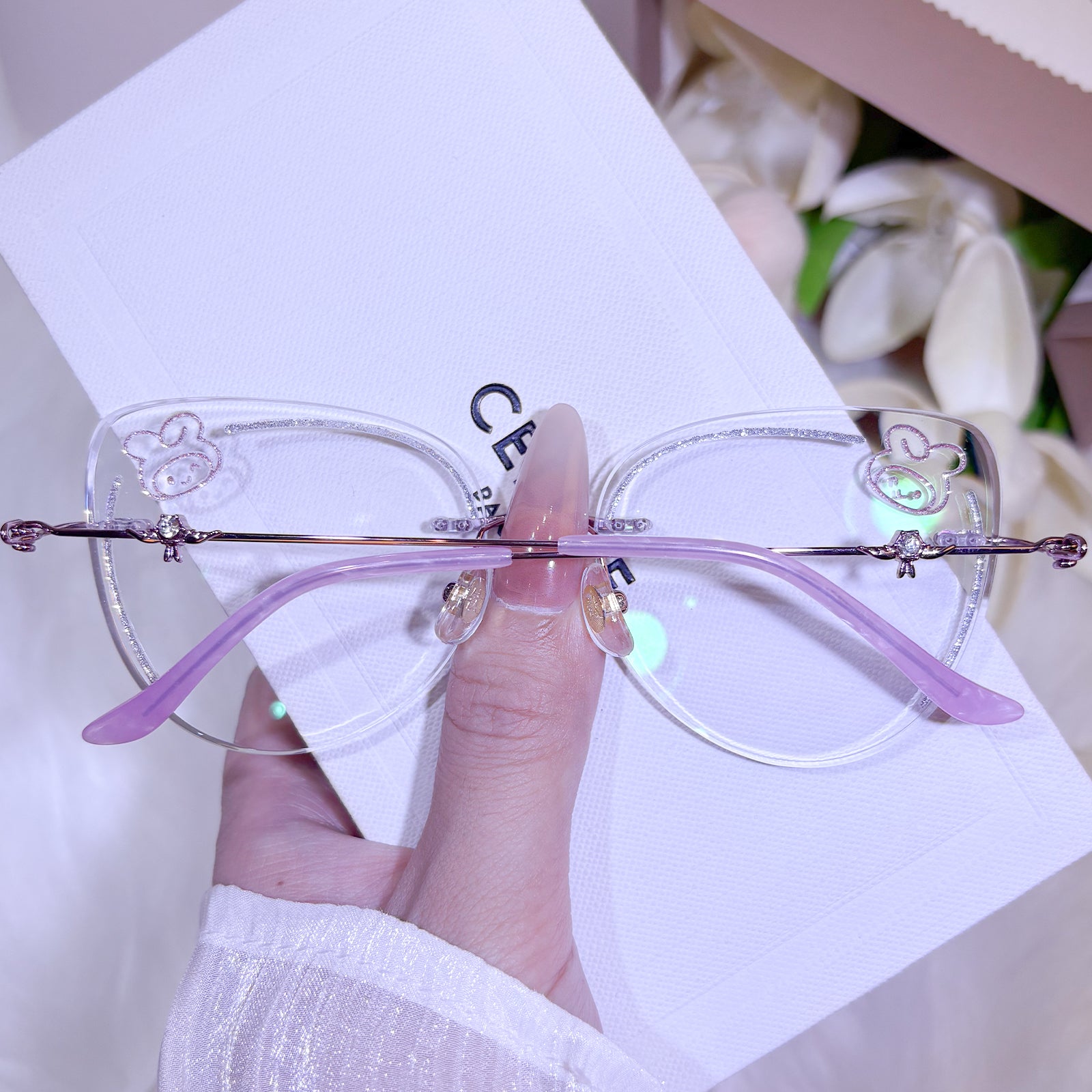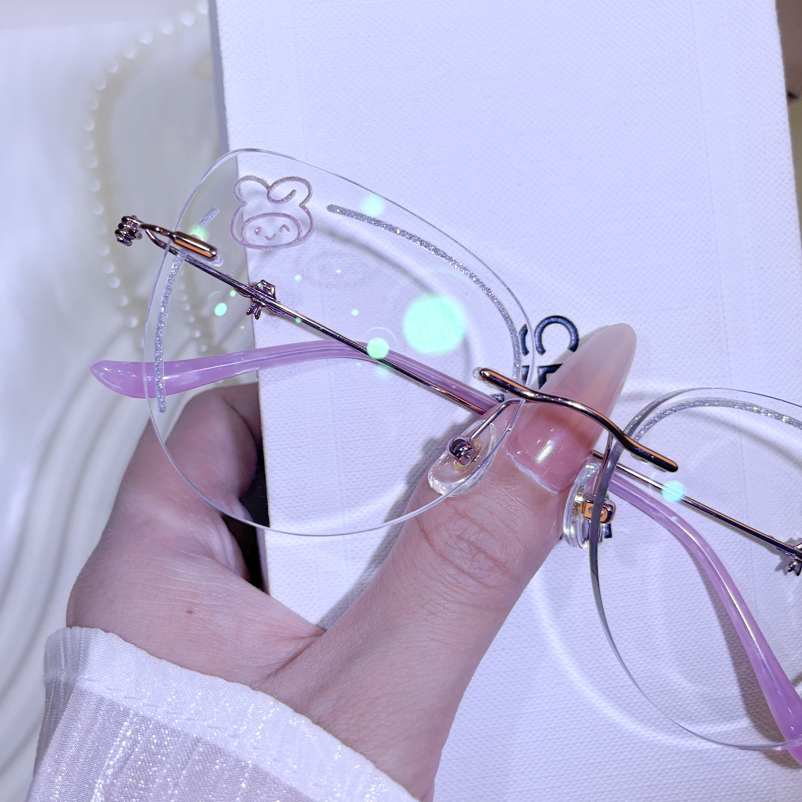 | Exclusive Design | Meet the cutest purple bunny rimless glasses that instantly steal hearts. The lenses feature an adorable little bunny design, adding a playful and dreamy vibe. Paired with delicately crafted temples, this piece feels lightweight, refined, and full of personality. Perfect for anyone who loves something sweet, whimsical, and effortlessly charming.
