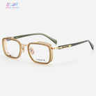 Ultra-Light Pure Titanium Eyeglass Frame for Women– This retro-inspired frame is crafted from high-quality pure titanium, offering a feather-light and durable wearing experience. The rectangle-shaped lenses are subtly accented with intricate decorative patterns along the edges, adding a refined vintage charm.