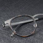 These titanium eyeglasses exude a sense of sophistication and modernity, with their sleek design and metallic sheen. The use of titanium not only ensures durability but also offers a lightweight feel, making them comfortable for all-day wear. The corrosion-resistant nature of titanium adds to the longevity of these glasses, ensuring they maintain their stylish appearance over time. Moreover, the elegant structure and the subtle contrast between the frame and the surface they rest upon highlight the meticulous craftsmanship that went into creating these eyeglasses. Truly, they are a perfect blend of functionality and fashion.