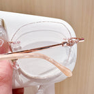 Des lunettes exquises avec des jambes avec un fard à joues délicat semblable à des cristaux roses, révélant subtilement un éclat de platine. Alors que les notes harmonieuses dansent autour de vos oreilles, votre regard est captivé sans effort par les diamants ornant les jambes, créant une allure fascinante.