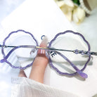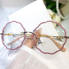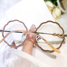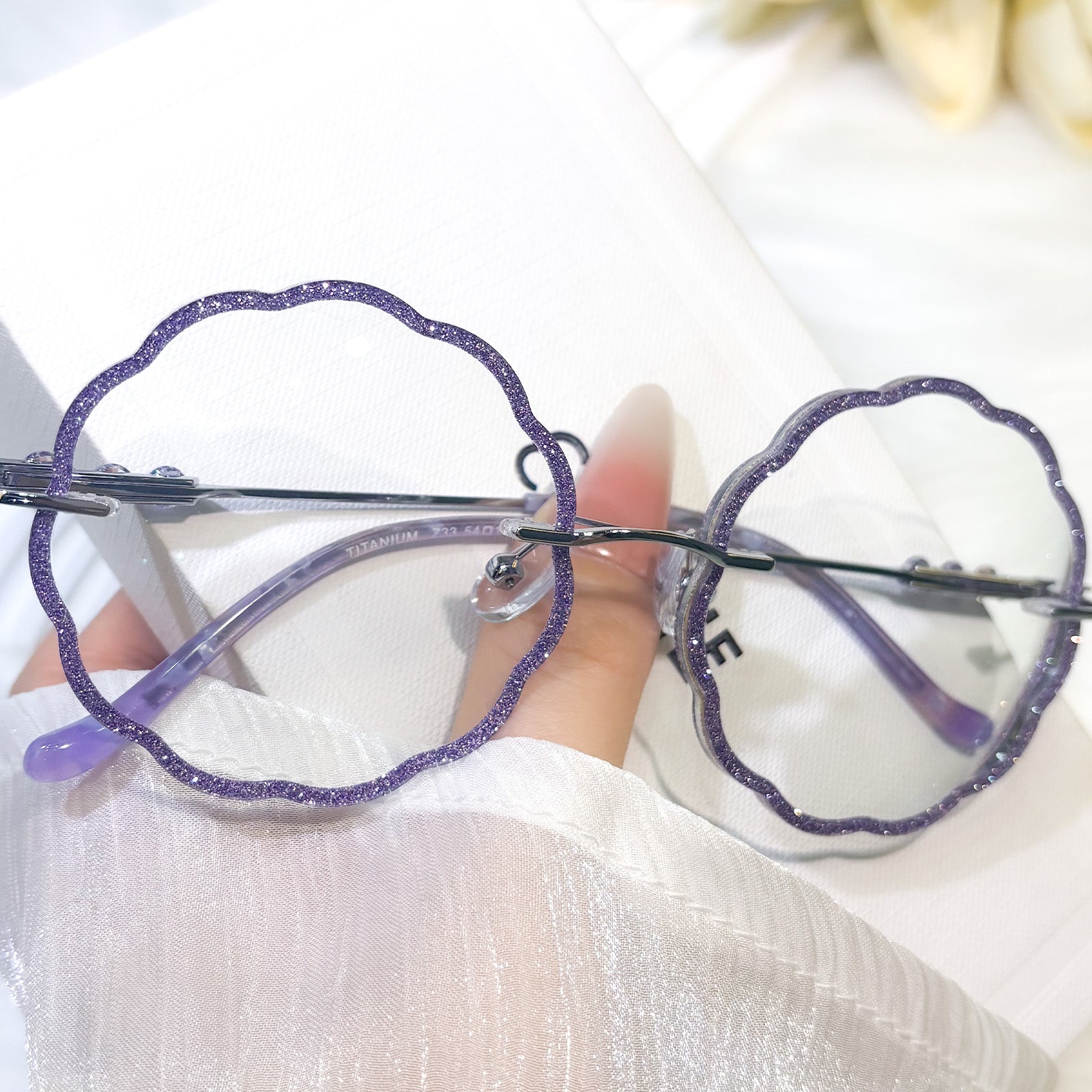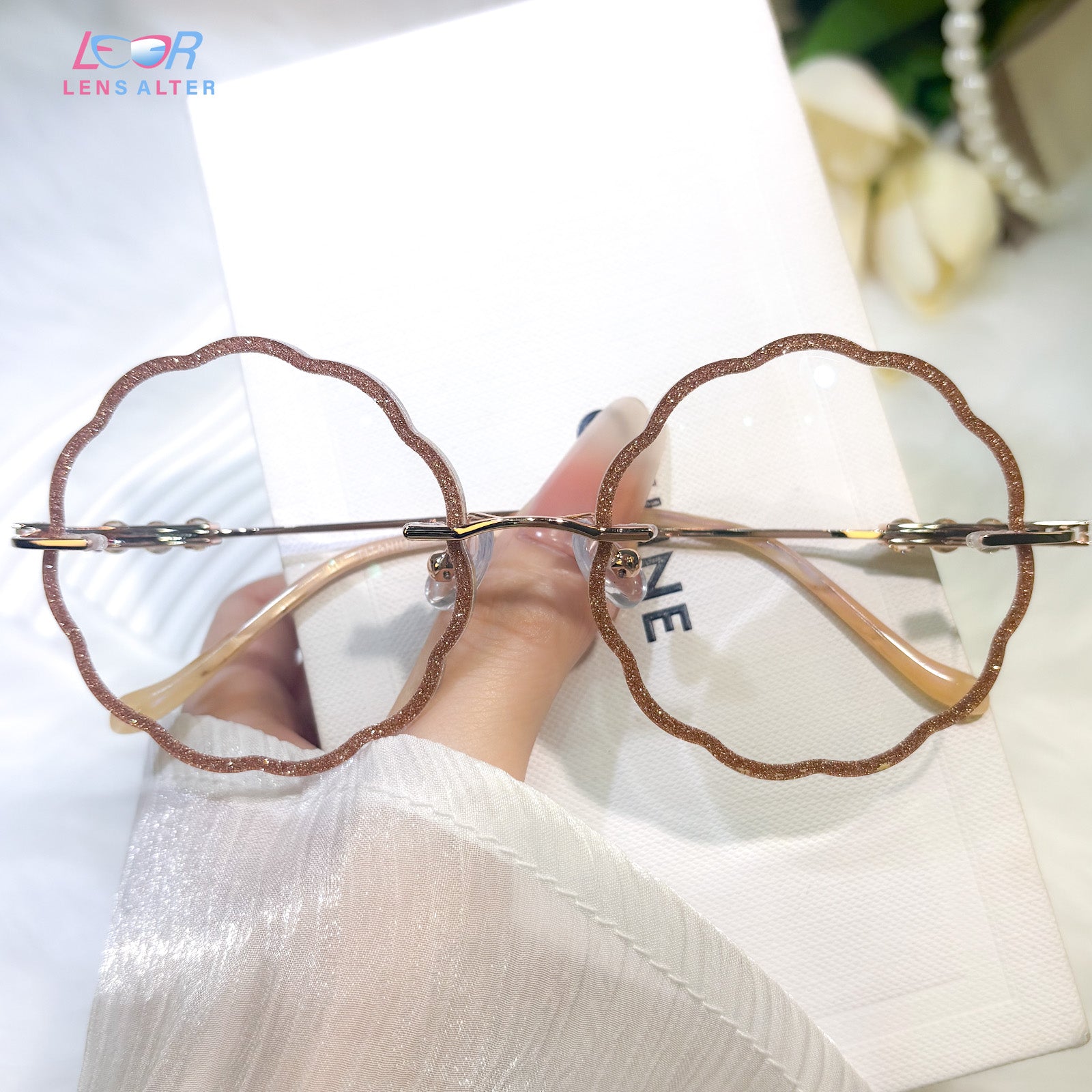 | Exlusive Design | Round flower-shaped rimless glasses for women, with a romantic and gentle design that highlights feminine grace. The lenses are fully wrapped in sparkling glitter, shining delicately in the light for an eye-catching effect. Paired with elegantly styled temples, they blend sweetness and sophistication perfectly.