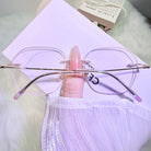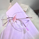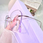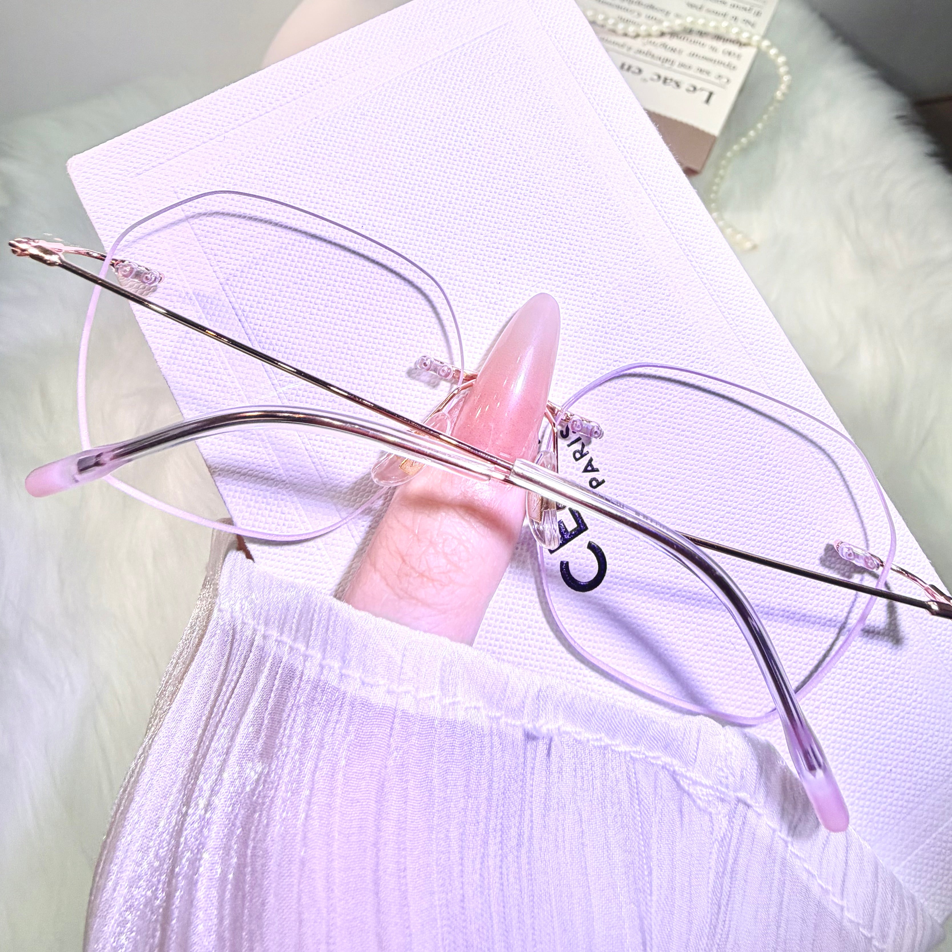 A playful twist on modern minimalism, these geometric rimless glasses stand out with their pink-tinted lens edges. Cute, chic, and full of character — the perfect metal-frame accessory for a soft girl aesthetic.