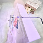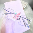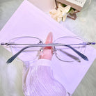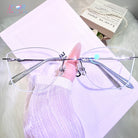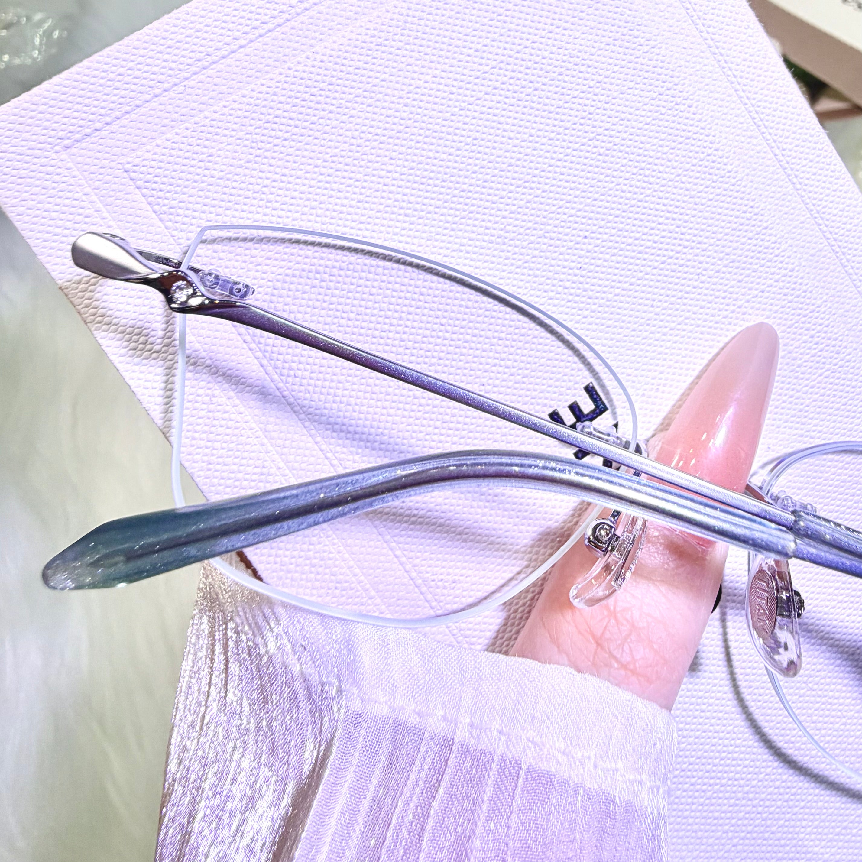 Soft, refreshing, and stylish — these rimless glasses highlight a light green lens edge paired with elegant silver-green temples. A gentle pop of color that stays refined and wearable.