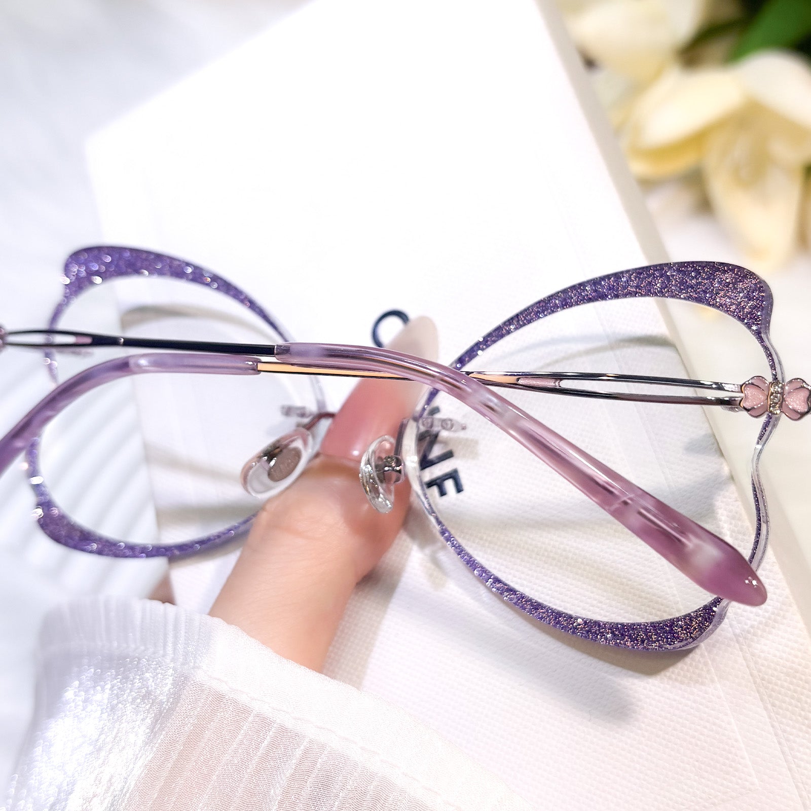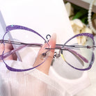 | Exlusive Design | Purple bow-shaped rimless glasses for women, featuring a sweet and unique design. The lenses are formed into lovely bow outlines, full of girly charm. Matching bow decorations on the temples make the whole pair delicate and eye-catching.