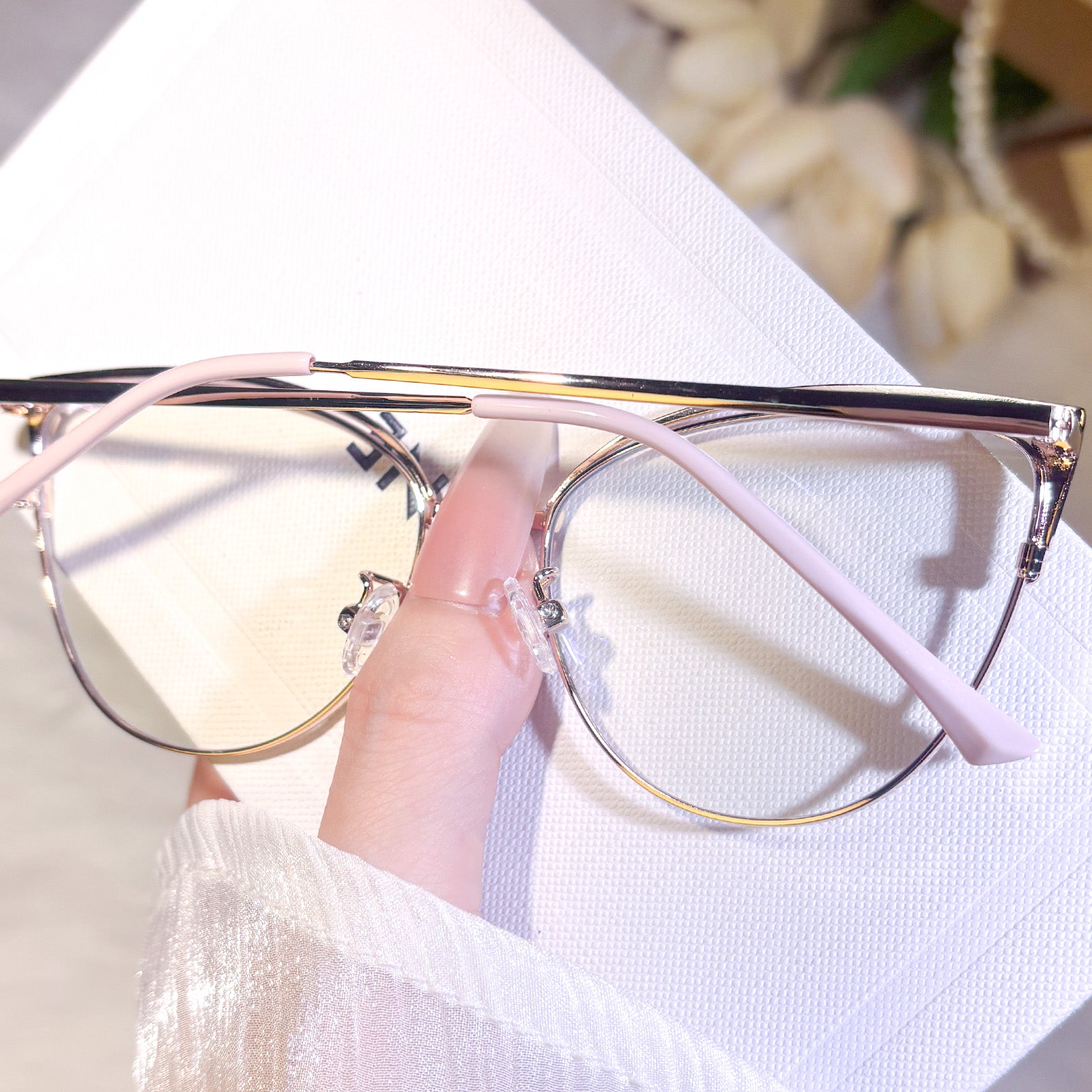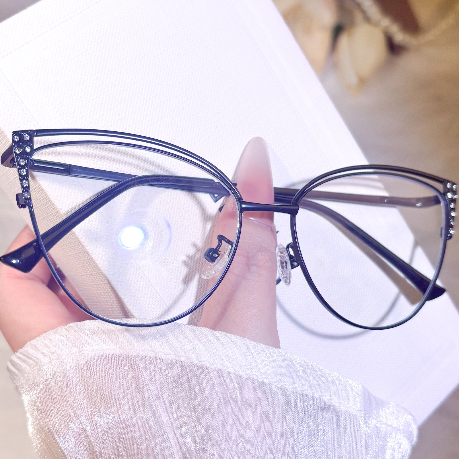 These cute cat-eye metal frames are designed to be small and delicate, perfect for women who love subtle yet stylish accessories.