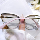 The slim metal frame is lightweight and comfortable, while the iconic cat-eye shape adds a charming retro touch to any look.