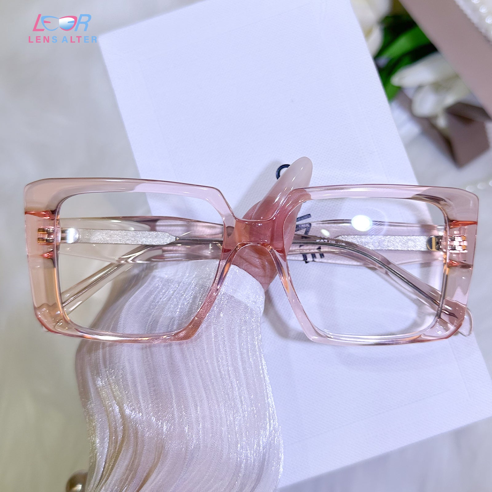 Crafted from lightweight Acetate material, these angular frames blend minimalist architecture with organic warmth. Available in artisanal tortoiseshell for timeless depth and translucent blush pink for ethereal softness, each silhouette offers structured elegance that feels both contemporary and delicately refined.