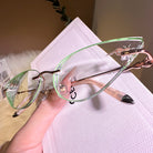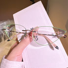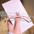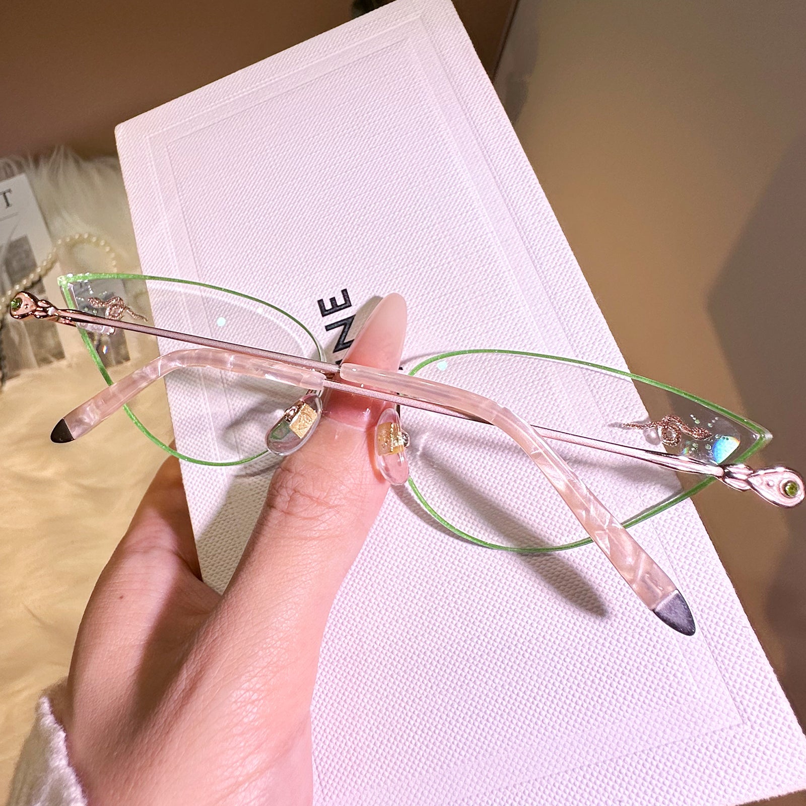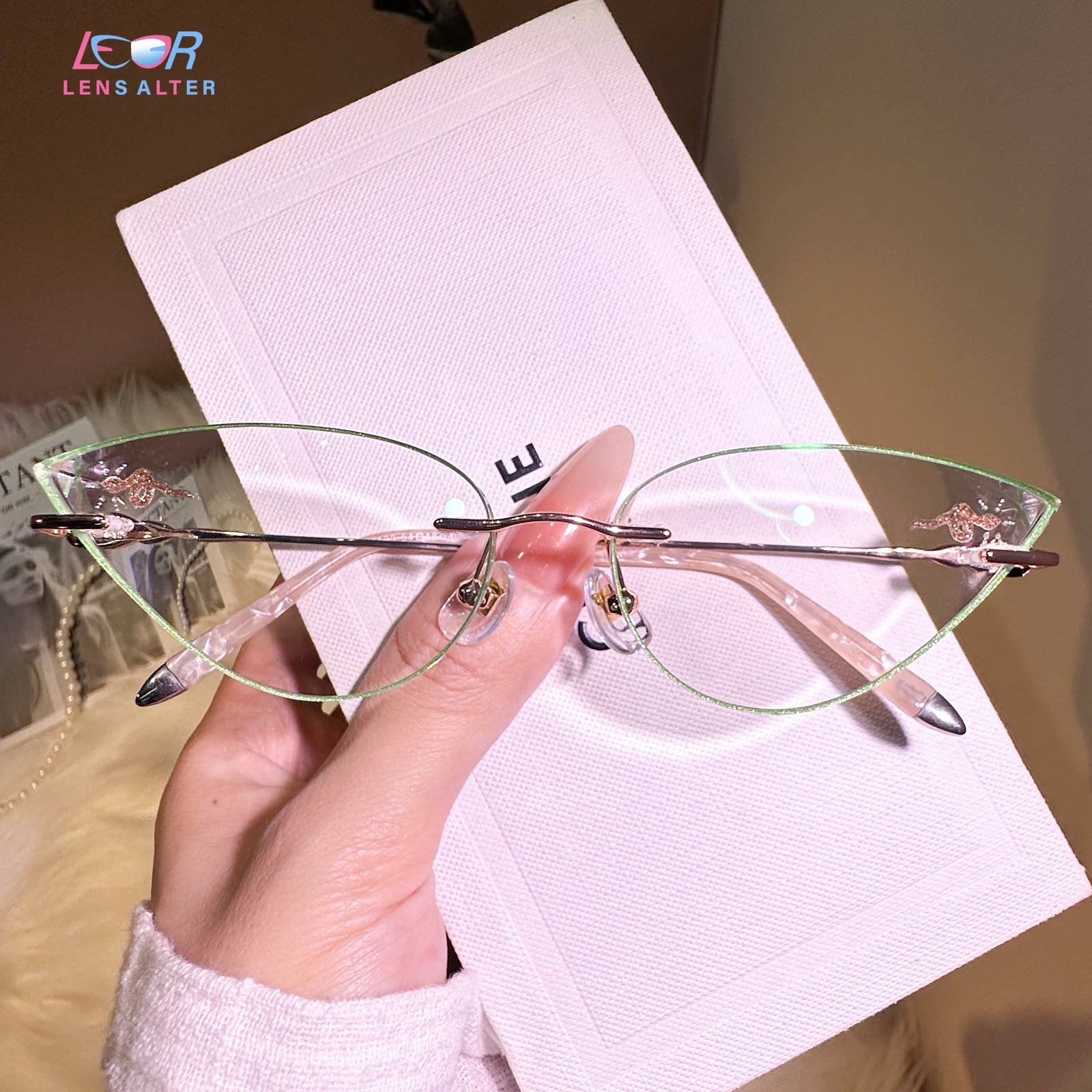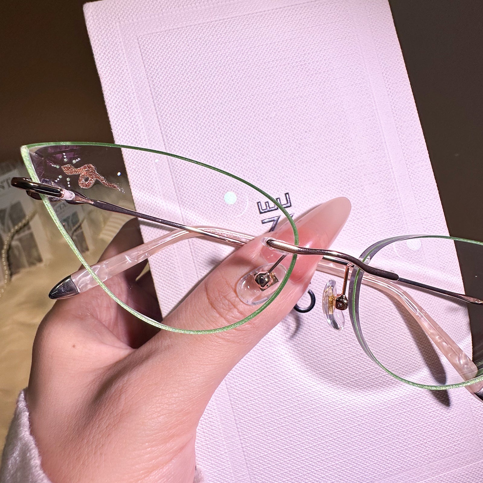 | Exclusive Design | Cat-Eye Rimless Glasses – a perfect blend of boldness and elegance. The lenses feature a delicate and intricate snake pattern, adding a mysterious charm, while the sleek temples are designed with graceful lines, creating a refined and sophisticated look that's ideal for stylish women seeking a unique accessory.