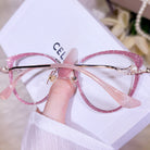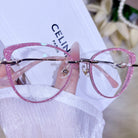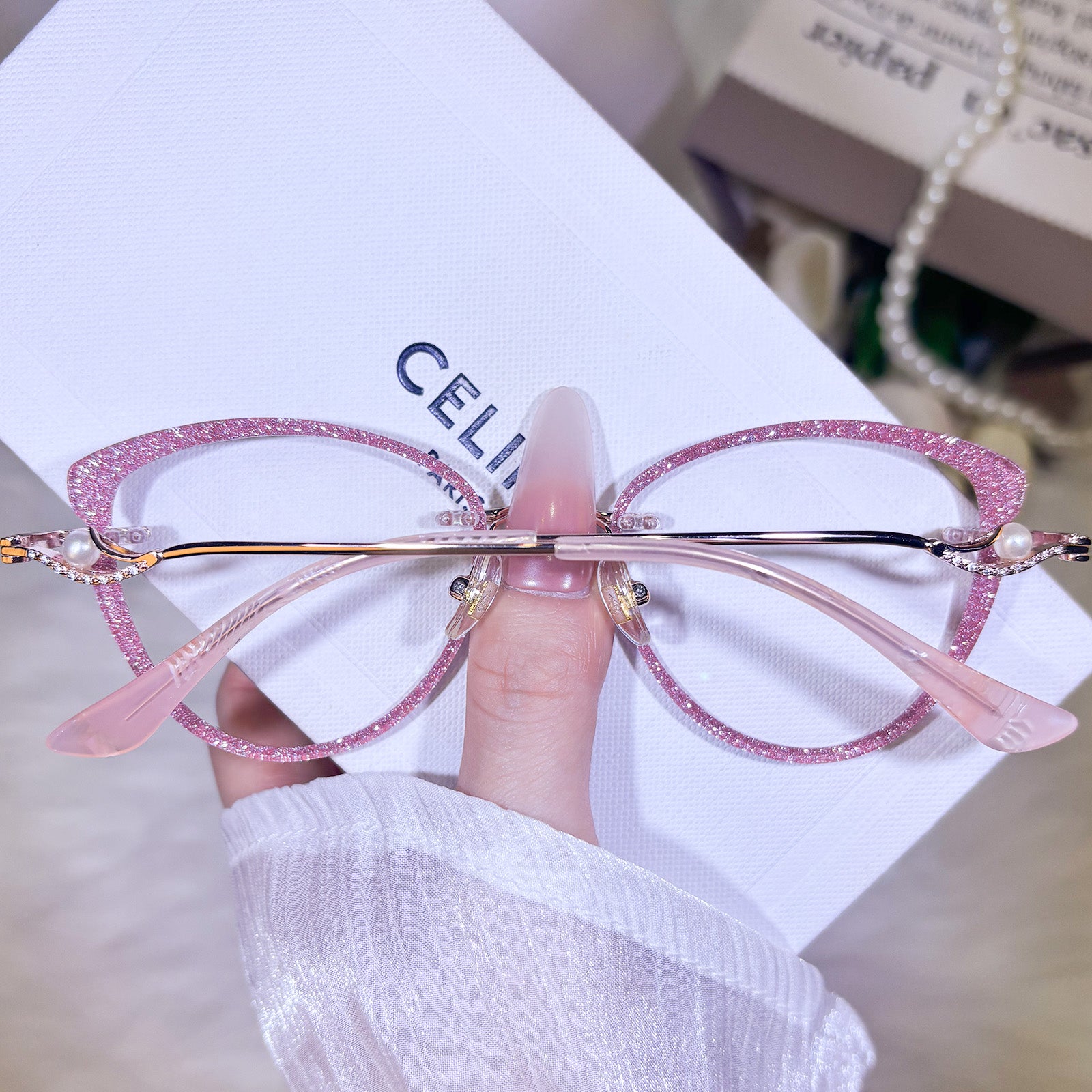 | Exclusive Design | Pink little ear-shaped rimless glasses for women, with a super cute and playful design. The lenses are covered with sparkling glitter, shining gently in the light. Sweet and eye-catching, they show lovely feminine charm in every detail.