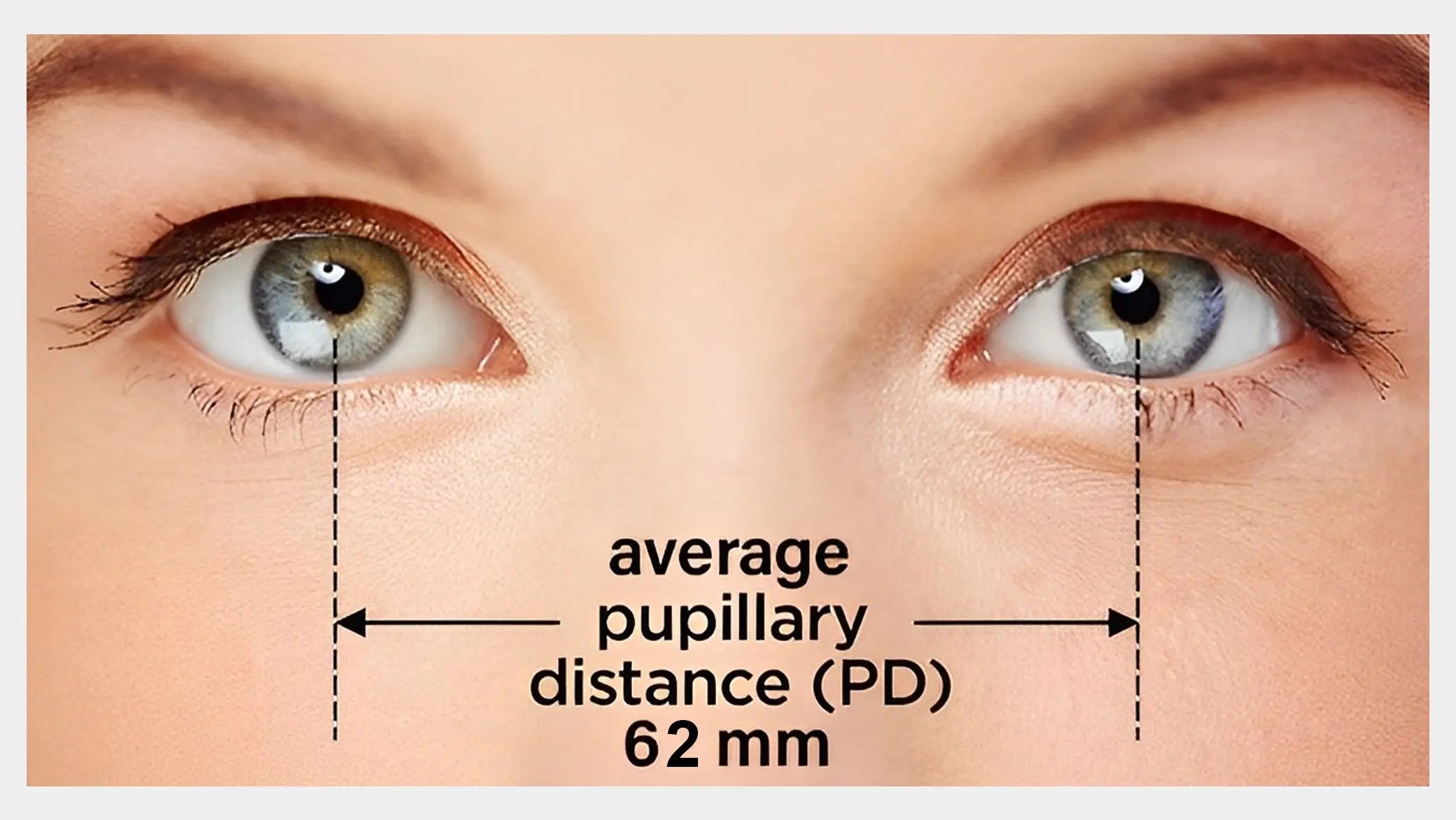 PD (Pupillary Distance) is the distance between your two pupils in millimeters. PD is very important for accurately fitting your lenses to achieve visual clarity. Average PD is about 62mm and most people fall within the 54mm to 74mm range.