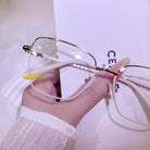 These elegantly understated women's glasses feature a timeless cat-eye silhouette, crafted in lightweight metal and available in a sophisticated palette of black-gold and warm beige. The design masterfully balances a playful uplift with clean, modern lines, making it both feminine and refined. A perfect choice for those who seek eyewear that combines vintage inspiration with versatile, everyday elegance.
