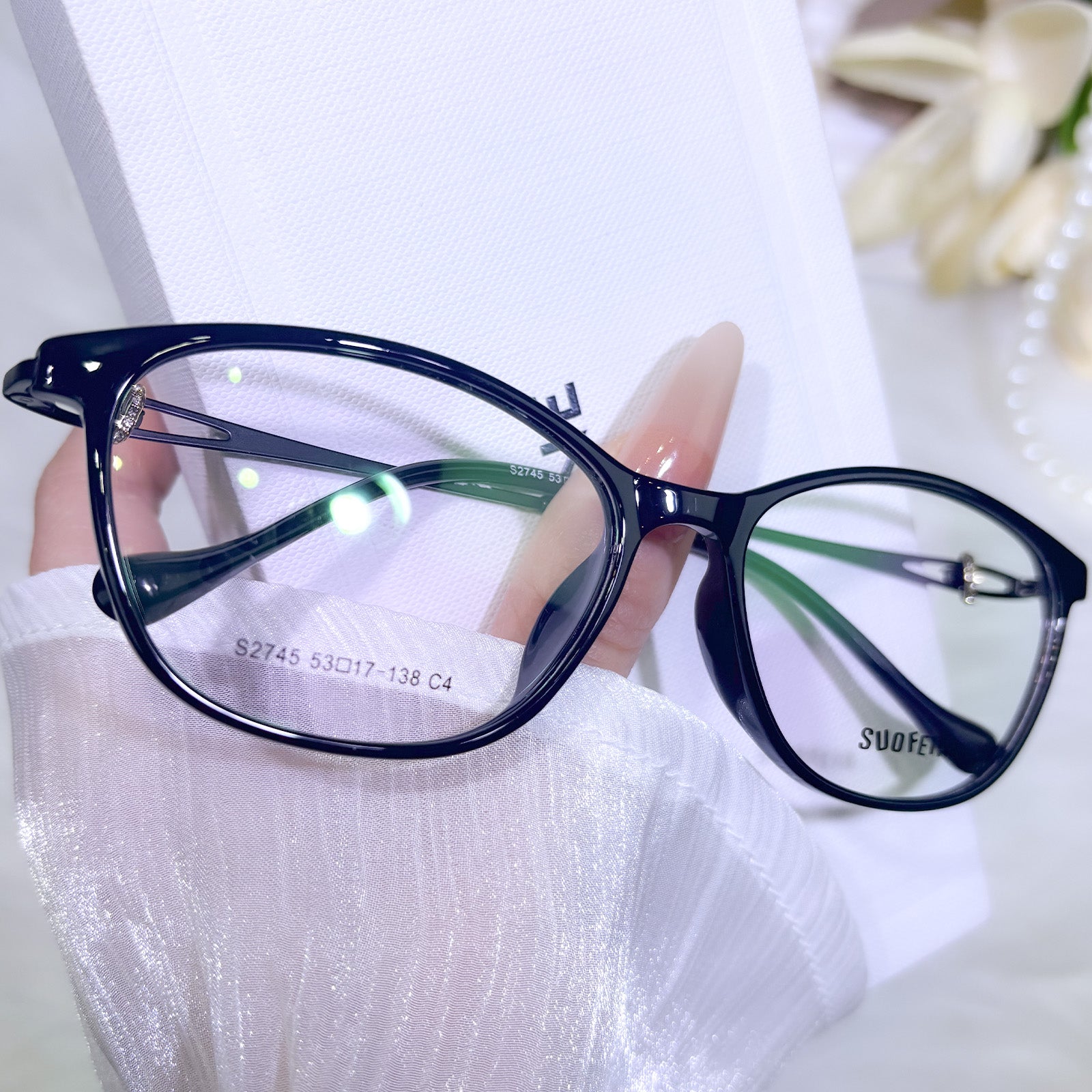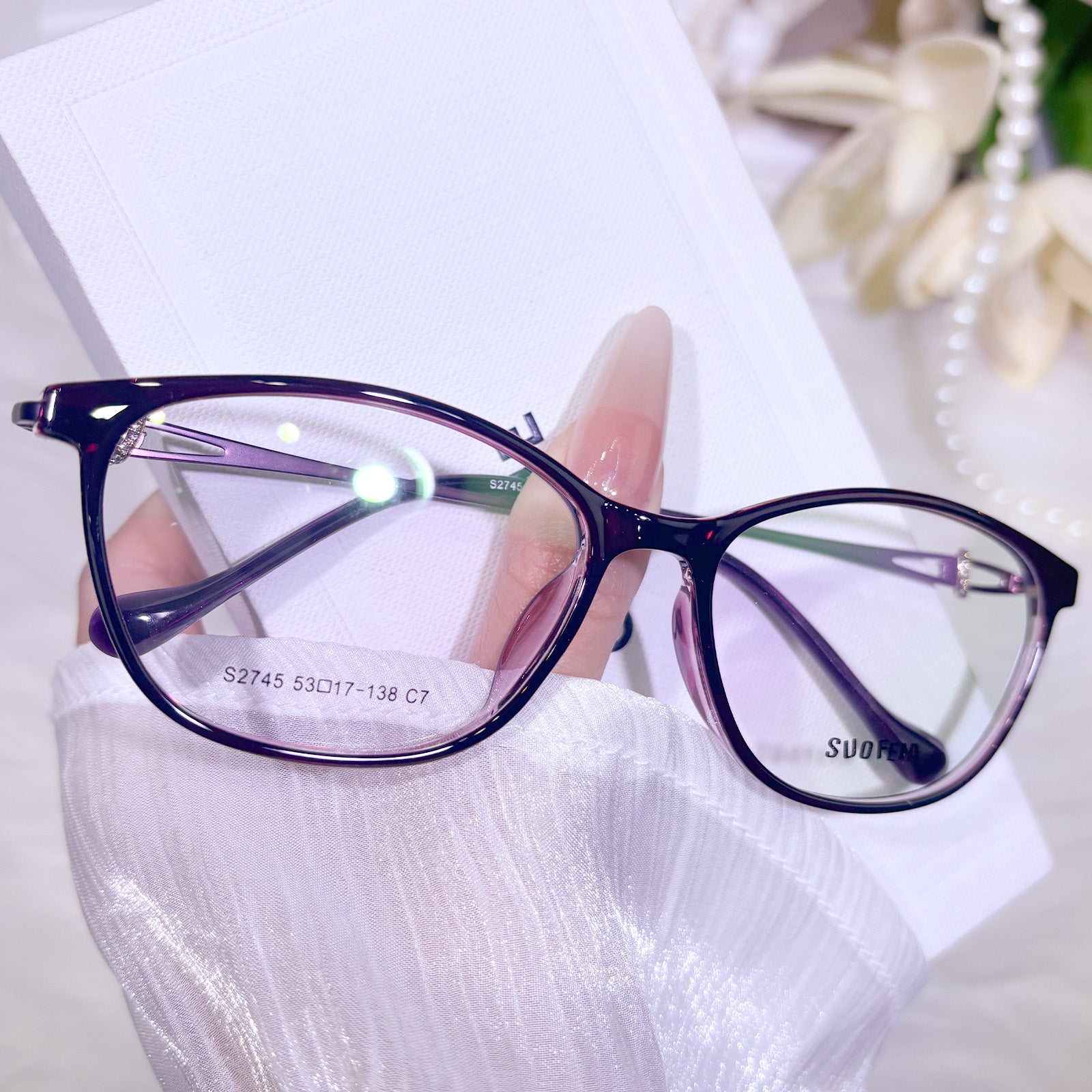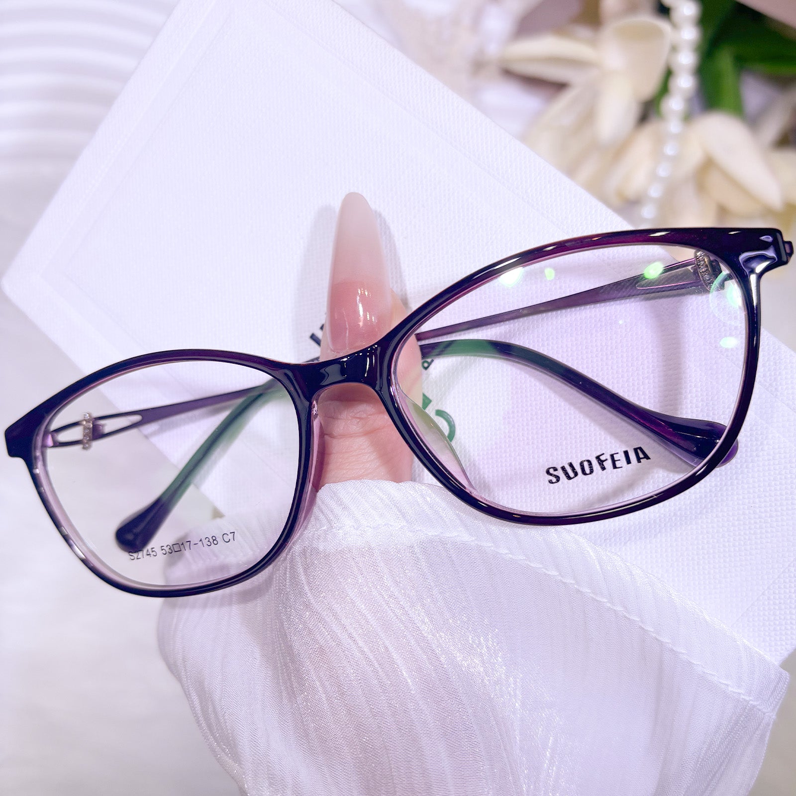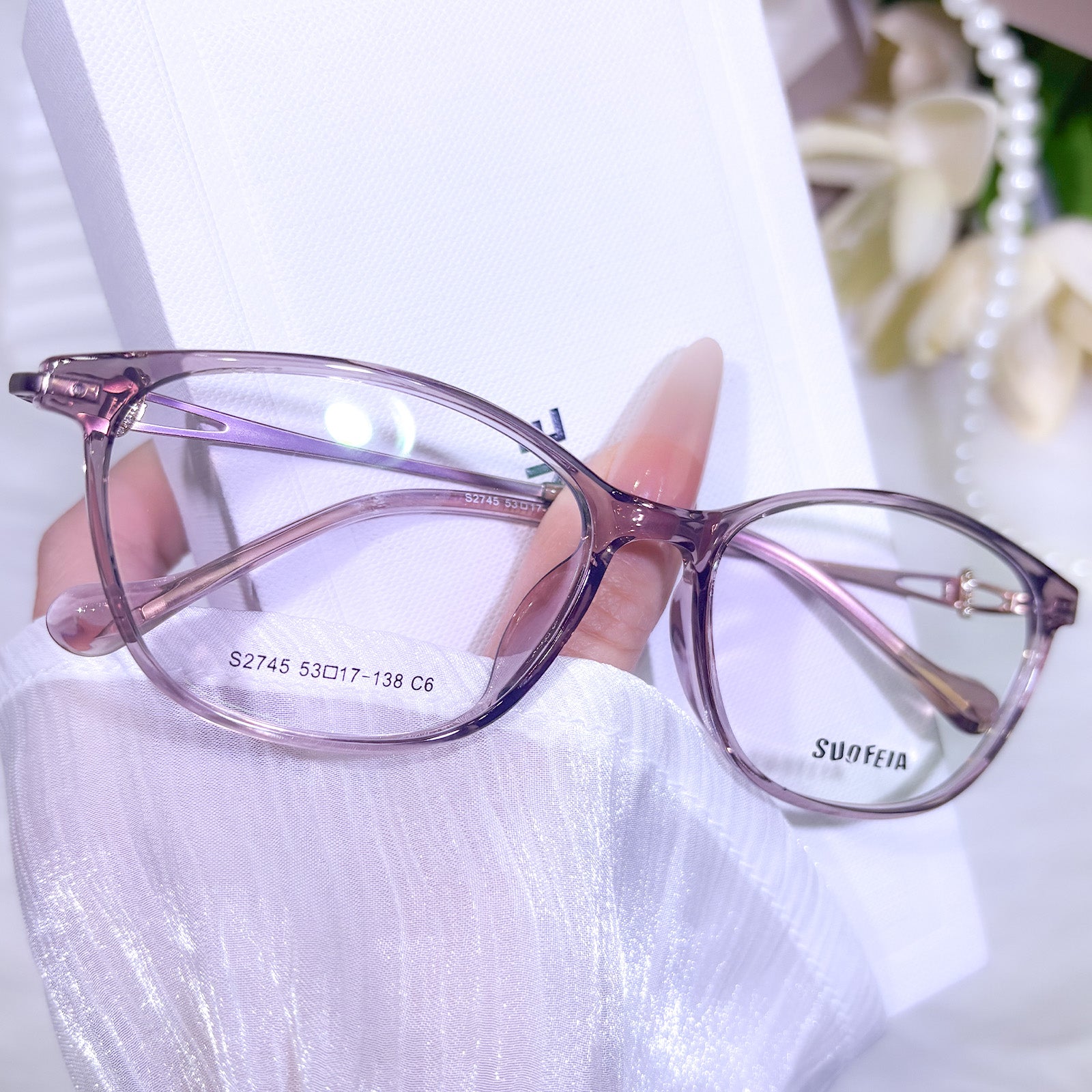 This elegant cat-eye eyewear for women is crafted from lightweight and flexible TR material. The smooth, comfy frame delivers a gentle, refined look with soft lines that flatter every face shape. Classic cat-eye curves enhance your feminine charm, while the durable, lightweight build ensures effortless all-day comfort.
