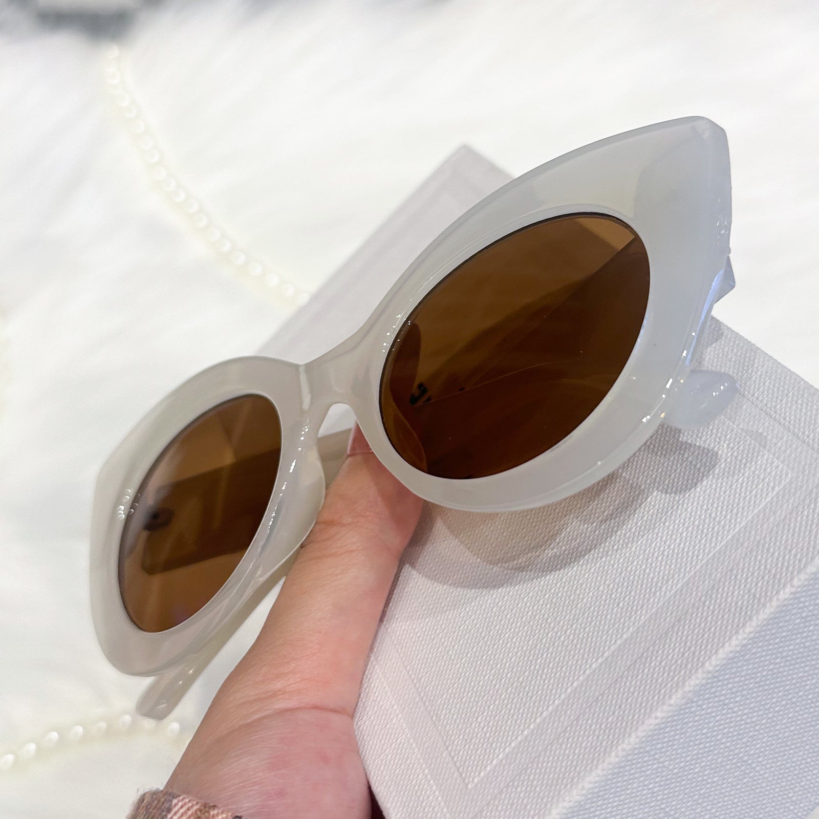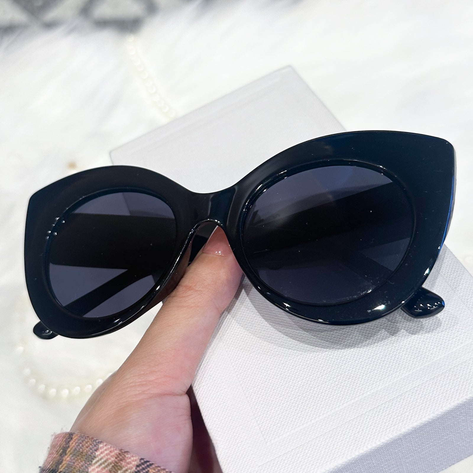 Unleash your inner elegance with our Cat-Eye Sunglasses, crafted to embody both sophistication and individuality. Featuring a sleek cat-eye frame and dazzling jewel embellishments on the temples, these sunglasses are designed for those who dare to stand out with grace.