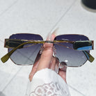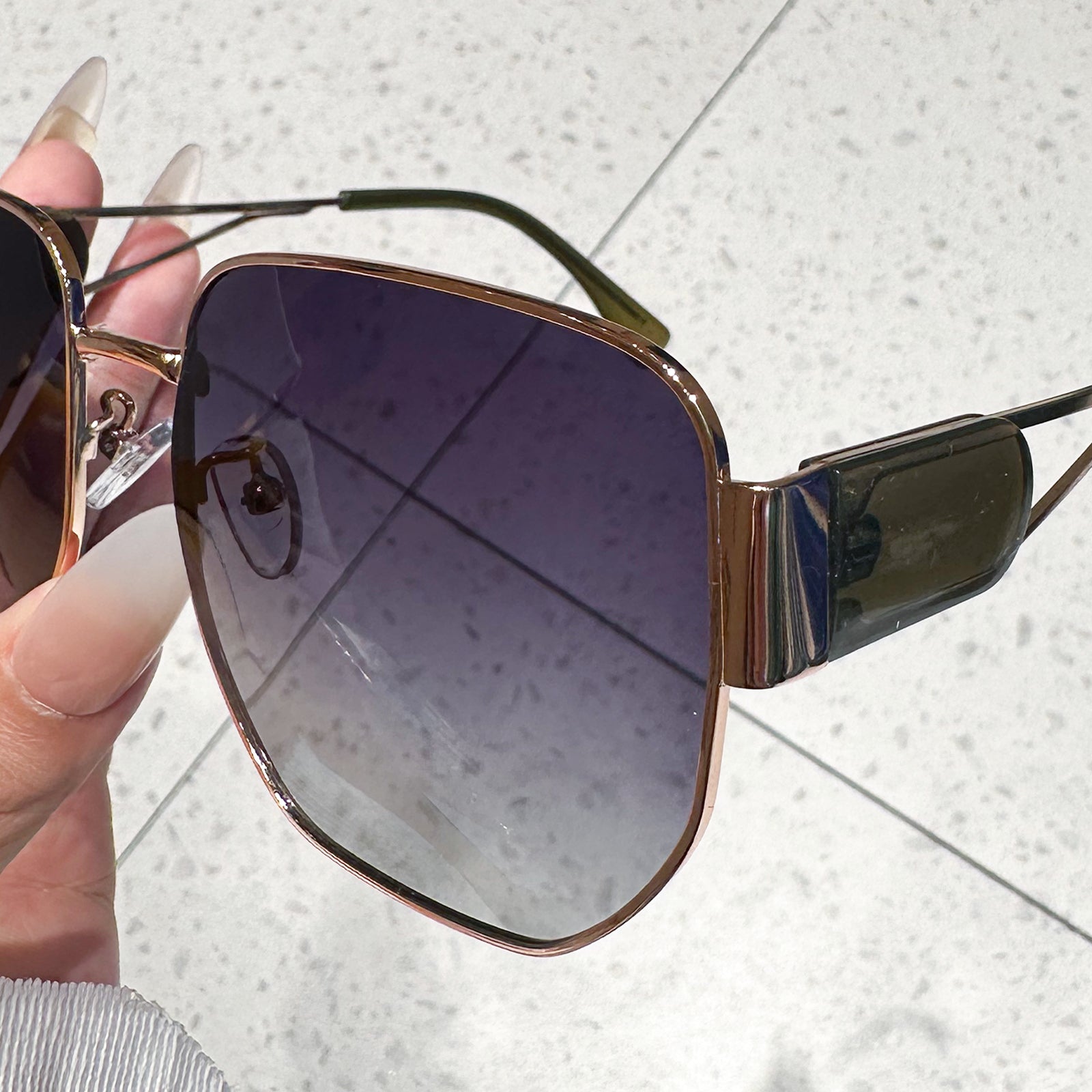 The pair of sunglasses is beautifully designed, equipped with large and square lenses, and the gradient design gradually becomes lighter from top to bottom, which is both fashionable and practical. The slim metal frame adds elegance and modernity, making it a fashion accessory for various occasions. No matter what your face shape is, this modern sunglasses can perfectly set off your style and effectively protect against the radiation of the sun.
